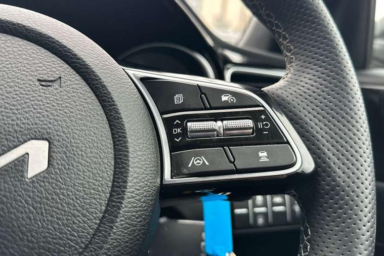 10.25" touchscreen satellite navigation, 4.2" supervision colour cluster display, Apple car play/Android Auto with voice control, Bluetooth with Voice Recognition & Music Streaming, Drive mode select (Normal and Sport), Driver attention warning + (DAW) with leading vehicle departure warning, Emergency call service, Emergency stop signalling system, Forward Collision-Avoidance Assist (FCA) - City/Pedestrian/Cyclist, Kia connect UVO, Lane Following Assist (LFA), Lane keep assist, Manual speed limit assist, Motor driven power steering, Rear parking sensor, Reversing camera system with dynamic guidelines (Integrated into centre fascia screen), Smart cruise control with stop/go functionality, Trip computer, Intelligent Stop and Go, 6 speaker audio system, DAB Radio with MP3, Illuminated USB ports, Steering wheel mounted controls, USB Fast Charger in Front Centre Console, USB type A port, All-round Electric Windows with Front Auto Up & Down Function, Auto dimming rear view mirror, Automatic defog system, Automatic headlights control, Body colour bumpers, Body colour exterior door handles, Body coloured and dark chrome rear skid plate, Body coloured side sill mouldings, Dark chrome window surround, Electric adjustable/heated/folding door mirrors with LED Indicators, Heated rear window with timer, High beam assist, High gloss black and dark chrome radiator grille, High gloss black door mirrors, High Gloss Black rear spoiler - roof, LED daytime running lights, LED front fog lights, LED Headlights, LED High-mounted Brake Light, LED honeycomb rear light, LED rear combination lights, LED rear fog light, Privacy glass (rear side windows and tailgate), Rain sensing front wipers, Rear side wing doors, Rear wash/wipe, Satin chrome dual exhaust trim, Tinted glass, Wide view drivers door mirror, Windscreen Washer Level Warning, 1 x Front 12V socket, 12V power socket in luggage compartment, 3 seat bench in 2nd row, 3 x passenger assist grips, 60/40 split folding rear seat, All-round height adjustable headrests, Aluminium pedals, Black headlining, Centre console storage box/armrest, Cloth/faux leather upholstery, Cupholders in centre console, Cupholders in rear armrest, Dash illumination dimmer switch, Door courtesy lamps, Driver & Front Passenger Sunvisors with Vanity Mirror Illumination & Ticket Holder, Driver + front passenger electric lumbar support, Driver's seat height adjuster, Dual Height Luggage Area Floor, Dual zone automatic air conditioning, Faux leather door centre trim, Front and rear door storage, Front cabin map light with sunglasses case, Front Passenger Seat Height Adjuster, Front seat back pockets, Heated front seats, Heated steering wheel, Interior door lock/unlock function, ISOFIX Child seat top tethers and anchor fixings, Leather D-Cut steering wheel, Leather handbrake, Luggage area light, Luggage area parcel shelf, Luggage hooks, Rear centre armrest, Rear coat hooks, Single front passenger seat, Tilt/telescopic adjustable steering wheel, All round 3-point seatbelts, Anti-lock braking system (ABS), Brake assist system, Dual front side airbags, Dual horn, EBD - Electronic brakeforce distribution, Electronic parking brake, Electronic stability control (ESC) and vehicle stability management (VSM), Front passenger airbag cut-off switch, Height adjustable front seatbelts, Hill start assist control (HAC), Impact sensing auto door unlocking, Rear door child safety locks, Seatbelt reminder warning, Twin curtain airbags, Twin front airbags, Tyre pressure monitoring system, Alarm system, Engine Immobiliser & Deadlocks, Locking wheel nuts, Remote central door locking with fold away key, Speed sensitive auto door locking, Satin Chrome Fascia Trim, 17" GT-Line alloy wheels, Tyre mobility kit,