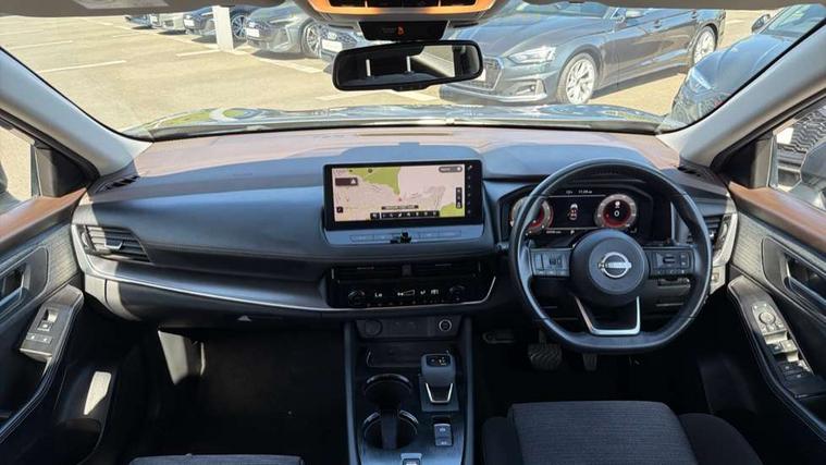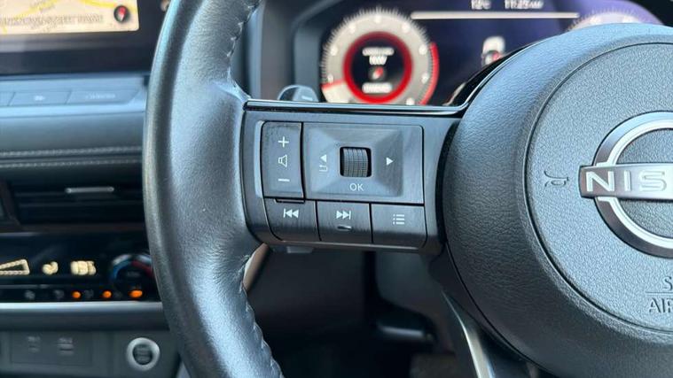 Android auto/Apple CarPlay (Wired), Blind spot warning, Drive modes (sport, normal, eco), Electric speed sensitive power steering, Emergency and breakdown call, Front and rear parking sensors, Full Digital 12.3" TFT Digital Combimeter, Google maps services - search, weather, 3D maps and Google street view, Idle stop/start system, Intelligent around view monitor, Intelligent Cruise control (ICC), Intelligent driver alert system, Intelligent forward collision warning, Intelligent lane departure warning, Intelligent lane intervention, Intelligent lane keep assist, Maximum speed limiter, Moving object detection, Nissan connect 12.3 inch touchscreen infotainment system, Nissan connect nav with TomTom traffic, Push button starter, Rear cross traffic alert, Rear view camera, Remote control services - door locks, lights, horn and car locator, Telematics - notifications and connectivity services, TomTom live traffic services, Traffic sign recognition with legal speed adjustment, Trip computer, Virtual personal assistant and firmware over the air capability, Wireless apple carplay, Wireless charging pad, 6 speakers, AM/FM audio system with DAB, Bluetooth audio streaming, Front USB connections (Type-A and Type-C), Rear USB charging only ports (Type-A and Type-C), 3rd brake light, Auto dimming rear view mirror, Auto rear wiper when reversing, Body colour mirror caps, Body coloured door handles, Bodyside mouldings, Chrome side window finisher, Electric auto folding door mirrors, Electrically adjustable and heated door mirrors, Follow me home headlights, Headlights auto levelling system, High beam assist, Intelligent auto headlights, LED daytime running lights, LED Headlights, LED rear lights, One touch front and rear electric windows with remote opening and closing, Partially body coloured bumpers, Rain sensing wipers, Rear privacy glass, Rear reversing light (bulb lighting), Rear roof spoiler, Rear side wing doors, Rear styling plate, Shark fin antenna, Splash free wipers, Super UV and infrared cut glass, Three blink turn signal, 12v power socket in dashboard and luggage, 3 bench rear seats in 2nd row, 3 rear headrests, 60/40 split folding rear seat bench, Butteryfly console, Chrome interior door handles, Cloth monoform upholstery, Driver and front passenger sunvisors with illuminated vanity mirrors, Driver seat back pocket, Dual zone automatic climate control with pollen filter, Front centre console and armrest, Front cupholders, Front door with bottle holders, Height adjustable driver's seat, Height adjustable front headrests, Height adjustable passenger seat, Leather shift knob, Leather steering wheel, Luggage board system, Luggage space lighting, Multifunction steering wheel, Passenger seat back pocket, Rear armrest with 2 cupholders, Rear door bottle holders, Single front passenger seat, Tilt/telescopic adjustable steering wheel, Two rear isofix child seat anchorage points with top tether, 3x3 point rear seatbelt pretensioners + load limiters, ABS with EBD and brake assist, Active brake limited slip, Auto hold function, Child locks on rear doors, Curtain and front side, far side airbags, Driver and passenger airbags, Driver, passenger and 2nd row rear seat belt reminder, Electronic parking brake, Front seatbelt pretensioners + load limiters, Height adjustable front seatbelts, Hill start assist, Intelligent blind spot intervention, Intelligent front emergency braking with pedestrian, cyclist recognition and junction assist, Intelligent rear automatic braking, Tyre pressure monitoring system, Vehicle dynamic control, Engine immobiliser, Intelligent Key, Remote central door locking with deadlocking, Thatcham Cat.1 alarm, 18" Diamond cut alloy wheels, Tyre puncture repair kit,