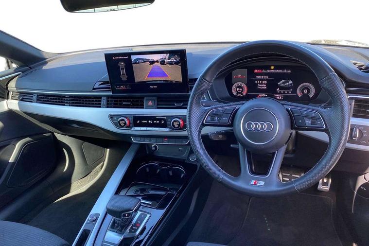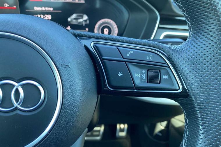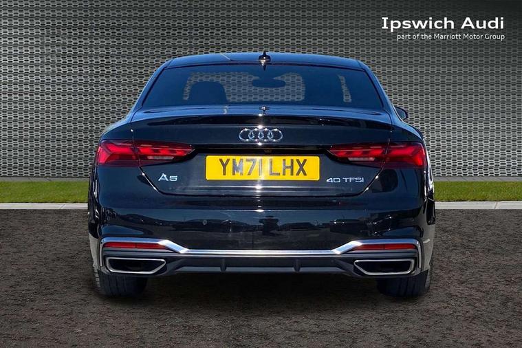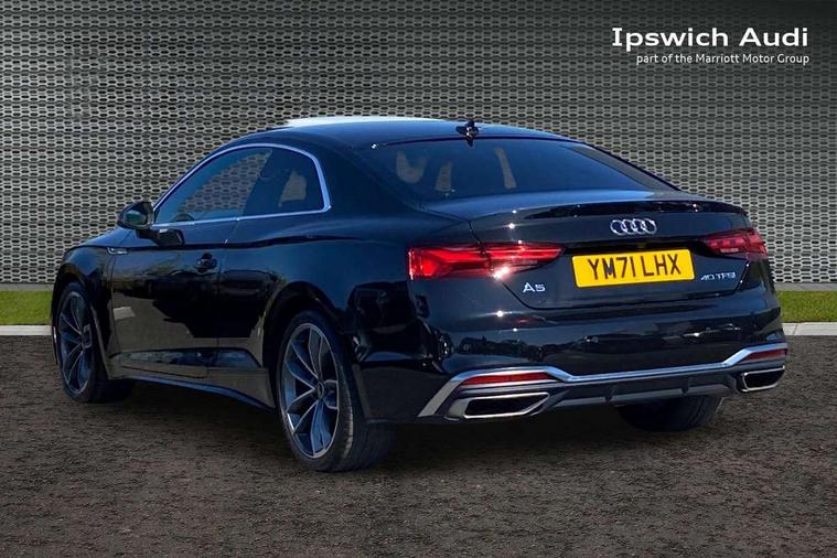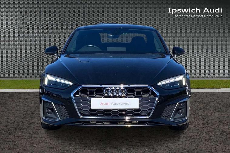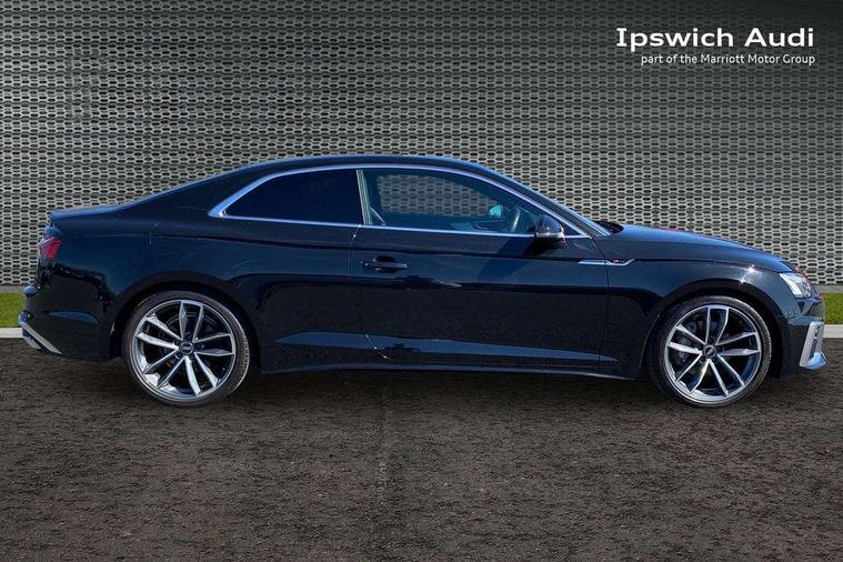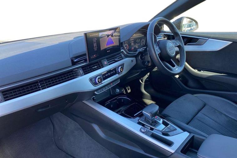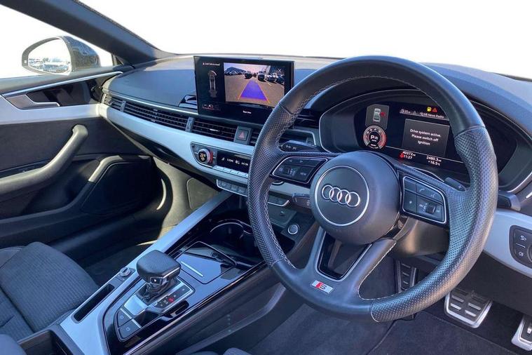 Audi connect safety and service (e-call), Audi connect with Amazon Alexa Integration, Audi drive select (Auto, Comfort, Dynamic, Efficiency and Individual), Audi parking system plus with front and rear sensors, Audi smartphone interface, Audi virtual cockpit - 12.3" full colour digital instrument cluster, vehicle/engine speed, Radio/media information+Driver assistance systems, Automatic start-stop system with coasting functionality and efficiency programme, Bluetooth interface, Electric boot lid release, Electro-mechanical power steering, Email, calendar and text messages displayed via MMI, MMI nav+ with MMI touch - 10.1" high resolution MMI display, touch sensitive, 3D map, route/country info, dynamic route guide, personal route assist, Rear view camera, Service interval indicator, Voice control system, Sports suspension lowered by 23mm, 8 passive loudspeakers, CD player, DAB digital radio reception, Two additional USB ports for rear passenger in rear centre console, Two SDXC card slots, Audi matrix LED headlights with LED rear lights + dynamic front and rear indicators, Auto dimming rear view mirror, Body colour bumpers, Body colour door handles, Body colour front spoiler lip, Body colour side sill trim, Body coloured door mirrors, Electric adjustable heated door mirrors, Electric folding door mirrors, Electric front windows, Front fog lights, Honeycomb structure radiator grille in grained matt black, LED daytime running lights, LED third brake light, Matt aluminium silver tailpipe trim, Privacy glass, Rain and light sensors, Rear side wing doors, S line badges on front wings, S line front and rear bumpers with side skirts, S Line rear diffuser in matt titanium black with trim strip in matt aluminium silver, Side air inlets in grained matt black with matt aluminium silver inlay, Variable front intermittent wipers, Windscreen with acoustic glazing, 4 way electric lumbar support for driver and front passenger, 40/20/40 split folding 2 seater rear seat bench with rear centre armrest, Adjustable steering column, Black cloth headlining, Black perforated leather gearknob, Contrast stitching on seats, steering wheel and gear lever gaiter, Deluxe 3 zone electronic climate control, Front centre armrest, Front head restraints, Front/rear floor mats, Heated front seats, Illuminated door sill trim with S logo, ISOFIX child seat mounting and top tether, Luggage compartment mat, Manual seat adjustment, Rear headrests, Single front passenger seat, Stainless steel pedals, Sunvisors with vanity mirrors, LED interior light pack - A5/RS5, 2 x 3-point rear seatbelts, 6 airbags - Driver, front passenger, curtain and side airbags, Electromechanical parking brake, Electronic Stabilisation Control (ESC) including ABS, ASR and EDL, Front passenger airbag deactivation, Height adjustable front seatbelts, Hill hold assist, Multi collision brake assist, Pop-up bonnet for pedestrian protection, Pre sense city, Seatbelt monitoring, Tyre pressure warning, Variable restraint system, Warning triangle and first aid kit, Anti theft alarm system, Anti theft wheel bolts, Immobiliser, Keyless Go, Remote central locking, Matt brushed aluminium inlays, Tool kit, Tyre repair kit,