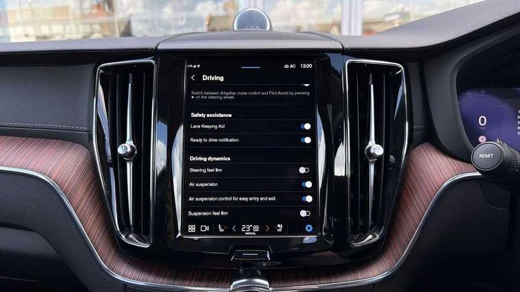 12.3" Progressive Driver Display, 360 degree surround view parking camera with side proximity sensors, 9" centre console touch screen, Adjustable steering wheel force, Apple carplay (wired), Bluetooth handsfree system, Driver alert control with lane keeping aid, Driver assistance (pilot assist and adaptive cruise control), Driver awareness - Blind spot information system with steer assist, cross traffic alert with autobrake and rear collision warning and mitigation, Emergency services call system, Front and rear park assist, Google Automotive Services, Head up display in windscreen includes road sign information, distance alert, set speed and navigation, Oncoming Lane Mitigation, PAS, Service interval indicator, Speed limiter, Speed sensitive steering, Trip computer, Volvo on call with App, Wireless/Inductive Mobile Phone Charging, 8 speed automatic transmission with start/stop + manual change functions, Active four-C chassis + four corner adaptive damper with electronic rear air suspension, DAB Digital radio, Premium sound by Bowers and Wilkins, dirac live, dolby pro logic II surround sound, 14 speakers/1100W output and fresh air subwoofer, Steering wheel remote infotainment controls, Active bending headlights with adaptive shadow technology, Adaptive brake lights with high level LED brake lights, Auto dimming interior + exterior mirrors, Automatic headlight levelling system, Automatic LED Headlights + Active high beam incorporating daytime running lights, Dark tinted windows for rear side windows and cargo area, Electric adjustable/heated/auto power folding door mirrors, Electric front+rear windows, Front aluminium tread plates, Headlight cleaning system, Heated front windscreen, High gloss black door mirrors and window surround, High gloss black front and rear bumper decoratives, High gloss black mesh front grille with high gloss black surround, Home safe and approach lighting, Integrated roof rails in high gloss black, LED front fog lights with static cornering light function, Power glass tilt and slide panoramic sunroof with sun curtain, Puddle lights, Rain sensor with automatic windscreen wiper activation, Rear side wing doors, Rear wiper, Roof antenna, Roof spoiler, Tinted windscreen, Visible VIN plate, 12V socket in front tunnel console and luggage compartment, 3 seat bench in 2nd row, 4 Zone electronic climate control, A-pillar parking ticket holder, Air purifier particulate matter (PM) 2.5 filter, B Pillar ventilation, Bright metal luggage threshold, Centre console cupholders and storage, Charcoal floor mats, Front and rear courtesy lights, Front and rear door pocket illumination, Front cupholder illumination, Front footwell illumination, Front reading lights, Front seat cushion extensions, Glovebox compartment with illumination, Head restraints for all seats, Heated front seats, Heated steering wheel, Height/reach adjustable steering column, Illuminated luggage compartment, Illuminated vanity mirrors + ticket holder, ISOFIX attachment on outer rear seats, Load cover, Load protection net, Multi directional lumbar support, Power driver seat with memory + exterior mirrors memory, Power folding rear headrests, Power passenger seat with memory, Rear armrest with cupholder, Rear footwell and front and rear side step illumination, Rear seat concealed storage, Single front passenger seat, Tailgate illumination and ambient door lighting, Underfloor stowage compartment, Versatile split folding rear seat - 60/40, 5 three point seatbelts, City safety with steering support with Pedestrian + cyclist + front collision warning with full auto brake and rear auto brake, Drivers knee airbag, Dual stage driver/passenger airbags, Electronic parking brake with auto hold, First aid kit, Front seats SIPS airbags, Hill descent control - Off-road drive mode, Hill start assist, IC (Inflatable Curtains) - Full Length, Passenger airbag cut-off device, Power child locks on rear doors, Run off Road Mitigation, Run off Road Protection, Seatbelt reminder and pretensioners, SIPS (Side Impact Protection System), Slippery road and hazard light alert, Stability and Traction Control with Spin control, Engine Drag Control and Corner Traction Control, Tyre pressure monitoring system, Vehicle deceleration control with Anti-lock Brake System, Electronic Brake Distribution and Emergency Brake Assist, Warning triangle, WHIPS whiplash protection system - front, Anti-theft alarm including immobiliser/volume sensor + level sensor, Care key with user defined top speed, Key integrated remote control central locking + fuel flap with deadlocking system and auto open/close power windows, Keyless Drive (includes Keyless Entry and Keyless Start) with Handsfree Tailgate Opening/Closing, Locking wheel nuts, Private locking for tailgate, Tailored instrument panel with contrast stitching,