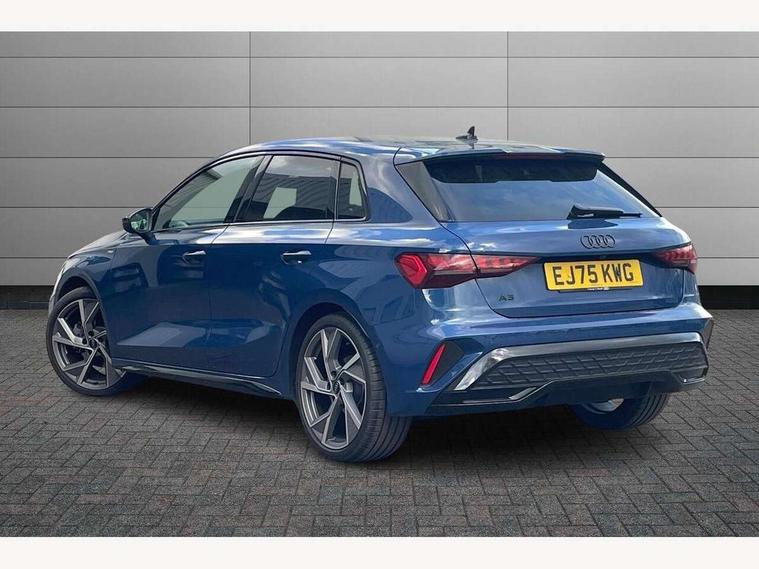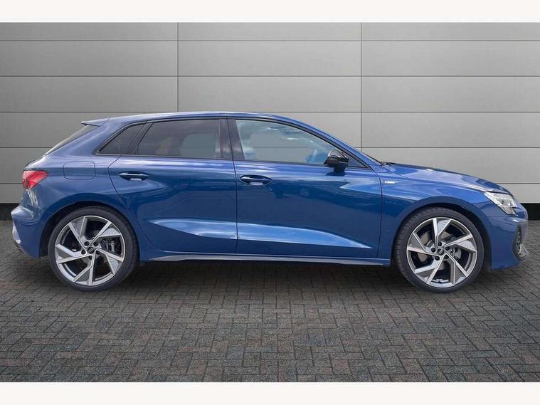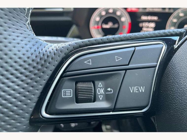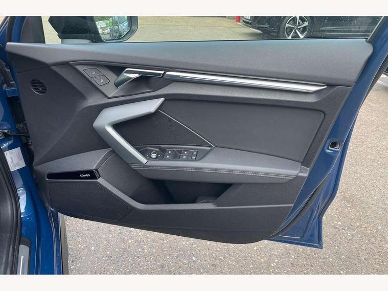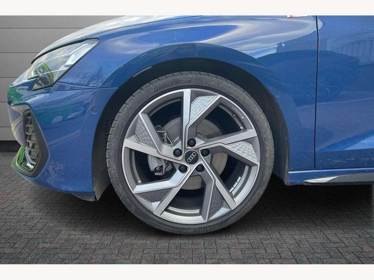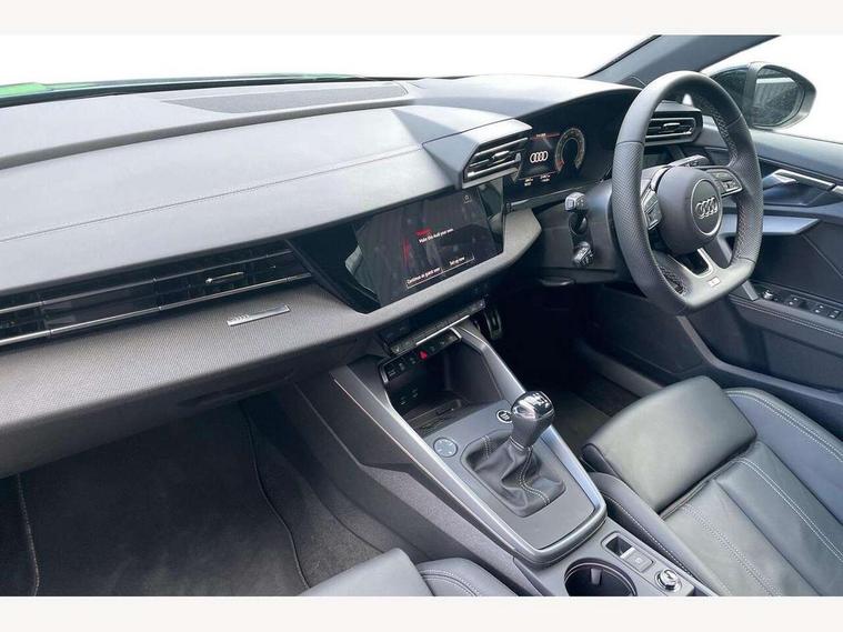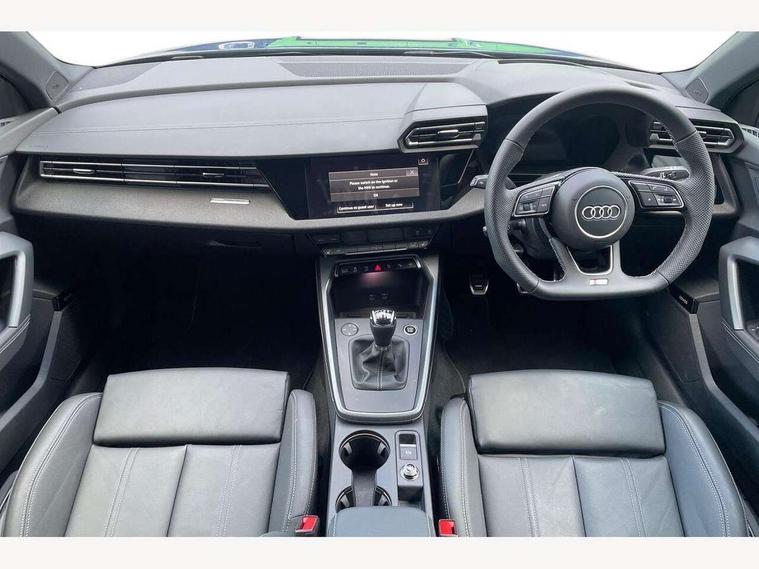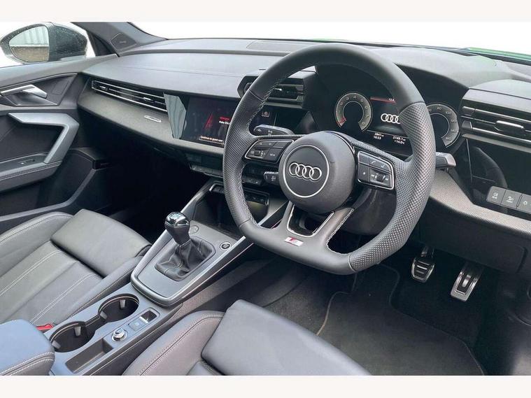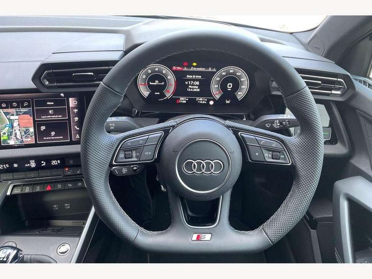 Adaptive cruise control (ACC), Adjustable speed limiter, Audi drive select (Auto, Comfort, Dynamic, Efficiency and Individual), Audi virtual cockpit plus - 12.3" full HD resolution dynamic digital instrument cluster, Automatic start/stop system with recuperation, Bluetooth interface, Camera based traffic sign recognition, Collision avoidance assistant, Driver attention and fatigue detection, e-Call (emergency call), Electromechanical power speed sensitive steering, Intersection assist, Lane departure warning system, MMI Navigation Plus with high resolution 10.1" colour touch screen display, Park Assist with parking system Plus, Reversing camera, Service indicator, Smartphone interface with app store includes wireless Apple carplay, Android auto and Amazon alexa integration, Trip computer, Voice control system with natural language interaction, Sports suspension, Audi Phonebox light with wireless charging, Audi sound system - 10 loudspeakers including centre loudspeaker and subwoofer, DAB Digital radio, USB ports with charging function in the rear, Acoustic glass windscreen, All weather light, Anthracite grey Audi rings (front and rear), Audi beam uses LEDs to project the Audi logo onto the ground as you exit your A3, Auto dimming frameless rear view mirror, Automatic dynamic range control, Black accents front and rear bumpers, Black accents in the area of the Audi single frame grille, Black accents window trims strips, Dipped beam, main beam, position light and turning light, Electrically adjustable/heated/folding/auto dimming door mirrors with integrated LED indications + kerb view function for passenger side, Exterior model badging, Front and rear side air inlets in grained matt black with dark liquid chrome frame, Front electric windows, Front radiator grill in high gloss dark chrome, Heat insulating glass windscreen, Illuminated door sills with aluminium inserts at the front with S logo, Intersection light, Invisible tailpipe, LED 3rd brake light, LED brake lights, LED daytime running x3, LED headlights with LED rear lights and dynamic rear indicators, LED rear number plate lights, LED reverse light, LED tail lights, Light and rain sensors, Manoeuvring light, Motorway light, Privacy glass - dark tinted rear window, rear door and side windows, Rear diffuser and grill in grained matt black with inlay in dark liquid chrome, Rear electric windows, Rear side wing doors, Rear wiper, S roof spoiler, Side sill trim in dark liquid chrome, Static cornering light, 12V socket and storage compartment in front centre console, 3 seat bench in 2nd row, 3 spoke flat bottomed multi-function leather sport steering wheel, 3-zone deluxe automatic air conditioning, 4 way electrically adjustable lumbar support for driver and front passenger, 40/20/40 split folding rear seat bench, Black cloth headlining, Black front and rear floor mats, Front and rear centre armrest in artificial leather with contrasting stitching on armrests and instrument panel, Front and rear headrests, Heated front seats, Height and reach adjustable steering wheel, i-Size child seat mounting on the front passenger side and outer rear seats, i-Size and top tether on the outer rear seats, Manual boot compartment lid, Manually adjustable front seats, Rear centre armrest with cupholder, S badging on the steering wheel, Seat side bolsters, Single front passenger seat, Stainless steel pedals and front footrest in black, Twin leather upholstery with front sports seats S embossed logo, Aluminium interior elements pack - A3, 3x3 point rear seat belts, Driver and front passenger airbag with passenger airbag deactivation, Electronic Stabilisation Control (ESC) including ABS, ASR and EDL, First aid kit with warning triangle and 2 safety vests, Front side airbags with head airbags and interaction airbag, Hill hold assist, Pre-sense front with pedestrian and cyclist detection, Seatbelt monitoring, Tyre pressure loss indicator, Anti theft alarm, Anti-theft wheel bolts, Electronically operated child locks, Immobiliser, Black dashboard,
