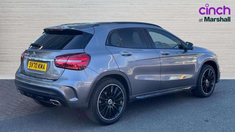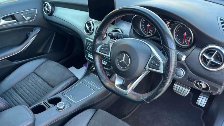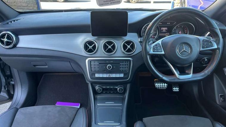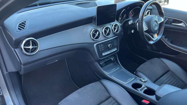180 degree reversing camera with parking guidelines, 4 analogue dials and needles suspended in six o'clock position, Attention assist, DYNAMIC SELECT with a choice of driving modes (ECO, Comfort, Sport and Individual), Easy-pack tailgate - Powered opening/closing automatically, ECO start/stop function, Fluid level warning indicator for fuel, oil, coolant and washer fluid, Instrument cluster, Mercedes me connect including emergency call system, accident recovery, breakdown and maintenance management, Multi function trip computer, Outside temperature gauge, Parking pilot with front and rear parking sensor and steering assist, Service indicator (ASSYST), Smartphone integration with Apple CarPlay and Android auto, Sports speed sensitive direct steer system with servo assistance, Off road comfort suspension, 8" media display touchpad, Audio 20 radio/single CD/MP3, 6 speakers, telephone keypad, twin radio tuner, Bluetooth, 2 USB ports, SD card slot and Garmin Map pilot nav system, Media interface, Adaptive brake lights, Automatic headlamp activation, Body colour door handles with chrome inserts, Body coloured bumper with front and rear apron trim in matt titanium grey, Chrome beltline strips, Electric front windows, Electrically adjustable and heated door mirrors, Front door sills with Mercedes-Benz lettering, Front fog lights, Full LED tail lamps, Heat insulating dark tinted privacy glass from the B-pillar backwards, Heated glass rear windscreen + timer control, LED High performance headlamps with adaptive highbeam assist, LED third brake light, Panoramic sliding sunroof, Rain sensor windscreen wipers with two sensitivity stages, Rear windscreen intermittent wiper with automatic activation when reversing, Roof mounted radio aerial, Two pipe visible exhaust system with chrome tailpipe tips, 1/3 to 2/3 split folding rear seats, 12 colour Ambient lighting, 12V power socket in centre console, 12V socket in luggage compartment, 3 spoke and 12 button flattened bottom multifunction steering wheel trimmed in nappa leather with perforated leather grip area, Air conditioning - Two zone thermotronic luxury automatic climate control with display, Air vents with chrome surround and cruciform nozzles, Ambient lighting in front headrests, AMG brushed stainless steel sports pedals with rubber studs, AMG floor mats with AMG lettering and stiched edging, Artico man-made leather/Microfibre Dinamica upholstery with red contrast stitching, Auto Mercedes-Benz child seat recognition sensor, Black roof lining, Electrically adjustable front memory seats with four way lumbar support, Front centre armrest with stowage, Front footwell lights, Front seat cushion length adjustment, Gearshift paddles, Heated front seats, Illuminated door sills, Illuminated glove compartment stowage, Interior door handle illumination, Luggage compartment cover, Manually height and reach adjustable steering column, Rear footwell lights, Rear Reading Lamps, Sports seats with integrated head restraints, Stowage compartment beneath load compartment floor, Stowage compartment lighting, Sunvisors with illuminated vanity mirrors, Twin front cup holders, Two outer rear seat isofix and top tether child seat fixing points, White courtesy and red warning lights in front doors and boot lid, Comfort seat pack - GLA Class, Keyless go comfort pack - GLA Class, Mirror pack - GLA Class, 3 rear three point seatbelts, Active bonnet pedestrain safety measure which detects an impact and raises bonnet by 65mm, Active brake assist, Adaptive brake assist with hold function and hill start assist, Anti-lock braking system (ABS), Black seat belts, Childproof locks manually operated for rear doors and electrically operated for rear power windows, Crash responsive emergency lighting, Drivers knee airbag, Dual stage driver and front passenger airbags, Electronic parking brake, Electronic stability programme with acceleration skid control, Front and rear seatbelt reminder, Front passenger seat occupancy sensor, Front side airbags, Tyre pressure monitoring system, Warning triangle and first aid kit, Window airbags, Anti-theft alarm system/interior protection with tow-away protection and interior monitoring systems, Chrome surround in electric key, Remote central locking, Light aluminium with longitudinal grain interior trim, Run flat tyres,