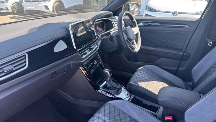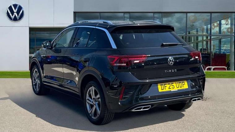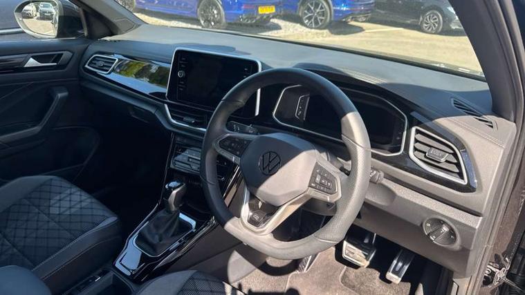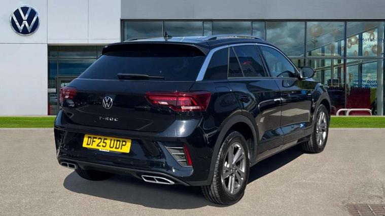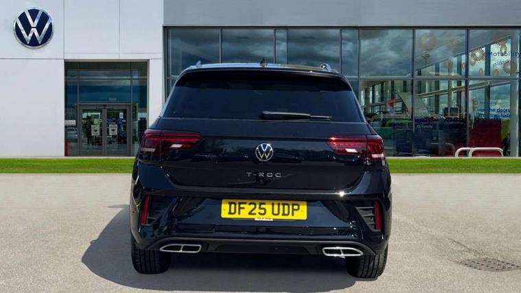 10.25" Digital cockpit pro, Advanced driver attention and drowsiness monitor, Emergency call service, Lane keeping system Lane Assist, Mobile phone interface, Modified key software - reduce switch off time for key status change to Long no motion, Online services, Park assist including front and rear parking sensors, Service interval indicator, Tailgate/trunk lid release from outside, Think blue trainer driver tips and journey analysis, Warning sound and light for front seatbelts unfastened, Wireless app connect, Battery regeneration during braking, Start/stop function with battery regeneration, DAB Digital radio, Diversity antenna for FM reception, Front and rear 6 speakers, Music playback - MP3, WMA and AAC files, Premium USB cable in choice of either Apple or Android smartphone compatibility, SD card slot, Simultaneous pairing of 2 compatible mobile devices, Title and cover art display, We Connect and We Connect Plus functionality, Auto dimming interior rear view mirror, Automatic hazard lights activation under emergency braking, Automatic headlight control with LED separate daytime running lights with coming/leaving home function, Body coloured exterior mirror housings and door handles, Electrically adjustable and heated door mirrors, Extended roof spoiler, Exterior mirrors aspherical on driver side, convex on front passenger side, External USB type C socket and charging sockets, Front windscreen wiper with intermittent wipe and 4 position delay, Heated rear window, LED 3rd brake light, LED rear combination lamps, LED rear number plate lights, Power windows with comfort operation and circuit breaker, Privacy glass for rear side windows and rear window, R-Line design body coloured bumpers, Rain sensor, Rear exhaust tailpipe, Rear fog light on one side and reversing lights on both sides, Rear side wing doors, Rear wash/wipe with intermittent wipe setting, Remote electrically foldable door mirrors, puddle lights and reverse activated passenger's door mirror, 12V power socket in centre console, 3 rear head restraints, 3 seat bench in 2nd row, 4 load lashing points in luggage compartment, Air care climatronic air conditoning system with active combination filter and 2-zone temperature control, Black roof lining, Chrome plated decorative trims, Chrome plated radiator grille inserts, air vent surrounds and light switch surrounds, Door and side trim panel with leatherette insert, Front + rear carpet mats, Front centre armrest, Front cupholders x 2, Front footwell illumination, Front reading light, Front scuff plates with R Line logo, Front seat back storage pockets, Glove compartment door with light, Instrument lighting, white adjustable panel illumination, Interior ambient lighting and surround lighting, Interior light delay, Isofix child seat preparation, Leather gearshift handle, Load-through provision with cup holder when folded down ('Unsplit rear seat bench, split folding backrest, with centre armrest), Luggage compartment lighting, Single front passenger seat, Stainless steel pedals, Storage compartment in left and right luggage area, Storage compartment in rear doors, Storage compartments in driver and front passenger doors, Sunvisors with illuminated vanity mirrors, Variable boot floor, height adjustable and removable, Driver assistance pack without proactive passenger protection - T-Roc, 3 point height adj front seatbelts + pretensioners, 3 point seatbelts in outer rear with ECE label, ABS, Child locks on rear doors, City emergency braking and pedestrian monitoring, Driver and front passenger airbag with front passenger airbag deactivation, Driver and front passenger safety-optimised head restraints, Drivers seatbelt reminder, Electronic parking brake, Electronic Stability Control (ESC) inc EDL (Electronic Differential Lock) and ASR (Traction Control), Front and rear passengers curtain airbag system including front side airbags, Hill start assist, Predictive pedestrian protection, Rear disc brakes, Two tone horn, Tyre pressure loss indicator, Volkswagen roadside assistance, Piano black decorative inserts in dashboard and front door trim panels, Trims for alloy wheels,
