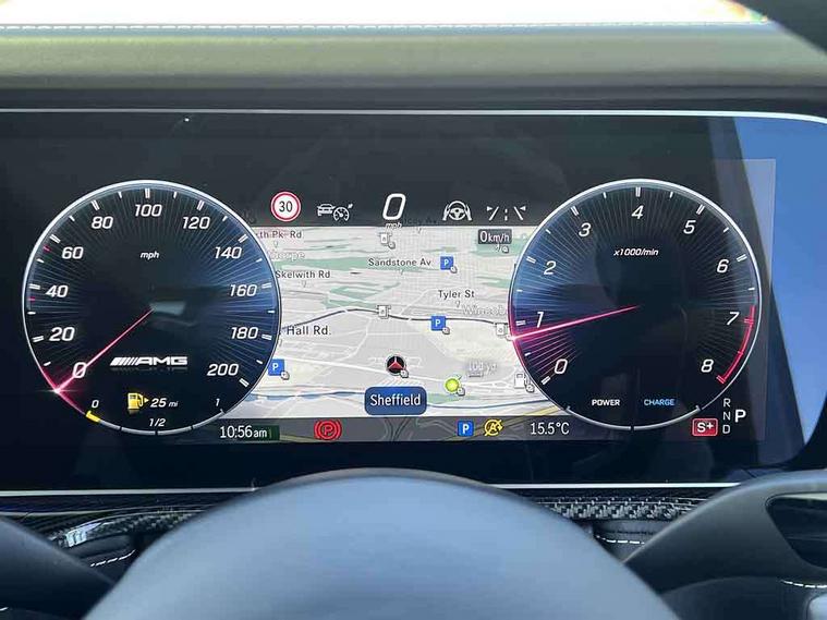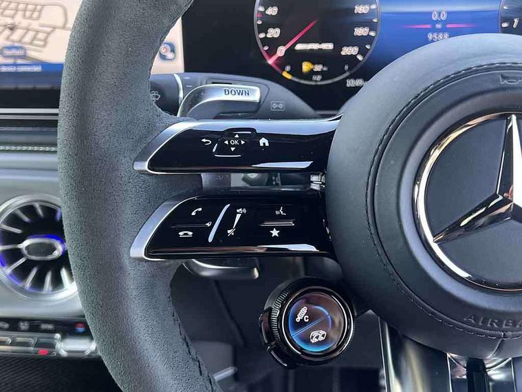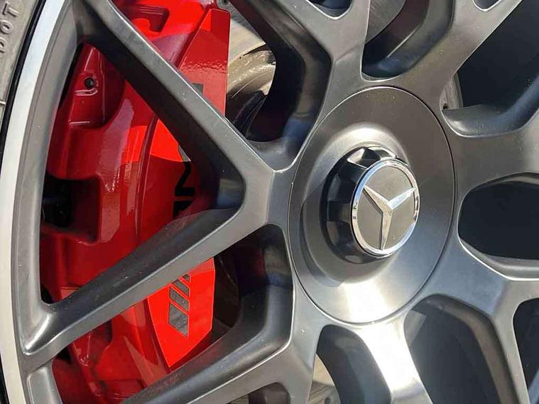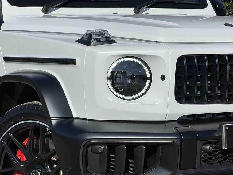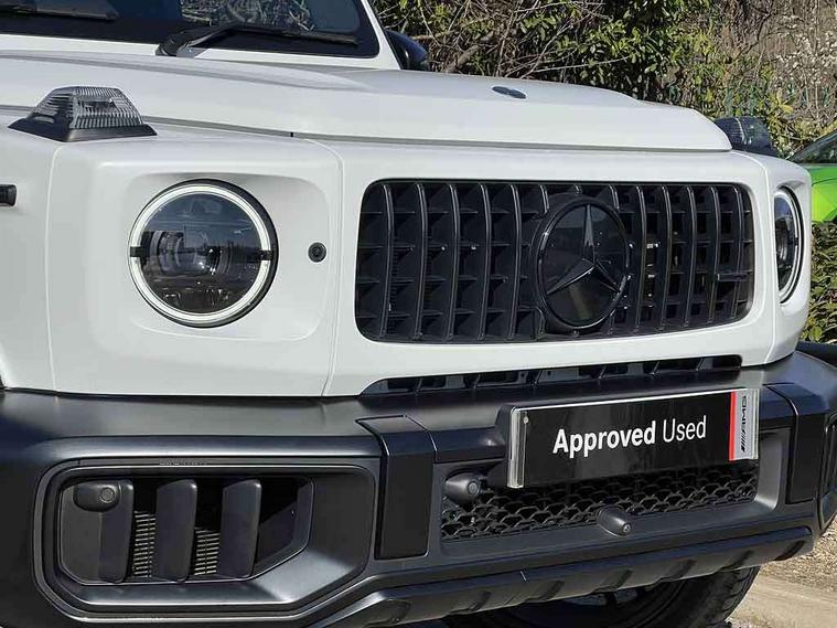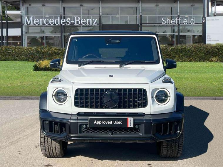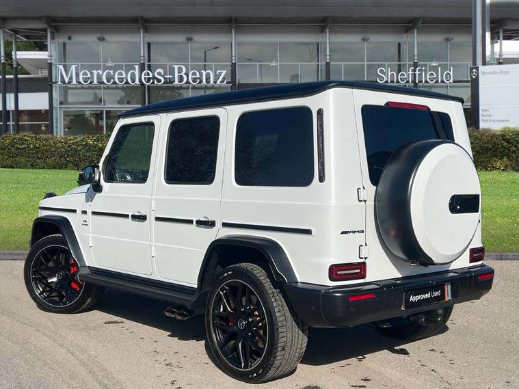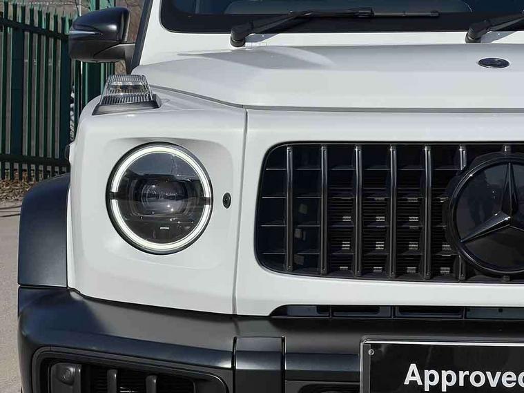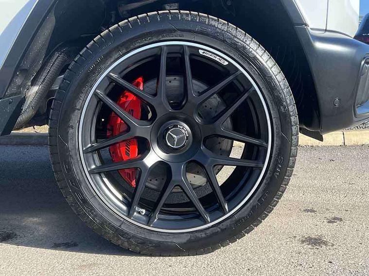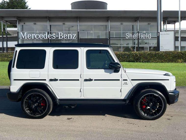 360 degree parking camera, Active parking assist with PARKTRONIC, AMG instrument cluster with dual bonded 12.3" widescreen displays, AMG specific IWC design analogue clock, Attention assist, Bluetooth interface for hands free telephone, Communications module (LTE), MBUX augmented reality for navigation, Mercedes connect me, Mercedes-Benz emergency call, PAS, Passive person presence reminder, Remote Services Premium, Service indicator (ASSYST), Smartphone integration with Apple CarPlay and Android auto, Trip computer, Widescreen cockpit with dual bonded 12.3" widescreen displays, Wireless charging, 4MATIC permanent four wheel drive, AMG Active Ride Control suspension, AMG SPEEDSHIFT 9G Tronic sports transmission with cruise control and variable speed limiter, Differential lock, Low range gear reduction (Electronically selectable while driving), Petrol Particulate Filter, Aux-in socket, Burmester 3D surround sound system, DAB digital radio module, MBUX multimedia system, Sound personalisation, 3rd brake light, Adaptive highbeam assist plus - automatic low high beam switching, AMG bodystyling with exclusive Mercedes AMG G 63 front aprons with cooling air intakes and AMG flared wheel arches in vehicle colour, AMG Crest on engine hood, AMG Crest projection in outside mirror, AMG fuel cap, Automatic headlamp activation, Automatically dimming rear view mirror, Bumper insert in night black magno, Dark tinted heat insulated glass, Door mirrors - Electrically adjustable/heated/integrated indicators, front area lighting and automatically dimming driver's mirror, Electric sunroof sliding, with one-touch opening, Front and rear electric windows, Heated windscreen, LED daytime running lights, Multibeam LED headlights with anti-dazzle feature, Privacy glass - Dark glass from B-pillar backwards, Rain sensor windscreen wipers, Rear side wing doors, Rear wiper, Simulated underguard in night black magno, Towbar, Trailer coupling with ESP trailer stabilisation, Transparent Bonnet, V8 BITURBO lettering, 1/3 to 2/3 split folding rear seats, 12V socket in centre console, rear and load compartment, 2 cup holders in front and rear, 3 seat bench in 2nd row, Ambient lighting with 64 colours and projection of brand logo, AMG floor mats with AMG lettering, AMG Performance steering wheel in carbon fibre/MICROCUT microfibre, AMG steering wheel buttons, Centre armrest between front seats with integrated stowage compartment, Cushion length adjustment with gapless cushion, Designo dinamica microfibre roof lining in Black, Electrically adjustable steering column, with automatic adjustment for entry/exit, Four illuminated stainless steel door sill panels, Front head restraints, Front seats with heated and electrically adjustable, memory function for seats, head restraints, exterior mirrors and steering wheel, Heated front seats, Heated rear seats, Heated steering wheel, Ionisation of interior air including fine particle activated charcoal filter system, Luggage compartment cover, Partition net, Rear head restraints, Single front passenger seat, THERMOTRONIC automatic climate control system with 3 climate zones and 3 climate styles - Medium, Diffuse and Focused, AMG night pack II - G Class, Assistance package with PRE-SAFE Impulse side - G Class, Stowage space pack - G class, 3x3 point rear seatbelts, ABS with Brake Assist, Airbags - windowbags, AMG high performance braking system with internally ventilated and perforated brake discs, Driver/Front Passenger airbags, Electronic four wheel traction control, ESP with ASR, Front side airbags, Hill start assist, i-Size child seat attachment system for the outer rear seats, PRE-SAFE system for preventive occupant protection, Rear door child safety locks, Rear side airbags, Red painted AMG brake calipers, Seat belts, 3-point design in black, Seatbelt pretensioners, Tyre pressure monitoring system, Anti-theft alarm system/interior protection with tow-away protection and interior monitoring systems, Dashcam, Guard 360 degree vehicle protection plus, Immobiliser, Keyless Go starting function, AMG carbon fibre trim, Full size spare wheel,
