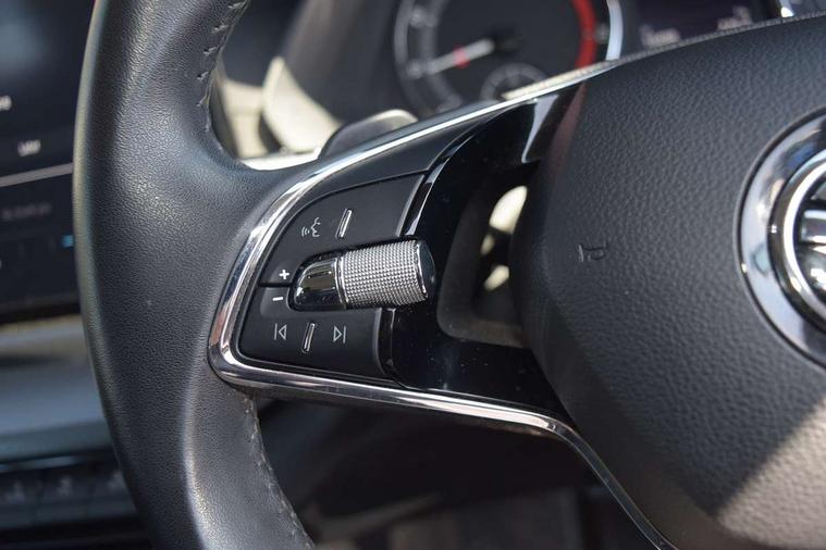 1x USB Type C port in rear view mirror (charging only), 2x USB Type C ports in rear of front centre armrest (charging only), Bluetooth system, Bolero radio with 10" touchscreen, Boot lid release from inside vehicle (electrically), Driver fatigue sensor, eCall emergency system, Electro-mechanical power steering, Front assist system, Lane assist, Rear parking sensors with manoeuvre assist, Speed limiter, Turn Assist, Voice control system, Wireless SmartLink for Apple Car Play, 2x USB Type C ports (for charging and data transfer), 8 speakers, DAB Digital radio, Aero front windscreen wipers with intermittent function, Black window surrounds, Body colour door mirrors and handles, Chrome grille surround, Dimming rear view mirror, Electric front and rear windows, Electrically adjustable and heated door mirrors, Heated rear windscreen, High level third brake light, Ice scraper in fuel cap, Rain and light sensors, Rear fog light on one side, Rear side wing doors, 3 rear headrests, 3 seat bench in 2nd row, 4 foldable roof handles, Chrome inner door handles, Climatronic dual-zone electronic air conditioning, Cloth upholstery, Front centre armrest, Front head restraints, Grey headlining, Height adjustable driver and front passenger seat with lumbar support, Illuminated glovebox, Leather trimmed gearshift lever, Luggage compartment lighting x1 light, Parcel shelf - folding, Satin black textured with artificial stiching in dash board pads, Single front passenger seat, Sunglasses storage, Ticket holder, Two-spoke leather multi function steering wheel with paddles, Umbrella in door panel, Unsplit rear bench seat and split folding backrest, 3 point front/outer rear seatbelts+pre-tensioners, Alarm with interior monitoring, tilt sensor and back up horn, Automatic door unlocking in case of crash, Automatic fuel cut off in case of crash, Automatic warning lights in case of emergency braking, Curtain airbags and front side airbags, Driver and front passenger airbags, Drivers knee airbag, Electronic parking brake, ESC including ABS, EBV, MSR, ASR, EDS, HBA, DSR, Front central airbag, Hill hold control, Hill start assist, ISOFIX on front passenger seat and outer rear seats, Manual rear child locks, Passenger airbag deactivate switch, Pro active services, Rear disc brakes, Two tone horn, Tyre pressure monitor, Visual and acoustic seat belt reminder, Warning reflectors in front door, Door locks with immobiliser, Keyless start/stop, Remote central locking, Aluminium decorative inserts,