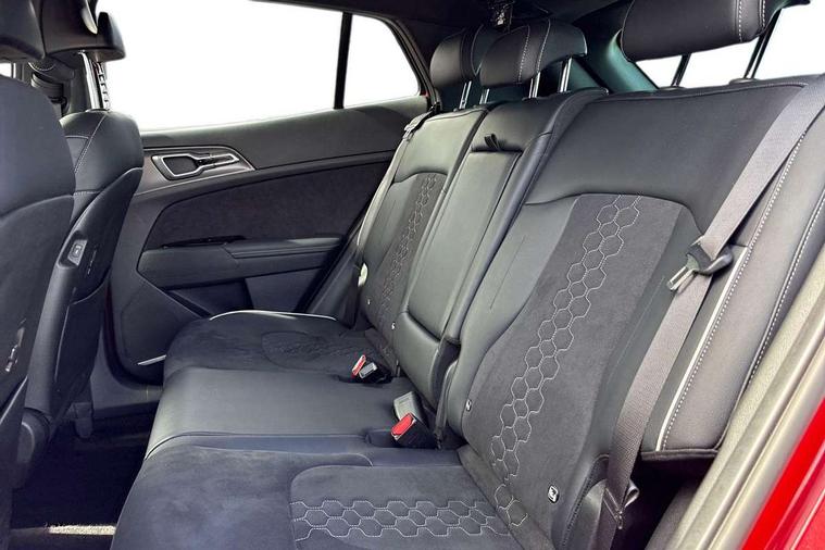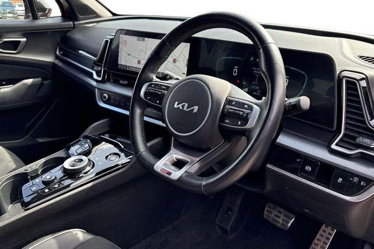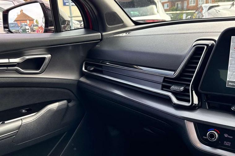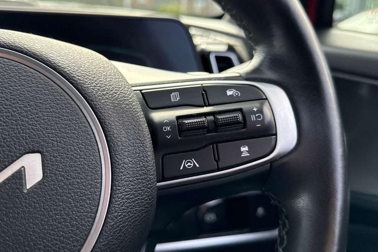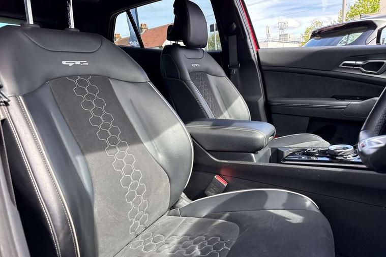 12.3" Display with navigation, 4.2" supervision colour cluster display, Apple car play/Android Auto with voice control, Drive mode selector, E-call, Forward collision avoidance assist (FCA) - city/pedestrian/cyclist/junction covering, Front and rear parking sensors, Highway Driving Assist (HDA), Intelligent speed limit assist, Kia Connect (UVO), Lane Following Assist (LFA), Lane keep assist, Low washer fluid warning, Rear view monitor, Reversing camera system integrated into centre fascia screen, Smart cruise control with stop and go functionality, Speed sensitive power steering, Trip computer, Windscreen washer level indicator, Intelligent Stop and Go, 6 speaker audio system, Bluetooth audio streaming, DAB Radio with MP3, Rear USB port, Steering wheel mounted audio controls, USB C type charging ports on centre console, USB C type charging ports on side of front seats, USB port for connection of a media device, All round electric windows with drivers and front passenger auto up/down function, Automatic headlight control system, Automatic window defogger, Backlite glass heated with timer, Body colour and black bumper with silver accents, Body colour exterior door handles, Body colour radiator upper garnish and door garnish, Electrically adjustable/heated/folding door mirrors with LED indicators, Front and rear skid plate - chrome, Gloss black door mirrors, Gloss black radiator grille, Gloss black side sill and wheel arch body mouldings, Glossy black roof rack, High beam assist, Interior electrochromic mirror, LED daytime running lights, LED front fog lamps, LED headlamps (low and high beam - MFR type), LED High mounted stop light, LED rear combination lamp, Rain sensing wipers with aero blades, Rear fog lamp, Rear privacy glass, Rear side wing doors, Rear spoiler, Rear wiper, Satin finished beltline, Silver coloured inserts to bumpers, Tinted rear glass, Trailer stability assist, 12V power socket in front centre fascia and luggage compartment, 2nd row personal lamps, 3 seat bench in 2nd row, 3 x passenger assist grips, 40/20/40 split folding rear seat, All-round height adjustable headrests, Black headlining, Centre console storage box, Cupholders in rear armrest, D-Shaped sports leather steering wheel and perforated inserts with GT-Line logo, Door courtesy lamps, Drink holder at centre armrest, Driver and front passenger side sunvisors with illuminated vanity mirrors, Driver's seat manual height adjust, Drivers seat power lumbar support, Front and rear door storage, Front seat and rear pockets, Front/rear centre armrests, Gear shift indicator, Glovebox illumination, Heated front seats, Heated steering wheel, Interior door lock/unlock function, ISOFIX Child seat top tethers and anchor fixings outer rear seats, Luggage area light, Luggage area load cover, Luggage net hooks, Metal paint interior door handles, Overhead console lamp, Paddle shift controls, Rear cabin light, Rear coat hooks, Single front passenger seat, Sports pedals, Suede leather upholstery, Three zone climate control, Tilt/telescopic adjustable steering wheel, Ventilation ducts to rear compartment, Active front headrests, All round 3-point seatbelts, Anti-lock braking system (ABS), Dual front side airbags, Dual horn, Electronic parking brake, Electronic stability control with downhill brake control, Front passenger airbag cut-off switch, Front seatbelt pretensioners + load limiters, Height adjustable front seatbelts, Hill start assist control (HAC), Impact sensing auto door unlocking, Multi collision brake assist, Rear door child safety locks, Rear seat alert system, Traction control, Twin curtain airbags, Twin front airbags, Tyre pressure monitoring system, Advanced anti-theft system including immobiliser and alarm, Door deadlocks, Engine Start/Stop Button with Smart Entry System, Locking wheel nuts, Speed sensitive auto door locking, Visible vehicle identification number, Aluminium pattern finish centre fascia and door garnish, 19" GT-Line alloy wheels, Tyre mobility kit,