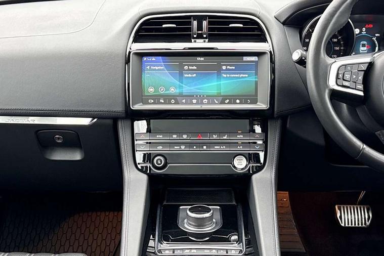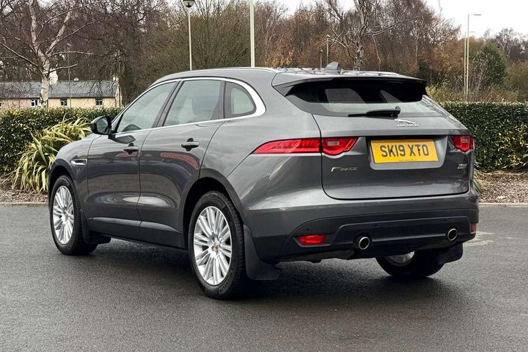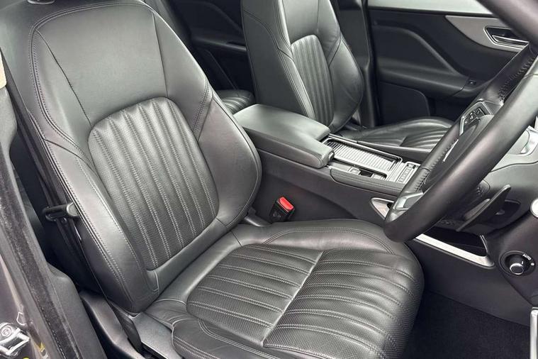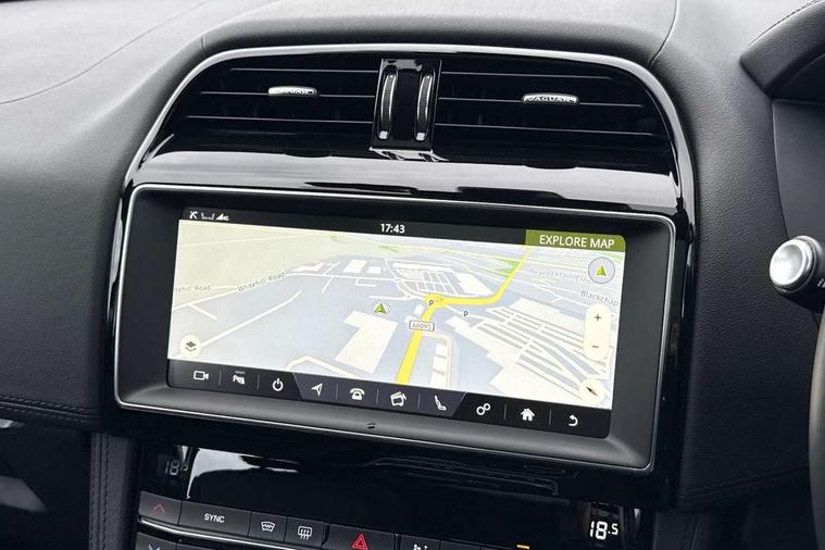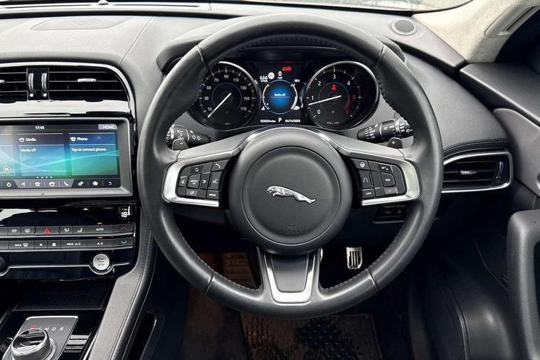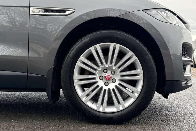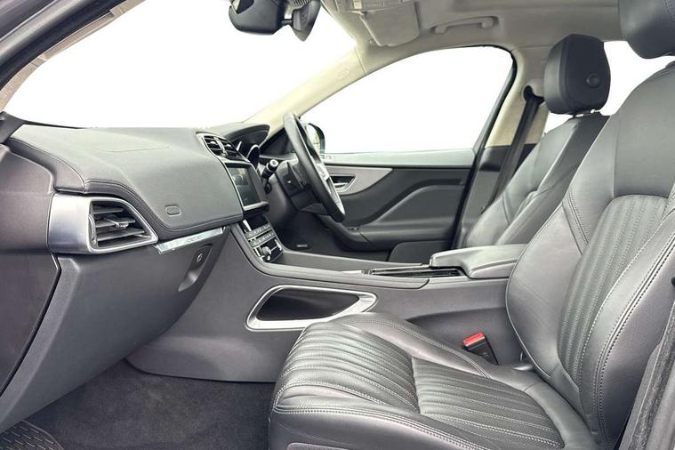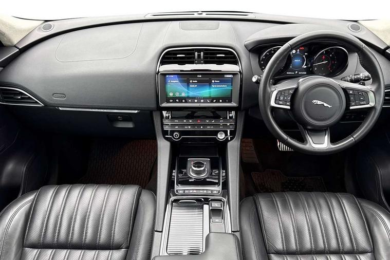 Analogue dials with 7" central TFT display, Auto speed limiter, Driver condition monitor, Eco driving style assistant, Front parking aid, Lane departure warning system, Lane keep assist with driver alert control, Outside temperature gauge, Pro services and wifi hotspot, Push button starter, Rear parking aid, Satin chrome surround on touch screen, Service interval indicator, Servotronic speed sensitive power steering, Start up sequence with movement in dials and lighting, Traffic sign recognition, Trip computer, Voice control system, All terrain progress control, AM/FM radio, Bluetooth connectivity including audio streaming, DAB Digital radio, Dynamic volume control, InControl protect, USB/iPod connection, 3 flash lane change indicators, Approach Illumination, Auto dimming rear view mirror, Automatic headlights, Black rear bumper valance, Body colour bumpers, Body colour door mirrors, Dual tailpipe, Electric front/rear windows with one touch/auto up/down, F-Pace badge, Front fog lights, Grained black door claddings, Green tinted heat insulating glass, Headlight washers, Heated rear window with timer, Heated washer jets, Illuminated metal tread plates with Jaguar script, LED tail lights, Rain sensor windscreen wipers, Rear fog lights, Rear metal tread plates, Rear wiper, Trailer stability assist, Variable front intermittent wipers, 12V power point front, 12V power point in luggage area, 2nd row air vents, 3 rear headrests, 40:20:40 split folding rear bench seat, Bright metal foot pedals, Centre armrest console, Door sill tread plates, Fold flat front seats, Front centre armrest with storage compartment, Illuminated glovebox, Illuminated luggage compartment, Interior front door handles with separate locking switches, ISOFIX on outer rear seats, Jaguar sense, JaguarDrive selector, Luxury seats, Multifunction steering wheel, Overhead lighting console, Perforated Windsor leather upholstery, Premium carpet mats, Rear armrest with 2 cupholders, Reversible boot floor, Shopping hook in boot, Sport leather steering wheel, Steering wheel gearshift paddles, Sunvisors with illuminated vanity mirrors, Tie down hooks in luggage area, Twin front covered cupholders, Connect pro pack - F-Pace, 350mm front brakes, 3x3 point rear seatbelts, ABS, Anti-whiplash front headrests, Autonomous emergency braking (AEB) with forward facing camera, Brake pad warning light, Driver/Front Passenger airbags, DSC - Dynamic Stability Control, Electronic parking brake, Front and rear curtain airbags, Front and rear seatbelt reminder, Front passenger seat occupancy sensor, Front side airbags, Grey brake calipers, Hill start assist, Power child locks, Torque vectoring brake, Traction control, Tyre pressure monitoring system, Immobiliser, Keyless start, Perimeter alarm, Remote central locking, Valet mode, Luxtec door trim, Luxtec wrapped instrument panel, Satin chrome centre console surround,