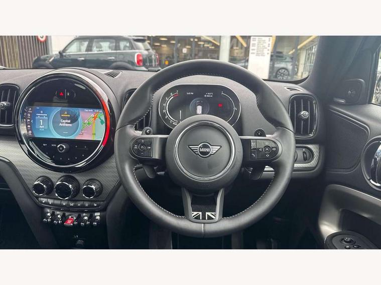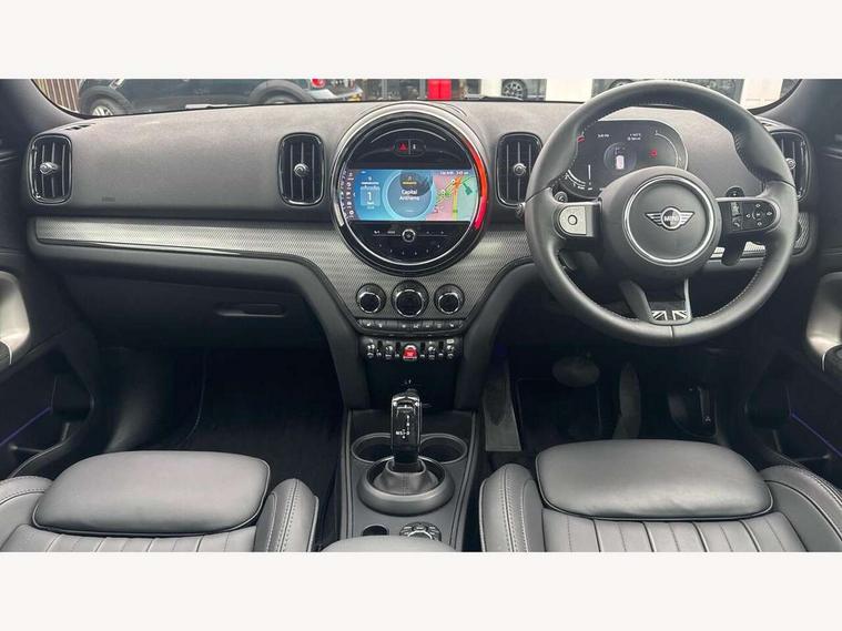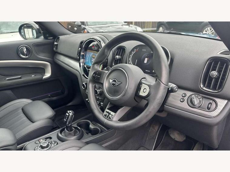Active Guard incl speed limiting and lane departure functions with auto steering, and front collision warning with brake intervention, Automatic start/stop function with brake energy recuperation, Electro-mechanical speed dependant steering assistance, Instrument cluster, MINI Driving Modes - centre toggle switch to control driving setting (sport, mid and green), Mini E-call, MINI TeleServices, On board computer, Double Vanos system, Fully variable valve control, High precision injection, Performance Control, Steptronic sport transmission with double clutch and steering wheel paddles, FM tuner and DAB digital radio, 3rd brake light, Bonnet scoop, Chrome fuel filler cap, Day time driving lights, Dynamic brake lights, Electric windows, Heated rear window, Heated windscreen washer jets, LED fog lights, Metal door sill strips with Cooper S imprint, MINI yours exterior badge in C-Pillar, driver and passenger side, Model logo, Model logo on Tailgate, Rain sensor with auto headlights, Rear fog lights, Rear side wing doors, Rear window wiper, Side scuttle panel with integrated indicator, Split rear doors, Sun/heat protection glass, White indicator lenses, 12V socket in centre console, 3 seat bench in 2nd row, 360L luggage compartment capacity, 4 lashing eyes in luggage compartment, 40:20:40 split folding rear seats, Anthracite headlining with grab handles and clothes hooks, Chrome interior highlights, Colour line - Carbon black, Cupholders, English handbook, Front headrests, Glove compartment, Height and length steering column adjustment, Interior lighting with 12 basic colours selectable via toggle switch in roof, Isofix rear child seat preparation, Leather gearshift lever and handbrake gaiters, LED reading lights, vanity mirror lights, front foot well light and spotlight on front seats, MINI Yours fine walk nappa leather steering wheel with contrast stitching in silver and MINI Yours badge, Multifunction steering wheel, Rear headrests, Single front passenger seat, Storage compartments in doors, Sunvisors with vanity mirrors, Excitement pack - Countryman, Navigation plus pack - Countryman, 2 tone horn, 3 point seatbelts on all seats, 6 Airbags - front, side, head and seat belt tensioners, Anti-lock braking system (ABS), DSC - Dynamic Stability Control, Electronic handbrake, Front and rear disc brakes, Hill start assist, Manual rear child locks, Tyre pressure monitoring system, Alarm system with tilt sensor, monitoring doors, bonnet interior and tailgate, Auto drive away locking, Deadlocking function, Electronic vehicle immobiliser, Locking wheel bolts, Start/stop toggle with keyless go, Tool kit,