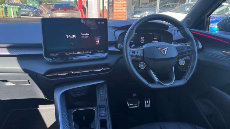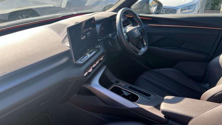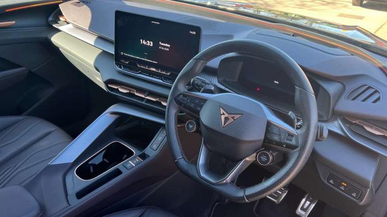 10.25" digital cockpit and configurable dashboard, Adaptive cruise control with follow-to-stop and speed limiter, Advanced driver alert system, Advanced lane assist with semi-automatic vehicle control in a medical emergency and traffic jam assist, Driving profile selection (DCC- Comfort, performance, CUPRA, Individual, Dynamic road sign display, E-call, Electric tailgate with virtual pedal, Emergency steering support with turn assist, Front and rear parking sensors, Front assist (Forward collision warning with automatic braking) with multifunction camera and front cross traffic assist, Head up Display, Intelligent park assist, Media system with Nav - 12.9" touch display, voice control, full link phone (wired/wireless), DAB and Steering wheel mounted controls, Rear traffic assist, Side and exit assist, Speed sensitive power steering, Start/stop system with regenerative braking, Top view camera (front camera, rear camera, 2 side cameras), Wireless phone charger, Adaptive chassis control with a 2-valve shock absorber, Auto dimming rear view mirror, Black roof rails, CUPRA 3D rear lights with ceremony & swiping indicator and illuminated logo, Dark tinted rear windows, Daytime running lights with automatic headlight control and Coming and Leaving home function, Door mirrors with memory function and lowing function on passenger mirror, Electric front/rear windows, Electrically adjustable, heated and folding door mirrors, Front fog lamps with cornering function, Heat reflecting windscreen, High beam assist, Rain sensing wipers, Rear fog light on one side, back up light on both sides, Rear side wing doors, Rear wash/wipe, Third brake light, Welcome lights (within exterior mirror housing), 3 seat bench in 2nd row, Black roof lining, Cupra sports pedals, Driver seat memory function, Electrically adjustable front seats including lumbar support, Four x USB Type C ports (2 in front and 2 in rear), Front and rear head restraints, Front and rear reading lights X 4, Front centre armrest, Heated front seats, Heated leather wrapped multi function sports steering wheel with tiptronic, Illuminated interior front door sills, Isofix, Leather upholstery, Operating voltage 12V, Single front passenger seat, Smart wraparound interior lighting, Sunvisors with illuminated mirror, Three zone climate control with control panel in rear, Unsplit rear seat bench, split folding backrest, with centre armrest, Variable luggage/load compartment floor, Pure performance pack - Terramar, 3 point seatbelts in front with pretensioner and electric height adjustment, 3 point seatbelts on all rear seats, Brake control system - ESC and brake booster, Child proof door locks, Driver and front passenger airbags, Electronic parking brake, Front and rear disc brakes, Front interaction airbag, Front passenger airbag deactivation switch, Front side airbags with curtain airbags, Pre-crash front and rear seat belt tensioner, window closure and hazard lights, Tyre pressure monitoring system, Visual and acoustic seat belt reminder, electric contact in front and rear, Anti theft alarm, Keyless locking and starting system with keyless access, Locking wheel bolts, Black decorative trims, Chrome interior detailing, Performance tyres in polmer coating, Tool kit,