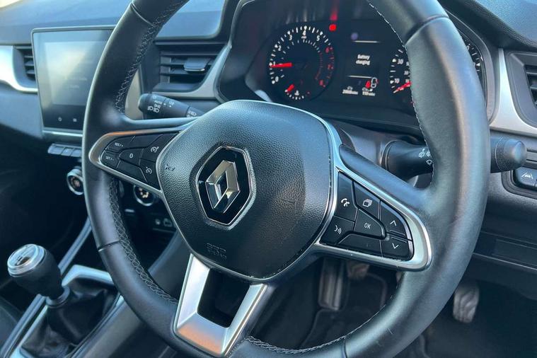 4.2" TFT Driver information display, Cruise control + speed limiter, EasyLink 7" touchscreen with navigation, google search and traffic information, Eco mode, Gear change indicator, Lane departure warning system, Lane keep assist, Rear parking sensor, Renault automatic emergency assist, Smartphone integration compatible with Apple CarPlay and Android Auto, Traffic sign recognition with over speed prevention, Trip computer, Variable assistance power steering, DAB Radio with Bluetooth and USB, 2 reverse gear LED lamps and 1 rear LED fog lamp in the bumper, Automatic front wipers with rain sensors, Automatic headlights, Black side door protection, Body colour door handles, Body coloured bumpers, Body coloured door mirrors, Day time running light, Drivers one touch window with anti-pinch feature, Extra tinted glass in rear windows and tailgate, Front and rear electric windows, Full LED headlights, Grey front and rear skid plate, LED high level brake lights, LED rear fog lights, LED turn indicators on door mirrors, Rear side wing doors, Rear wiper, 12V Accessory socket, 60/40 split and fixed base rear seat bench, Automatic climate control with one touch demist function and air quality regulator, Cloth upholstery, Front head restraints, Glovebox, Heating system with pollen filter, Height adjustable driver's seat, Height/reach adjust steering wheel, ISOFIX child seat fixing points on rear outermost seats, Middle console with armrest and storage, Rear air vents, Rear head restraints, Single front passenger seat, Sliding rear bench, Standard bulb in front roof lights, Synthetic leather steering wheel, 3 rear seatbelts, ABS+EBA, AEBS - active emergency braking system, Distance warning alert, Driver and front passenger and 3 rear passengers seatbelt reminder, Driver and front passenger, side, head and curtain airbags, Driver height adjustable seat belt, Electric parking brake, Electronic stability control, Front dash warning indicator in case of heavy braking, Front driver and passenger side airbag deactivation, Hill start assist, Manual passenger airbag deactivation function, Rear door and window child locking function for rear door, Tyre pressure warning light, Anti drill door locks and locking fuel cap, Central door locking, Deadlocking system, Hands free keycard with push button and start/stop function, RAID (Renault Anti-Intruder Device) automatic door locking, Black soft touch dashboard, 17" Ediris diamond cut alloy wheels,