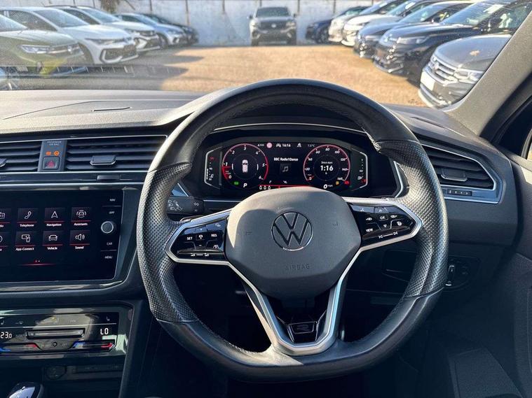 Adaptive cruise control ACC stop and go including speed limiter, App-Connect incl. App-Connect Wireless for Apple CarPlay and Android Auto, Bluetooth phone integration system, Distance control assist, Driver alert system, Driver profile selection, Dynamic road sign display, eCall emergency call system, Electromechanical speed sensitive power steering, Engine start/stop button, Lane keeping system Lane Assist, Lights on warning, Multifunction front facing camera, Outside temperature display, Premium multifunction display with multi colour display, Remote control boot opening, Rev counter, Revision / skills operating concept travel assistant, Service interval indicator, Speed limit display, Start/stop system with regenerative braking, Trip computer, Warning sound and light for doors and tailgate open, Battery regeneration during braking, Diesel particulate filter, Misfuel prevention device for diesel engine, Selective Catalytic Reduction, XDS electronic differential lock for improved traction and handling, 4 X 20 watt output, 8 Speakers, Diversity antenna for FM reception, Radio, SD card slot, Simultaneous pairing of 2 compatible mobile devices, SMS functionality - read, compose and send SMS messages using touch-screen display, Title and cover art display, USB C ports, Auto dimming interior rear view mirror, Automatic headlight control system, Body colour door handles, Chrome moldings on the side windows, Coming/leaving home lighting function, Dynamic headlight range control, Front and rear electric windows, Heated rear window, High level 3rd brake light, Laminated safety glass windshield, heat and sound insulating, LED headlamps with LED separate daytime running light and dynamic cornering light, LED rear combination lamps, LED rear number plate lights, License plate carrier in front and rear, Poor weather light and cornering light, R Line body kit, R Line side sills, Rain sensor windscreen wipers, Rear exhaust tailpipe, Rear fog lamp, Rear side wing doors, Rear spoiler in R style, Rear windscreen washer and wiper with interval delay, Side and rear windows in heat insulating glass, Trailer Stability Programme, Unique R Line badging, Windscreen wipers/ intermittent wipe + 4 position delay, 12V outlet in center console rear and in luggage compartment, 12V outlet in front and tray, 2 cup holders in front, 2 LED front reading lights, 2 LED rear reading lights, 3 bench rear seats in 2nd row, 3 rear headrests, 4 load lashing points, 40:20:40 split folding rear seats, Air Care Climatronic 3 zone automatic climate control with enhanced air filter and controls in the rear, Backrest release for left front seat, Black headlining, Brushed stainless steel pedals and footrest, Carpet mats in front and rear with decorative stitching in Gray, Climate control unit rear with touch function, Door and side trim panel in foam film, insert in leatherette, Front centre armrest, Front footwell illumination, Front seats head restraints (x-adjustment), Height adjustable front seats, Height/reach adjust steering wheel, Instrument lighting white adjustable panel illumination, Interior light with delay, Isofix Preparation 2 Rear child seats, Leather gear knob, Lockable cooled glovebox, Luggage compartment lighting, Luggage net, Rear bench seat asymetrically split folding, longitudinally movable and folding with load-through hatch and center armrest, Remote unlocking for rear seat backrest, Removable luggage cover, Removable rear headrests, Safety optimised front head restraints, Single front passenger seat, Sliding/reclining rear seats, Standard rear seat release, Storage compartment in driver's door, Storage compartment in passenger's door, Storage compartment in rear doors, Storage compartments in luggage area left and right, Storage tray on dashboard, Sun visors with illuminated vanity mirrors, Top front comfort seats, Variable boot floor, height adjustable and removable, Driver assistance pack plus - Tiguan DSG, 3 point seat belt for centre rear seats, 3 point seat belts with seat belt pretensioners for the outer rear seats, Active bonnet, Curtain airbags for front and rear passengers, Driver/Front Passenger airbags, Drivers knee airbag, Electronic parking brake with auto hold, Electronic Stability Control with driver steering recommendation, ABS, ASR, EDL, EDTC and trailer stabilization, Front assist with autonomous emergency braking (for Adaptive Cruise Control ACC up to 130 mph), Front disc brakes, Front passenger airbag deactivation, Front side airbags, Height adjustable front 3 point seatbelts + pretensioners, Hill hold control, Manual child proof rear door locks, Pedestrian monitoring system, Power assisted brakes, Proactive passenger protection system in combination with front assist, Rear disc brakes, Rigid safety cell with front and rear crumple zones, Two tone horn, Warning sound and light for front seat belts if unfastened, Anti theft alarm system with interior monitoring, backup horn and towing protection, Anti theft wheel bolts, Electronic engine immobiliser, Tool kit,