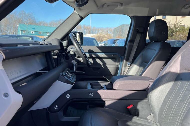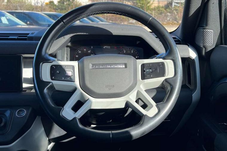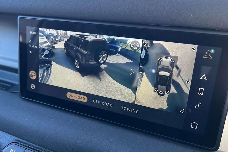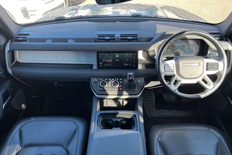 360 degree parking aid, 3D Surround Camera with 360 View, 180 Rear View, Front Traffic Detection, Forward Vehicle Guidance, Tow Hitch Assist and clear sight Ground View, Android Auto, Apple CarPlay, Assisted tailgate with soft close, Bluetooth system, Brake pad wear indicator, Click and go integrated base unit, Connected navigation pro, Driver condition monitor, Electric power assisted steering (EPAS), Interactive driver display, Lane keep assist, Push button start, Traffic sign recognition with adaptive speed limiter, Trip computer, Wade Sensing, Adaptive dynamics, DAB Radio (Digital Audio Broadcasting), Pivi pro connected, Auto high beam assist, Automatic headlights, Centre high mounted stop light, Electric heated/power fold door mirrors with approach lights and auto dimming driver side, Electric windows with one touch open/close and anti-trap, Follow me home lighting, Heated rear window with timer, Heated windscreen, LED tail lights, Puddle lights, Rain sensing windscreen wipers, Rear fog lights, Standard treadplates, Trailer stability assist, 12V power socket in loadspace, Carpet mats, Durable rubber cabin flooring, Durable rubber loadspace flooring, Footwell lights, Loadspace cover, Loadspace Hook, Multifunction steering wheel, Overhead stowage for sunglasses, Rear headrests, Rear ISOFIX, Rear reading lights, Storage glovebox, Sunvisors with illuminated vanity mirrors, Online pack with data plan - Defender, 5 x 3 point seatbelts, ABS, Brake hold function, Cornering brake control (CBC), Customer configurable autolock, Driver and passenger airbags, DSC - Dynamic Stability Control, EBD - Electronic brakeforce distribution, Electric parking brake (EPB), Emergency braking, ESP + traction control, Front airbags with passenger seat occupant detector, HDC - Hill descent control, Hill launch assist, Low traction launch, Power operated child locks, Remote for (e-Call, Optimised assistance call, InControl app, Climate, beep and flash and door), RSC - Roll stability control, Seat belt reminder, TPMS (Tyre pressure monitoring system), Alarm, Immobiliser, Intrusion sensor, Keyless entry and go, Locking wheel nuts,