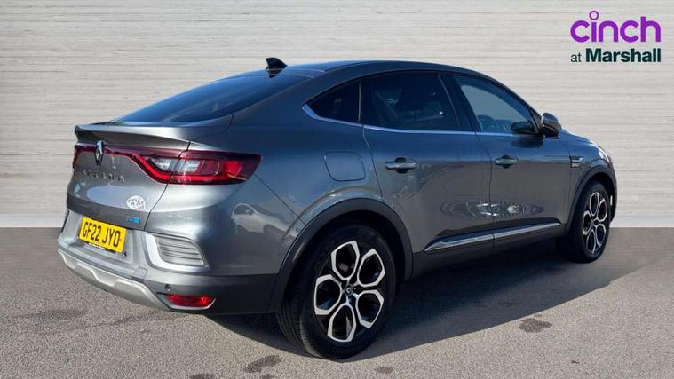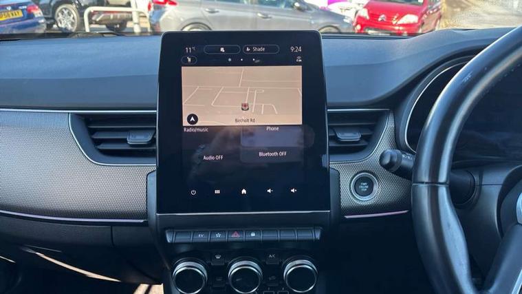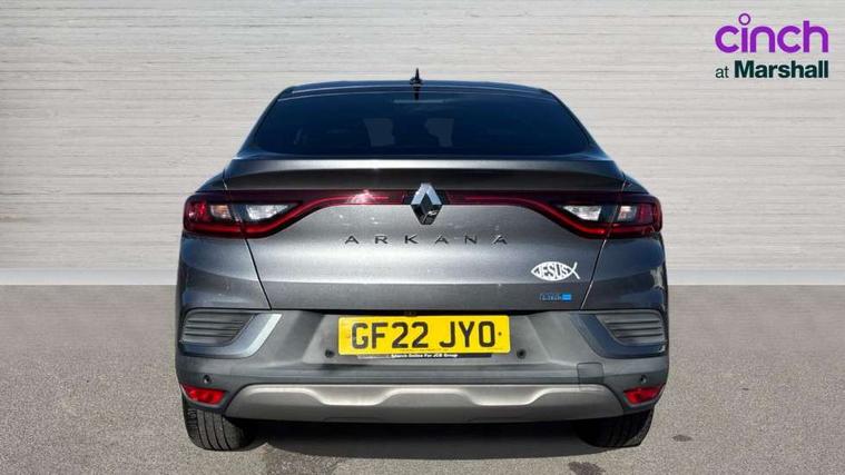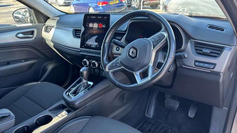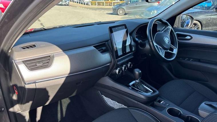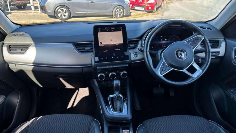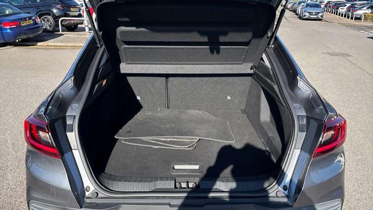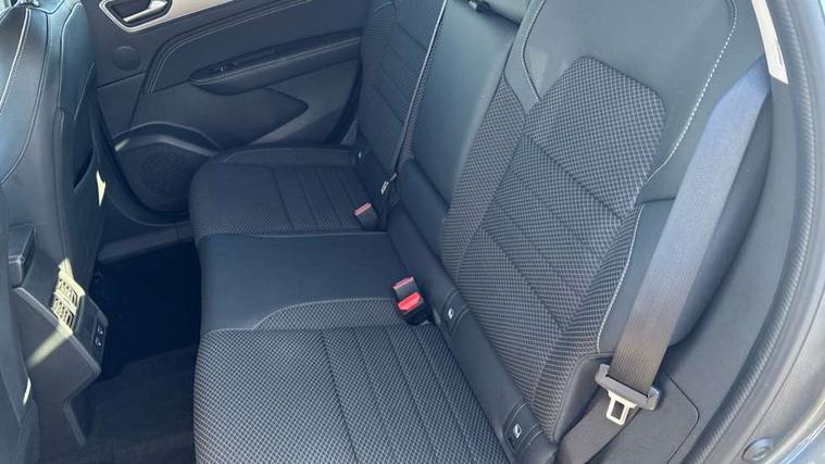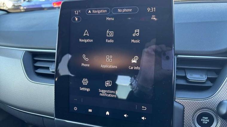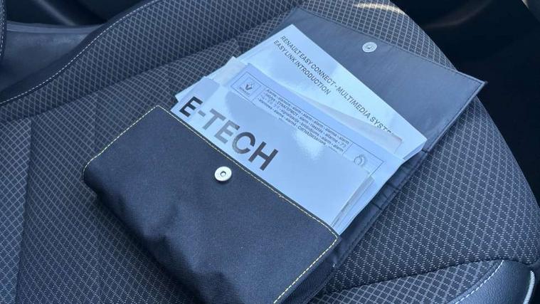 7" TFT Driver information display, Blind spot warning, Bluetooth system, EASY LINK 9.3" portrait touchscreen with navigation, Google search and traffic information, eCall emergency call system, Eco mode, EV button to activate pure mode, Front and rear parking sensors, Gear change indicator, Lane departure warning, Lane keep assist, Multi-sense - 3 driving modes and 8 ambient lighting, Rear cross traffic alert, Rear view camera, Renault automatic emergency assist, Smartphone integration compatible with Apple CarPlay and Android Auto, Traffic sign recognition with over speed prevention, Trip computer, Variable assistance electric power steering, Arkamys classic sound system with 6 speakers, DAB radio, USB port, 3rd brake light, Auto dimming rear view mirror, Automatic headlights, Automatic high / low beam, Automatic windscreen wipers with rain sensor, Black side door protection with chrome insert, Body coloured bumpers, C-shaped LED front signature lighting, Chrome decopart on wing (fender molding), Chrome window lower lining, Extra tinted rear windows and tailgate, Front and rear electric windows, Front driver window with one touch facility and anti-pinch function, Front grille with chrome on upper part, Full LED headlights, Grey front and rear skid plates, Heated rear window, Rain sensor, Rear windscreen wiper, Shiny black shark fin antenna, Side mirrors adjustable electrically, electrically foldable, with defrosting and temperature sensor, automatically foldable at vehicle closure, 3 seat bench in 2nd row, 60:40 split and fixed base rear seats, Automatic climate control with combined filter, humidity sensor and AQS, Central console with storage, Front and rear head restraints, Height and reach adjustable steering wheel, ISOFIX child seat fixing points on rear outermost seats, Leather steering wheel, LED front and rear roof lights, Rear air vents, Single front passenger seat, 3x3 point rear seat belts, ABS+EBA, Active emergency braking system, B Brake Mode - One pedal driving with increased regenerative braking, Distance warning alert, Driver airbag, Driver and passenger front and side airbag deactivation, Driver and passenger side airbags, Driver height adjustable seat belt, Electronic parking brake with auto hold, ESC (Electronic Stability Control), Front and rear no seatbelt warning sound, Front curtain airbags, Front head airbags, Hill start assist, Passenger airbag, Tyre pressure warning light, Anti drill door locks and locking fuel cap, Central door locking, Deadlocking system, Hands free keycard with Keyless access and start, RAID (Renault Anti-Intruder Device) automatic door locking, Rear side wing door and window child locking function (front driver door control panel), Superlocking, Thatcham alarm, 18" Pasadena diamond cut alloy wheels with grey inserts,