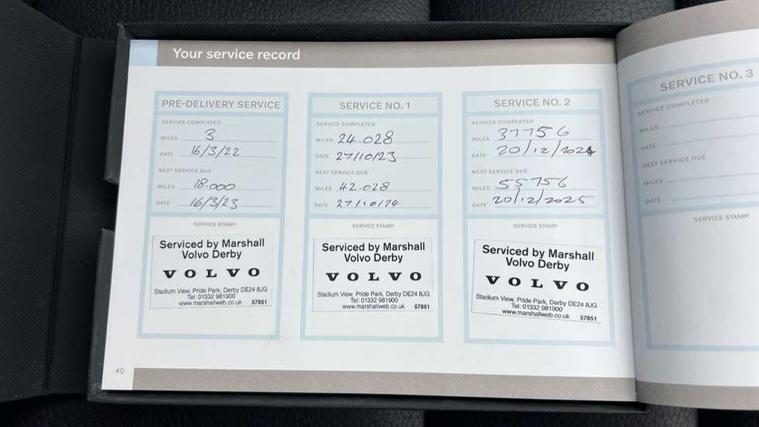 12.3" Active TFT crystal driver's instrument display, 9" centre console touch screen, Adjustable steering wheel force, Bluetooth handsfree system, Drive mode selector, Driver alert control with lane keeping aid, Emergency services call system, Front and rear park assist, Google Automotive Services, Oncoming Lane Mitigation, Power tailgate, Service interval indicator, Speed limiter, Speed sensitive steering, Trip computer, Volvo on call with App, Wireless/Inductive Mobile Phone Charging, 8 speed automatic transmission with start/stop + manual change functions, Diesel particulate filter, Dynamic chassis, DAB Digital radio, Steering wheel remote infotainment controls, Adaptive brake lights with high level LED brake lights, Auto dimming interior + exterior mirrors, Automatic headlight levelling system, Automatic LED Headlights + Active high beam incorporating daytime running lights, Colour co-ordinated door mirrors, Electric adjustable/heated/auto power folding door mirrors, Electric front+rear windows, Front aluminium tread plates, Home safe and approach lighting, Integrated roof rails in black, Piano black front grille with chrome surround, Rain sensor with automatic windscreen wiper activation, Rear side wing doors, Rear wiper, Roof antenna, Roof spoiler, Tinted windscreen, Visible VIN plate, 12V socket in front tunnel console and luggage compartment, 3 seat bench in 2nd row, A-pillar parking ticket holder, B Pillar ventilation, Blond headlining, Bright metal luggage threshold, Centre armrest storage illumination, Centre console cupholders and storage, Floor mats, Front footwell and side step illumination, Front reading lights, Head restraints for all seats, Heated front seats, Height/reach adjustable steering column, Illuminated glovebox, Illuminated luggage compartment, Illuminated vanity mirrors + ticket holder, Leather upholstery, Load cover, Load protection net, Power height adjustable passenger seat with lumbar support, Rear armrest with cupholder, Rear seat concealed storage, Single front passenger seat, Underfloor stowage compartment, Versatile split folding rear seat - 60/40, 5 three point seatbelts, City safety with steering support with Pedestrian + cyclist + large animal detection + front collision warning with full auto brake, Drivers knee airbag, Dual stage driver/passenger airbags, Electronic parking brake with auto hold, First aid kit, Hill descent control, Hill start assist, IC (Inflatable Curtains) - Full Length, Mechanical child locks on rear doors, Passenger airbag cut-off device, Road sign information display, Run off Road Mitigation, Run off Road Protection, Seatbelt reminder and pretensioners, SIPS (Side Impact Protection System), SIPS airbags, Slippery road and hazard light alert, Stability and Traction Control with Spin control, Engine Drag Control and Corner Traction Control, Tyre pressure monitoring system, Vehicle deceleration control with Anti-lock Brake System, Electronic Brake Distribution and Emergency Brake Assist, Warning triangle, WHIPS whiplash protection system - front, Anti-theft alarm including immobiliser/volume sensor + level sensor, Care key with user defined top speed, Key integrated remote control central locking + fuel flap with deadlocking system and auto open/close power windows, Keyless start, Locking wheel nuts, Private locking for tailgate, Iron ore inlays,