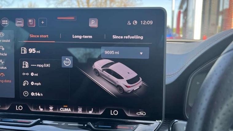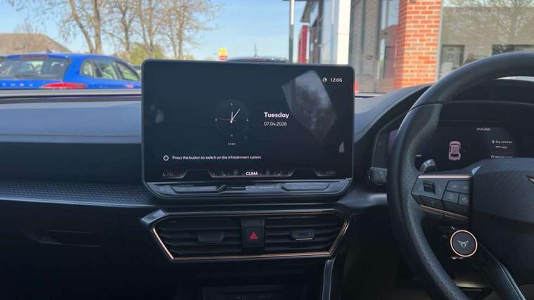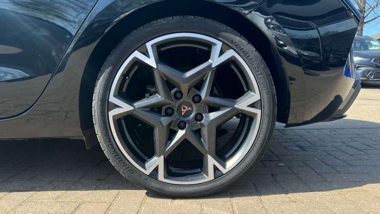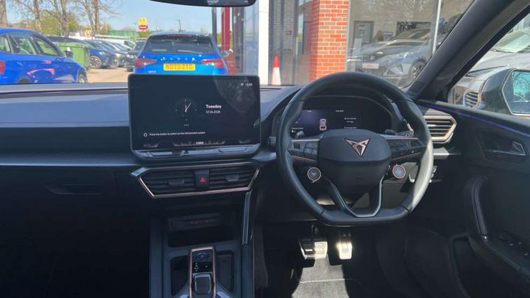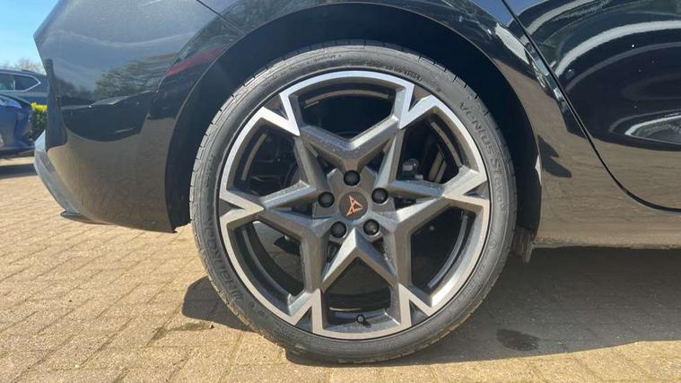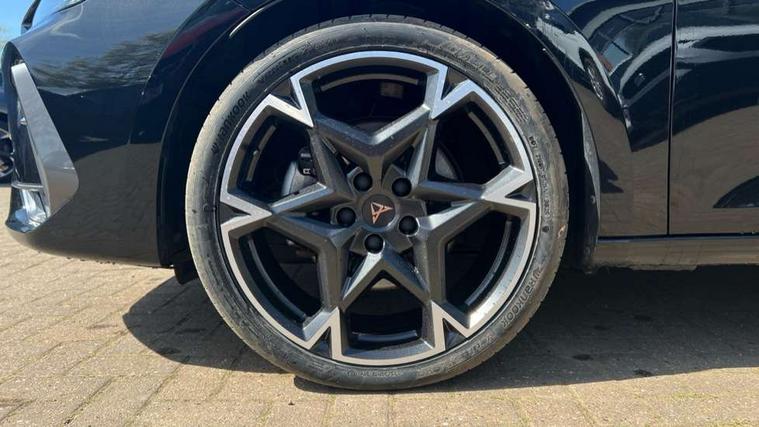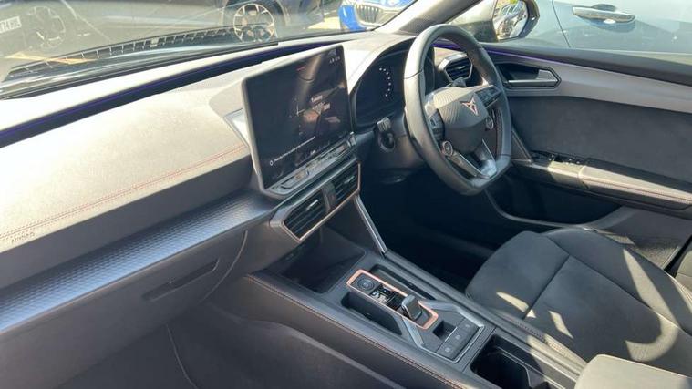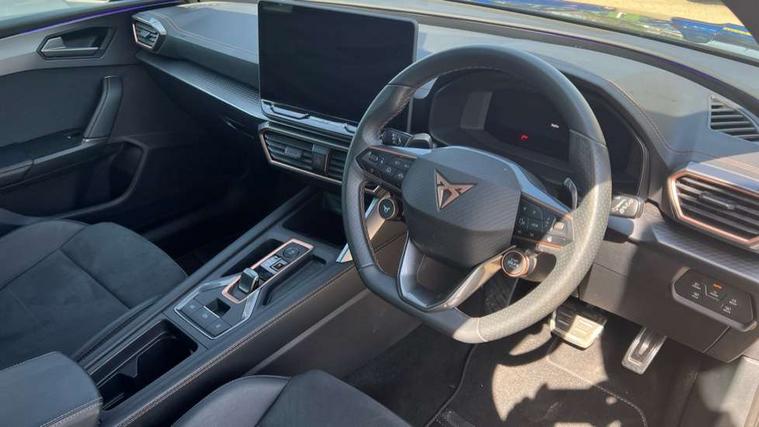 Adaptive cruise control with follow-to-stop and speed limiter, CUPRA drive profile selection with (Comfort/Sport/Individual), throttle response and gearshift mode, Digital cockpit, Dynamic road sign display, E-call, Front and rear parking sensors, Front assist with forward collision warning braking reaction to vehicles, pedestrians and cyclists, Full link smartphone integration with Mirror Link, wireless Apple CarPlay and wired Google Android Auto, Lane assist, Lockable tailgate, Rear view camera, RPM, trip computer, outside temp gauge, instrument light brightness, low fuel warning light, lights on reminder, gearshift indicator, Service interval indicator, Start/stop system with regenerative braking, Wireless phone charger, Auxiliary input socket, Auto dimming rear view mirror, Body colour door handles, Body coloured bumpers, Cupra sports bumpers, Dark tinted rear windows, Electric front/rear windows, Electrically adjustable, heated and folding door mirrors, High beam assist, LED front fog lamps with cornering function, LED headlights with dynamic turn signals, tail lights, rear fog lights with rear coast to coast lighting, LED rear fog lamp, Rain sensing wipers, Rear side wing doors, Rear wash/wipe, Separate daytime running light with automatic headlight control and coming home feature, Third brake light, Welcome light with logo projector in door mirrors, 12v power supply in centre console, 3 seat bench in 2nd row, 5 headrests, 60/40 split rear bench seat with armrest, Ambient lighting (glovebox, footwell, ambient lighting multicoloured), Black headlining, Cupra sports pedals, CUPRA Supersports, heated steering wheel with satellite buttons, Dinamica cloth upholstery, Electrically adjustable driver seat and lumbar support with memory function + manually adjustable passenger seat, Folding boot cover, Four x USB Type C ports (2 in front and 2 in rear), Front and rear reading lights X 4, Front centre armrest, Heated front seats, Height/reach adjust steering wheel, Illuminated interior front door sills, Interior wraparound lighting, ISOFIX points in outer rear seats with top tether anchorage points, Single front passenger seat, Storage pockets on rear of front seats, Sunvisors with illuminated mirror, Three zone climate control, Dynamic and comfort pack - Leon Cupra, Media system plus with 12.9" display + navigation pack - Leon Cupra, 3 point seatbelts on all rear seats, ABS, Brake control system - ESC and brake booster, Child proof door locks, Cupra black brake calipers, Driver and front passenger airbags with front passenger airbag de-activation, front side and curtain airbags, Electronic parking brake, Hill hold control, Rear disc brakes, Seat belt reminder for front and rear seats, Tiredness recognition system, Tyre pressure monitoring system, Anti theft alarm system with interior monitoring in cab, backup horn and towing protection, KESSY Advanced - Keyless start, keyless entry, Locking wheel bolts, Chrome and copper interior detailing, 19" Polar machined sport black and silver alloy wheel with 91Y tyres, Tool kit,