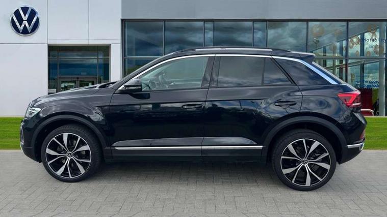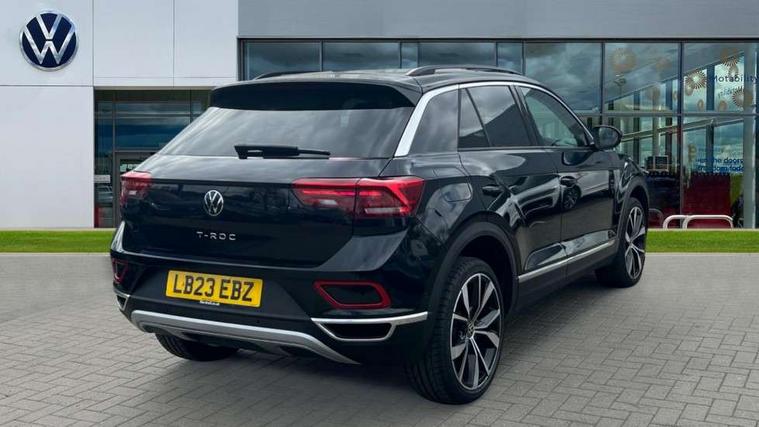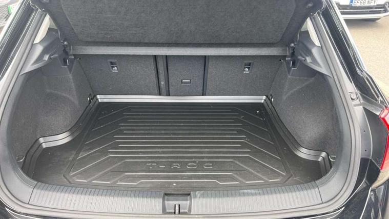 10.25" Digital cockpit pro, Bluetooth mobile phone interface, Driver alert system with fatigue detection, Driver tips and journey analysis, Emergency call service, Lane keeping system Lane Assist, Modified key software - reduce switch off time for key status change to Long no motion, Online services, Park assist including front and rear parking sensors, Service interval indicator, Tailgate/trunk lid release from outside, Think blue trainer driver tips and journey analysis, Warning sound and light for front seatbelts unfastened, Wireless app connect, Battery regeneration during braking, Start/stop function with battery regeneration, Diversity antenna for FM reception, Front and rear 6 speakers, Music playback - MP3, WMA and AAC files, Premium USB cable in choice of either Apple or Android smartphone compatibility, SD card slot, Simultaneous pairing of 2 compatible mobile devices, Title and cover art display, We Connect and We Connect Plus functionality, 3rd brake light, Auto dimming interior rear view mirror, Automatic hazard lights activation under emergency braking, Automatic headlight control with LED separate daytime running lights with coming/leaving home function, Body colour sports bumpers with silver metallic underbody fascia, Dynamic headlight range control with self adjusting whilst driving, Extended roof spoiler, Exterior mirrors aspherical on driver side, convex on front passenger side, External USB type C socket and charging sockets, Front windscreen wiper with intermittent wipe and 4 position delay, Heated rear window, LED Plus headlamps, LED rear combination lamps, LED rear number plate lights, LED tail lamp rear comination lamps, Light mode for poor weather, rain, fog or snow, Power windows with comfort operation and circuit breaker, Rain sensor, Rear exhaust tailpipe, Rear fog light on one side and reversing lights on both sides, Rear side wing doors, Rear wash/wipe with intermittent wipe setting, Remote electrically foldable door mirrors, puddle lights and reverse activated passenger's door mirror, 12V power socket in centre console, 3 rear head restraints, 3 seat bench in 2nd row, 4 load lashing points in luggage compartment, Air care climatronic air conditoning system with active combination filter and 2-zone temperature control, Chrome plated radiator grille inserts, air vent surrounds and light switch surrounds, Door and side trim panel with leatherette insert, Drawer under drivers seat, Front + rear carpet mats, Front centre armrest, Front comfort sports seats, Front cupholders x 2, Front footwell illumination, Instrument lighting, white adjustable panel illumination, Interior ambient lighting and surround lighting, Interior light delay, Isofix child seat preparation, Leather gearshift handle, LED interior light with switch off delay/dimmer and 2 front/rear LED reading lights, Load-through provision with cup holder when folded down ('Unsplit rear seat bench, split folding backrest, with centre armrest), Luggage compartment lighting, Non-folding front passenger seat backrest, Single front passenger seat, Storage compartment in left and right luggage area, Storage compartment in rear doors, Storage compartments in driver and front passenger doors, Sunvisors with illuminated vanity mirrors, Variable boot floor, height adjustable and removable, Driver assistance pack without proactive passenger protection - T-Roc, 3 point height adj front seatbelts + pretensioners, 3 point seatbelts in outer rear with ECE label, ABS, Child locks on rear doors, Driver and front passenger airbag with front passenger airbag deactivation, Driver and front passenger safety-optimised head restraints, Drivers seatbelt reminder, Electronic parking brake, Electronic Stability Control (ESC) inc EDL (Electronic Differential Lock) and ASR (Traction Control), Front and rear passengers curtain airbag system including front side airbags, Front assist with city emergency braking and pedestrian monitoring, Front seat side impact airbags, Predictive pedestrian protection, Rear disc brakes, Single tone horn, Tyre pressure loss indicator, Volkswagen roadside assistance, Alarm with interior protection, Anti-theft alarm system with interior monitoring, backup horn, and towing protection, Remote central locking with SAFELOCK, radio remote control with 2 remote control folding keys, Trims for alloy wheels,