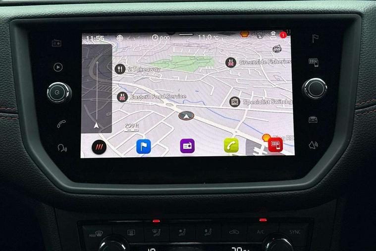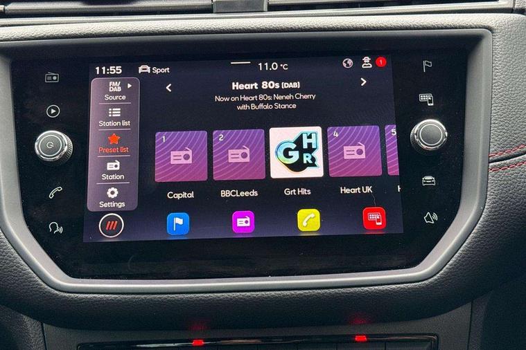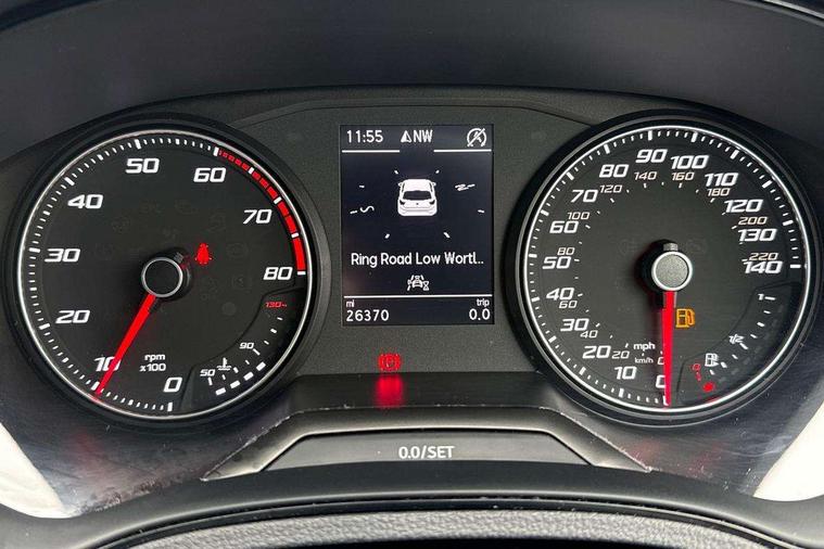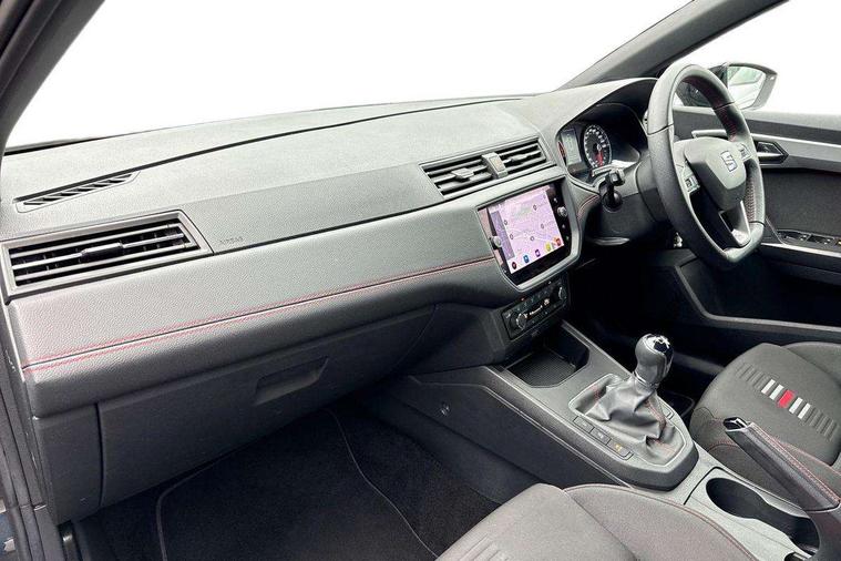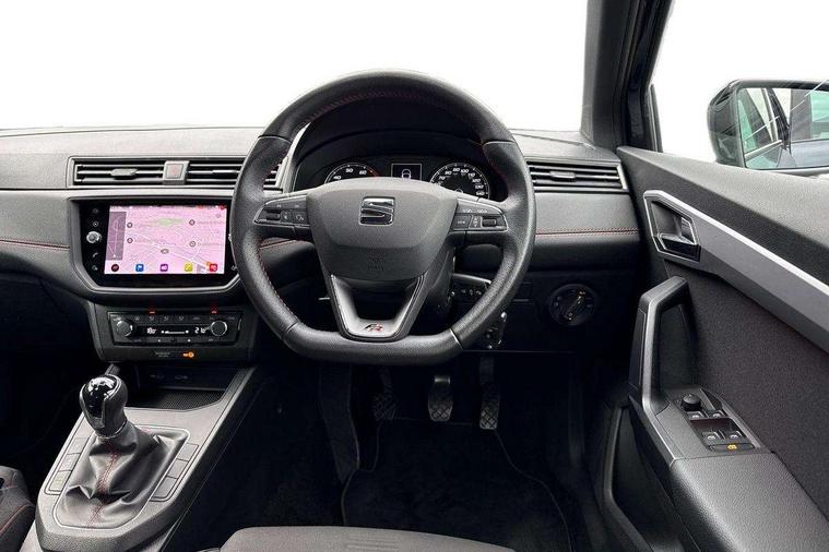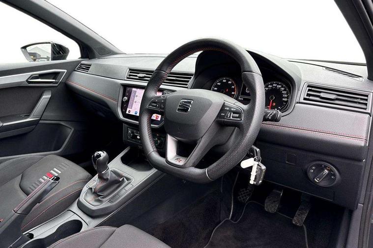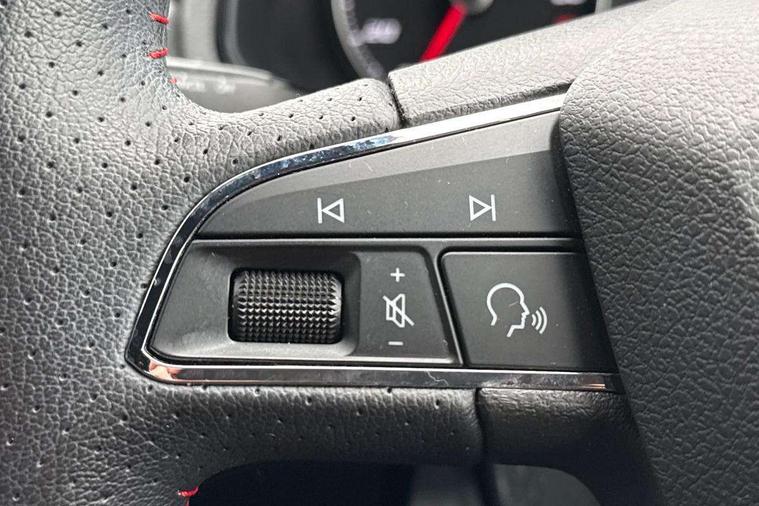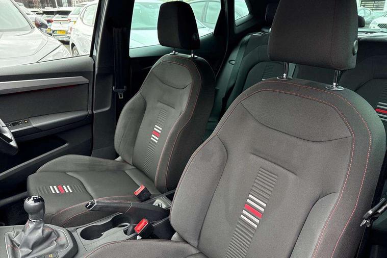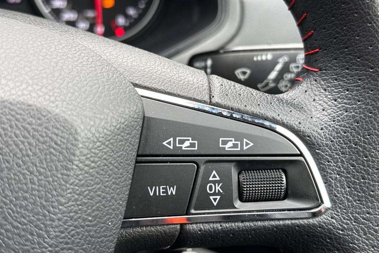'Lights On' Reminder warning buzzer, Bluetooth audio streaming with handsfree system, Cruise control, Digital clock, Full Link Smartphone Integration with Mirror Link, Apple Car Play, Google Android Auto, Low fuel warning light, Navigation system with 8" touch screen + proximity sensor, voice control and USB type C sockets, Outside temperature gauge, Power Steering, Seat connect with safety, service, remote and online, SEAT Drive profile, SEAT logo boot release, Speed limiter, Trip computer, Sports suspension, 6 speakers, Auxiliary input socket, CD player, Digital Audio Broadcast (DAB) Tuner, Radio/MP3 player, SD card slot, Steering wheel mounted controls, USB (type C) cable for Apple and Android compatibility, Anti theft roof antenna, Auto dimming rear view mirror, Automatic headlights, Automatic rain sensing wipers, Body colour bumpers, Body colour door handles, Brilliant black door mirrors, Brilliant black window surrounds, Chrome front grille frame, Coming/leaving home lighting function, Dark tinted rear windows, Electric folding door mirrors, Electric front windows, Electric headlight adjustment, Electric rear windows, Electrically adjustable and heated door mirrors, Exclusive FR rear bumper, Front/rear fog lights, LED daytime running lights, LED headlights with dynamic headlight range control, LED tail lights, Rear spoiler with twin exhausts, 60/40 split folding rear seat, Ambient interior lighting, Chrome detailing, pearl grey headlining and leather effect door trim panels, Driver's sunvisor with ticket holder/vanity mirror, Dual zone climate control with combination filter, Front courtesy lights, Front cupholders x 2, Front reading lights, Gear shift indicator, Glovebox, Height adjustable driver's seat, Height adjustable passenger seat, Height/reach adjust steering wheel, Illuminated boot, Instrument lighting with brightness control, Leather dashboard, Leather multifunction flat bottomed steering wheel with FR logo, leather gear knob and handbrake, Nora cloth upholstery, Passenger sunvisor, Rear top tether child seat ISOFIX attachment, Sports seats, Two height adjustable front and rear headrests (three in rear), 3 point seatbelts on all 3 rear seats, ABS, Active front headrests, Child locks on rear doors, Curtain airbags, Driver/Front Passenger airbags, ESP+EBA, Front assist (AEB), Front passenger airbag deactivation, Front side airbags, Hill hold control, Multi-Collision braking, Seat belt reminder for front and rear seats, Tiredness recognition system, Tyre pressure monitoring system, Anti theft wheel bolts, Electronic engine immobiliser, Perimeter alarm and interior monitoring with backup horn and tow away protection, Remote central locking + deadlocks, 17" Dynamic alloy wheels,