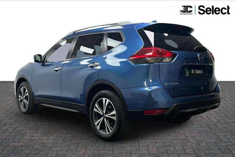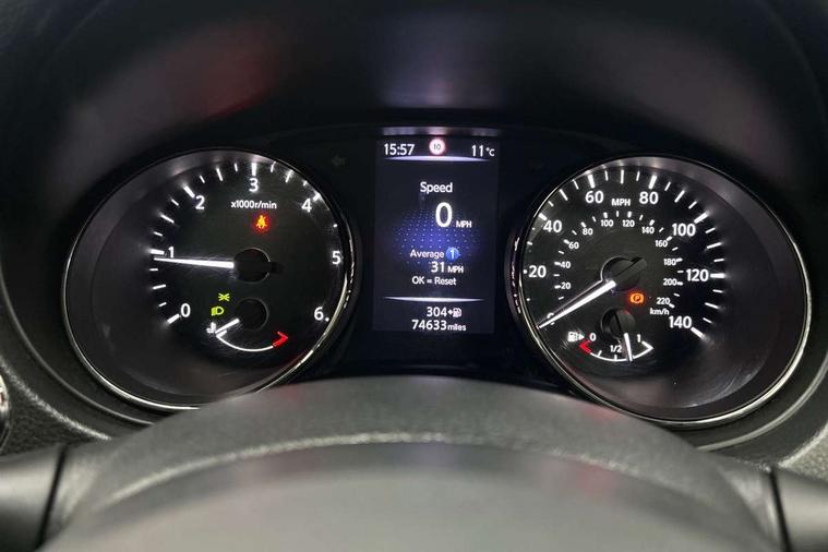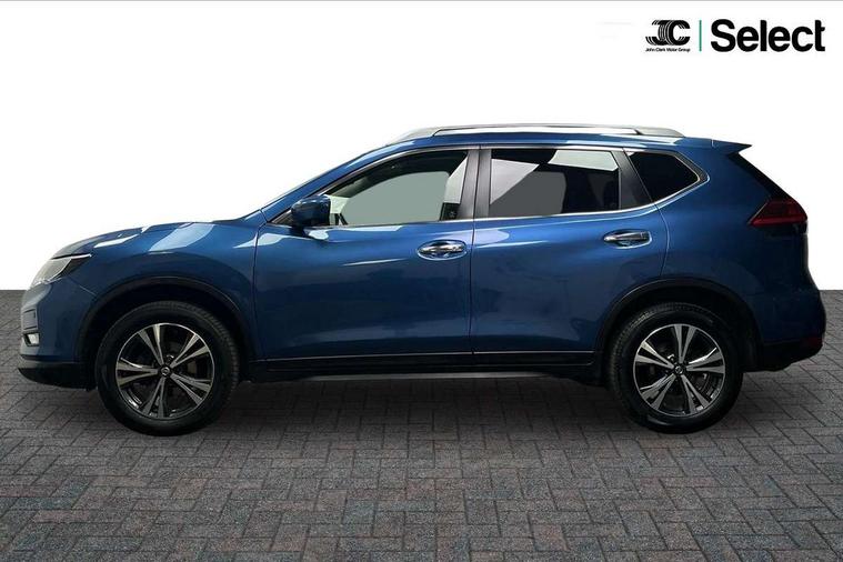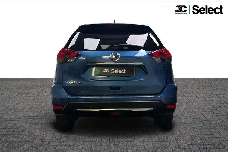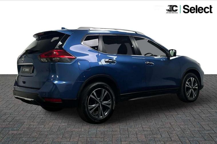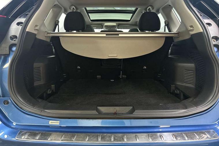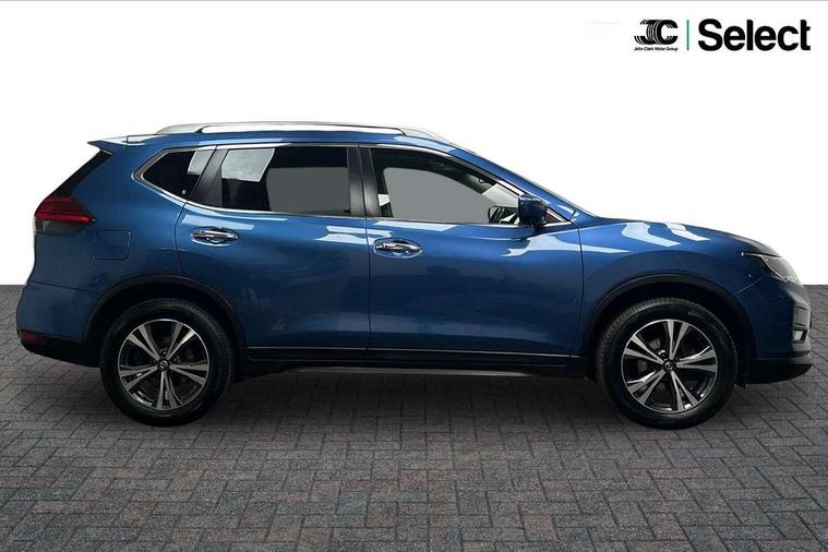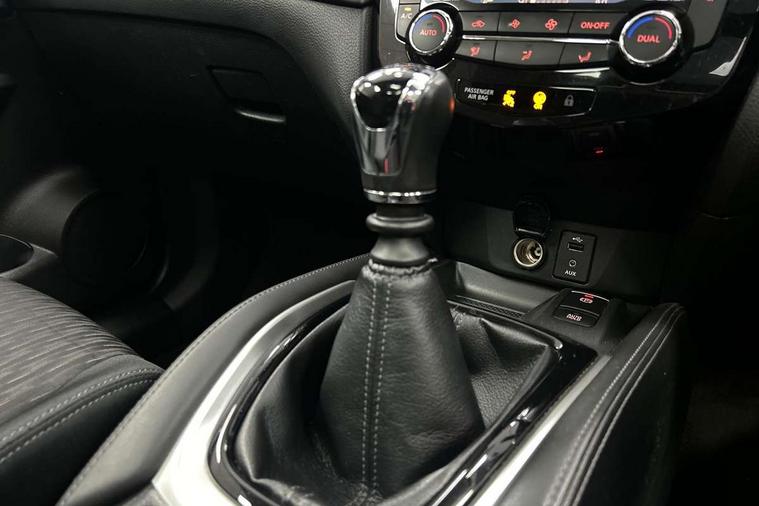 5" TFT driver information centre, Around View Monitor, Attention assist, Automatic tailgate opening, Bluetooth phone integration system, Cruise control + speed limiter, Engine start button, Front and rear parking sensors, Lane departure warning system, Nissan connect sat nav system, PAS, Traffic sign recognition, Trip computer, 6 speakers, Audio remote control in steering wheel, DAB Digital radio, Radio/CD, Smartphone apps, USB/aux input socket, Auto dimming rear view mirror, Automatic headlights, Automatic rain sensing wipers, Black honeycomb front grille, Body colour door mirrors, Chrome door handles, Chrome window surround, Electric folding door mirrors, Electric heated door mirrors, Front and rear power windows, Front fog lights, LED daytime running lights, Panoramic sunroof, Rear privacy glass, Satin silver roof rails, Shark fin roof aerial, 3 rear headrests, 60/40 split rear bench seat, Centre console storage box/armrest, Cloth upholstery, Configurable luggage board system, Dual zone climate control, Front and rear door pockets with bottle holders, Front cupholders, Height adjustable driver/front passenger seats, Height adjustable front headrests, Individual rear reading lights, Isofix child seat attachment, Leather steering wheel and gear knob, Lumbar support, Pollen filter, Rake/reach adjustable steering wheel, Rear armrest, Synthetic leather instrumental panel inserts, Synthetic leather knee pad, 3 point seatbelts on all seats, ABS, Child locks on rear doors, Driver and passenger airbags, EBD + Brake Assist, Electronic parking brake, ESP + traction control, First aid kit, Front and rear curtain airbags, Hill hold assist, Intelligent emergency braking with pedestrian recognition, Seatbelt warning, Tyre pressure monitoring system, Warning triangle, Alarm, Immobiliser, Intelligent Key, Remote central locking, Full size spare wheel,