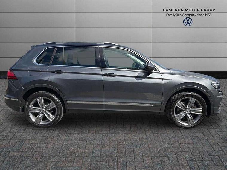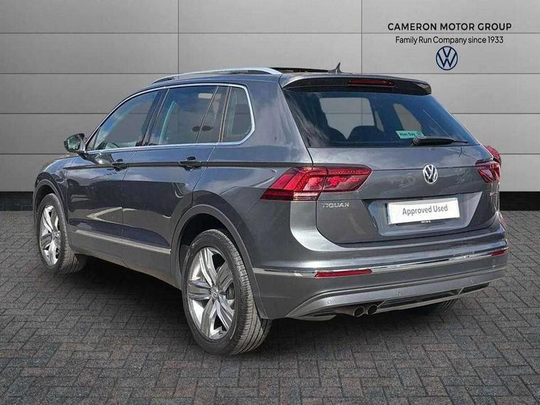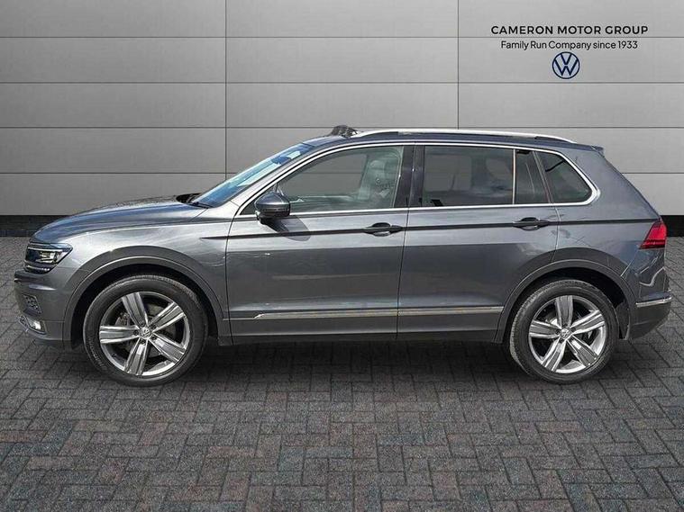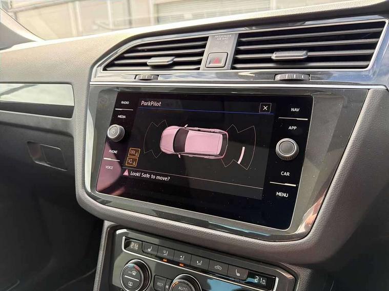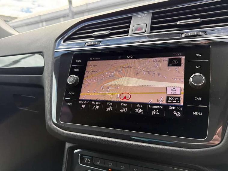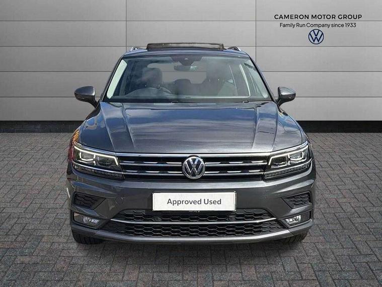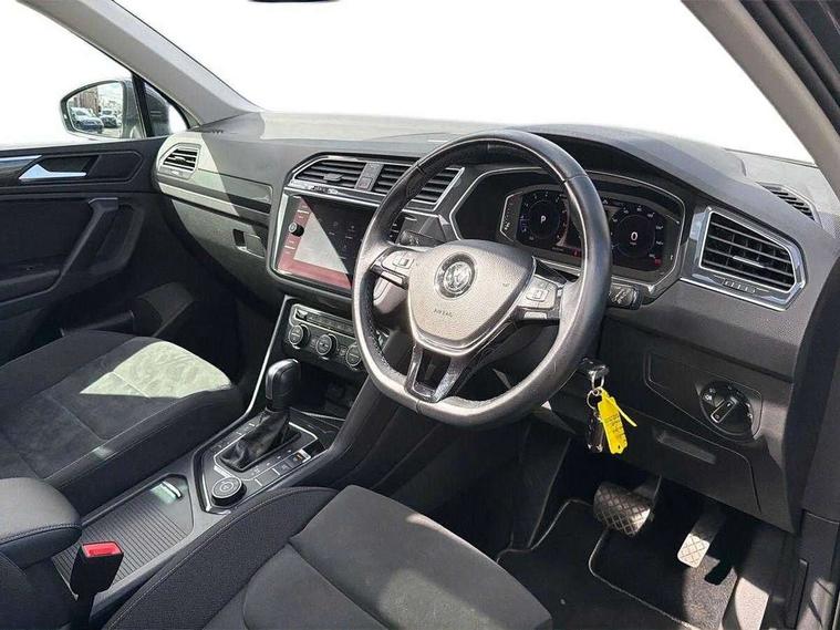 Active information display, Adaptive cruise control, App-Connect, Bluetooth phone integration system, Car-Net Security and Service, Coasting function, Distance control assist, Drive mode selector, Driver profile selection, Fatigue detection system, Front assist, radar sensor controlled distance monitor, city emergency braking + predictive pedestrian protection, Instrument cluster, Lane assist, Low washer fluid warning light, Outside temperature display, Service interval indicator, Speed limiter, Start/Stop function, Warning lights, Misfuel prevention device for diesel engine, XDS electronic differential lock, 2x USB sockets in front, 4 X 20 watt output, DAB Digital radio, SD card slot, Simultaneous pairing of 2 compatible mobile devices, SMS functionality - read, compose and send SMS messages using touch-screen display, Title and cover art display, 3D effect cherry red LED rear tail lights, Auto dimming interior mirror, Automatic activation of hazard warning lights, Black door protector with chrome inserts, Body colour door handles, Body colour door mirrors, Body coloured bumpers, Chrome side body trim, Chrome side window surrounds, Chrome trimmed radiator grille, Coming/leaving home lighting function, Dusk sensor + auto driving lights, Electric folding door mirrors, Electric heated + adjustable door mirrors, Electric panoramic sunroof with sunblind, Front air intake with chrome strip, Front and rear electric windows, Heated rear window, High level 3rd brake light, LED headlights with dynamic light assist daytime running lights and cornering front fog lights, LED rear number plate lights, Rain sensor windscreen wipers, Rear tinted glass from B-pillar backwards approx 65% tinted, Rear windscreen washer and wiper with interval delay, Side door sills with chrome inserts, Side skirts and rear bumper with chrome insert, Silver rear diffuser trim, Silver roof rails, Silver under body guard, Windscreen wipers/ intermittent wipe + 4 position delay, 12V Accessory socket in centre console, 3 rear headrests, 3 zone climate control, 4 load lashing points, 40:20:40 split folding rear seats, Bag hook in luggage compartment, Foldable passenger seatback, Front + rear carpet mats, Front centre armrest with 12v socket, Front centre armrest with storage + rear 2 air vents + cupholders, Front seat back storage pockets, Front seatback folding tables, Height/reach adjust steering wheel, Illuminated driver/passenger vanity mirrors, Illuminated scuff plates, Instrument lighting white adjustable panel illumination, Interior light with delay, Isofix Preparation 2 Rear child seats, Leather gear knob, Load through provision with 2 cupholders when folded, Lockable cooled glovebox, Luggage compartment lighting, Luggage compartment side storage, Map pockets on front seats, Passenger seat height adjuster, Passenger underseat drawer, Rear cupholders, Removable luggage cover, Sliding/reclining rear seats, Storage compartment in driver's door, Storage compartment in passenger's door, Storage compartment in rear doors, Storage tray on dashboard, Sunglasses storage, Variable boot floor, Ambient lighting pack - Tiguan, Winter pack - Tiguan/Tiguan Allspace, 3 rear 3 point seatbelts, ABS+EBD+Brake assist, Active bonnet, Active pedestrian safety system, Curtain airbags, Driver/Front Passenger airbags, Driver/Passenger whiplash optimised head restraints, Drivers knee airbag, DTC - Drag torque control, Electronic parking brake with auto hold, ESP with EDL + ASR, First aid kit, Front side airbags, Front ventilated disc brakes and rear disc brakes, Head airbag system, Height adjustable front 3 point seatbelts + pretensioners, Hill hold control, Passenger airbag deactivate switch, Passenger knee airbag, Proactive preventive occupant protection, Rear side airbags, Rigid safety cell with front and rear crumple zones, Seatbelt warning lamp and buzzer, Two tone horn, Warning triangle, Alarm with interior protection, Electronic engine immobiliser, Remote central locking with 2 remote folding keys, Chrome door trim inserts, Piano black interior trim,