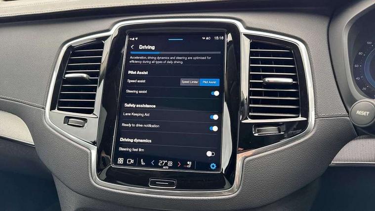 12.3" Progressive Driver Display, 360 degree surround view parking camera with side proximity sensors, 9" centre console portrait touch screen, Adjustable steering wheel force, Bluetooth hands free telephone connection, Driver alert control with lane keeping aid, Driver assistance (pilot assist and adaptive cruise control), Driver awareness - Blind spot information system with steer assist, cross traffic alert with autobrake and rear collision warning and mitigation, Emergency call service, Front and rear park assist, Google Automotive Services - Navigation with Voice recoginition and google assistant, Handsfree power tailgate opening and closing, Oncoming Lane Mitigation, Power operated tailgate, Service interval indicator, Speed limiter, Speed sensitive steering, Trip computer, Volvo on call, Wireless Mobile Phone Charger, 8 speed automatic transmission with start/stop + manual change functions, Touring chassis, DAB Radio (Digital Audio Broadcasting), Premium Sound by Harman Kardon, dirac unison, dolby pro logic II surround sound, 13 speakers/600W output and fresh air subwoofer, Steering wheel remote infotainment controls, Active bending headlights with adaptive shadow technology, Adaptive brake lights with high level LED brake lights, Auto dimming interior + exterior mirrors, Auto folding and heated power door mirrors, Automatic headlight levelling system, Automatic LED Headlights + Active high beam incorporating daytime running lights, Body colour bumpers, Front and rear power windows, Headlight cleaning system, Heated front windscreen, High gloss black door mirrors and window surround, High gloss black front and rear bumper deco, High gloss black mesh front grille with surround, Home safe and approach lighting, Integrated roof rails in high gloss black, LED front fog lights with cornering light function, Power glass tilt and slide panoramic sunroof with sun curtain, Puddle lights, Rain sensor with automatic windscreen wiper activation, Rear side wing doors, Rear wash/wipe with intermittent wipe setting, Roof antenna, Roof spoiler, Visible VIN plate, 12V socket front tunnel console, rear passenger compartment and cargo area, 2 seat bench in 3rd row, 2nd Row centre armrest with and cupholders, 3 seat bench in 2nd row, 4 zone electronic climate control with Clean zone air quality system + pollen filter, A-pillar parking ticket holder, Advanced interior air cleaner PM2.5, Air conditioning for 3rd row of seats, Ambient door and instrument panel lighting, B Pillar ventilation, Bright metal luggage threshold, Centre console cupholders and storage, Floor mats, Front and rear door pocket and front cupholder illumination, Front and rear reading lights, Theatre lighting and centre armrest storage illumination, Front footwell and side step illumination, Front headrests, Front seat cushion extensions, Heated front seats, Heated rear seats, Heated steering wheel, Height/reach adjustable steering column, Illuminated front and rear tread plates, Illuminated luggage compartment, Illuminated tailgate, Illuminated vanity mirrors + ticket holder, Illumination lockable glovebox compartment, Integrated sun curtains in rear doors, Isofix outer rear child seat preparation in 2nd row, Load protection net, Luggage compartment divider with grocery bag holder, Outboard armrest with cupholder and storage for third row passengers, Power driver seat with multi directional lumbar support and memory for seat and exterior mirrors, Power folding 2nd row headrests, Power passenger seat with multi directional lumbar support and memory, Rear footwell and side step illumination, Rear headrests, Semi automatic load cover, Single front passenger seat, Underfloor luggage compartment storage, 7 three point seatbelts, City safety with steering support includes pedestrian, cyclist and large animal detection and front collision warning with full auto brake, Drivers knee airbag, Dual stage driver/passenger airbags, First aid kit, Front seats SIPS airbags, Hill descent control - off drive mode, Hill start assist, IC (Inflatable Curtains) - Full Length, Passenger airbag cut-off switch, Power child locks on rear doors, Power parking brake with auto hold function, Road sign information display, Run off Road Mitigation, Run off Road Protection, Seatbelt reminder and pretensioners for all seats, SIPS (Side Impact Protection System), Slippery road and hazard light alert, Stability and Traction Control with Spin control, Engine Drag Control and Corner Traction Control, Tyre pressure monitoring system, Vehicle deceleration control with Anti-lock Brake System, Electronic Brake Distribution and Emergency Brake Assist, Warning triangle, WHIPS whiplash protection system - front, Anti-theft alarm including immobiliser/volume sensor + level sensor, Care key with user defined top speed, Key integrated remote control central locking + fuel flap with deadlocking system and auto open/close power windows, Keyless drive includes keyless entry and keyless start, Locking wheel nuts, Private locking for glovebox and tailgate, Tailored Instrument Panel and Door Tops with Contrast Stitching, Tempa spare wheel and jack,