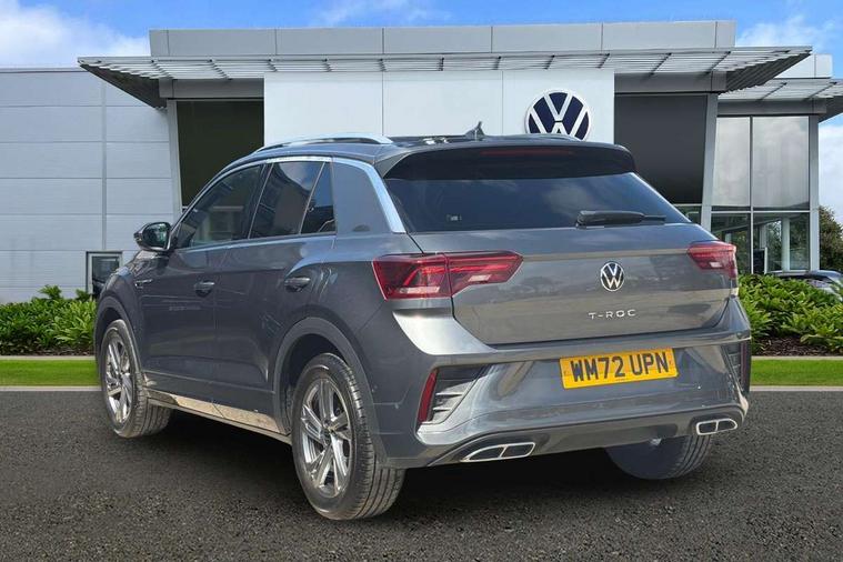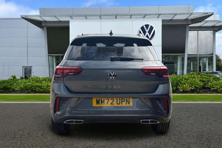 10.25" Digital cockpit pro, Bluetooth mobile phone interface, Driver alert system with fatigue detection, Driver tips and journey analysis, Emergency call service, Lane keeping system Lane Assist, Modified key software - reduce switch off time for key status change to Long no motion, Online services, Park assist including front and rear parking sensors, Service interval indicator, Tailgate/trunk lid release from outside, Think blue trainer driver tips and journey analysis, Warning sound and light for front seatbelts unfastened, Wireless app connect, Battery regeneration during braking, Start/stop function with battery regeneration, Diversity antenna for FM reception, Front and rear 6 speakers, Music playback - MP3, WMA and AAC files, Premium USB cable in choice of either Apple or Android smartphone compatibility, SD card slot, Simultaneous pairing of 2 compatible mobile devices, Title and cover art display, We Connect and We Connect Plus functionality, 3rd brake light, Auto dimming interior rear view mirror, Automatic hazard lights activation under emergency braking, Automatic headlight control with LED separate daytime running lights with coming/leaving home function, Extended roof spoiler, Exterior mirrors aspherical on driver side, convex on front passenger side, External USB type C socket and charging sockets, Front windscreen wiper with intermittent wipe and 4 position delay, Heated rear window, LED Plus headlamps, LED rear combination lamps, LED rear number plate lights, LED tail lamp rear comination lamps, Power windows with comfort operation and circuit breaker, R-Line design body coloured bumpers, Rain sensor, Rear exhaust tailpipe, Rear fog light on one side and reversing lights on both sides, Rear side wing doors, Rear wash/wipe with intermittent wipe setting, Remote electrically foldable door mirrors, puddle lights and reverse activated passenger's door mirror, 12V power socket in centre console, 3 rear head restraints, 3 seat bench in 2nd row, 4 load lashing points in luggage compartment, Air care climatronic air conditoning system with active combination filter and 2-zone temperature control, Black roof lining, Chrome plated radiator grille inserts, air vent surrounds and light switch surrounds, Door and side trim panel with leatherette insert, Drawer under drivers seat, Front + rear carpet mats, Front centre armrest, Front cupholders x 2, Front footwell illumination, Front reading light, Front scuff plates with R logo, Instrument lighting, white adjustable panel illumination, Interior ambient lighting and surround lighting, Interior light delay, Isofix child seat preparation, Leather gearshift handle, Load-through provision with cup holder when folded down ('Unsplit rear seat bench, split folding backrest, with centre armrest), Luggage compartment lighting, Single front passenger seat, Stainless steel pedals, Storage compartment in left and right luggage area, Storage compartment in rear doors, Storage compartments in driver and front passenger doors, Sunvisors with illuminated vanity mirrors, Variable boot floor, height adjustable and removable, Driver assistance pack without proactive passenger protection - T-Roc, 3 point height adj front seatbelts + pretensioners, 3 point seatbelts in outer rear with ECE label, ABS, Child locks on rear doors, Driver and front passenger airbag with front passenger airbag deactivation, Driver and front passenger safety-optimised head restraints, Drivers seatbelt reminder, Electronic parking brake, Electronic Stability Control (ESC) inc EDL (Electronic Differential Lock) and ASR (Traction Control), Front and rear passengers curtain airbag system including front side airbags, Front assist with city emergency braking and pedestrian monitoring, Front seat side impact airbags, Hill start assist, Predictive pedestrian protection, Rear disc brakes, Single tone horn, Tyre pressure loss indicator, Volkswagen roadside assistance, Alarm with interior protection, Anti-theft alarm system with interior monitoring, backup horn, and towing protection, Remote central locking with SAFELOCK, radio remote control with 2 remote control folding keys, Trims for alloy wheels,