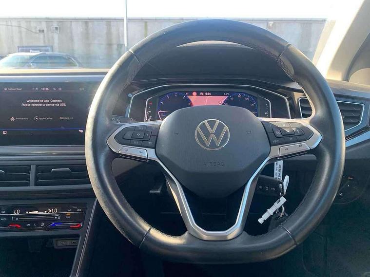 Adaptive cruise control without follow-to-stop and speed limiter, Bluetooth mobile phone interface, Digital Cockpit Pro with 10.25" Display, Driver alert system, Dynamic road sign display, Emergency call service, Power assisted speed sensitive steering, Preparation for We connect and We connect plus, Speedo and rev counter, electronic odometer, trip, service interval display and fuel gauge, Standard rear axle, Travel Assist - Lane keeping system and traffic jam assist, Travel assist including emergency assist, Trip computer, Warning signal and warning light for front and rear seatbelts not fastened, Washer fluid level indicator, Wireless app connect, Front wheel drive, Rear shock absorpion, Start-stop system with battery regeneration (recuperation - energy recovery during braking), DAB Digital radio, Diversity antenna for FM reception, Front and rear 6 speakers, Automatic dimming interior rear view mirror, Automatic headlights, Body colour door handles, Body coloured bumpers and radiator grille with chrome trims, Electric front windows, Heat insulating darkened glass in side and rear windows, Heat insulating glass windscreen, LED separate daytime running lights with coming/leaving home function, Power folding adjustable/heated exterior mirrors and front passenger exterior mirror lowering function, Rain sensor, Rear electric windows, Rear fog light, Rear side wing doors, Rear windscreen washer and wiper with interval delay, Third brake light, 12V power socket in centre console, 2 USB-C ports in the front, 2 USB-C charging sockets on the center console in the rear, 3 rear head restraints, 60/40 split folding rear seat and rear seat bench not split, Air care climatronic air conditoning system with active combination filter and 2-zone temperature control, Ambient lighting, Ceramique headliner, Chrome plated radiator grille inserts, air vent surrounds and light switch surrounds, Door and side trim panel, Driver and front passenger seat height adjustment, Driver/passenger sunvisors with illuminated vanity mirrors, Front + rear carpet mats, Front centre armrest, Front footwell illumination, Front seat backrest storage pockets, Front sports comfort seats, Handbrake lever handle in leather, Isofix child seat preparation easy-fit (for two outer rear seats, and front passenger seat) compatible with I-size, Leather trimmed gear knob, LED interior light with switch off delay and dimmer, 2 reading lights front and rear, Luggage compartment cover, Luggage compartment floor, Luggage compartment lighting, Lumbar adjustment for front seats, Multifunction steering wheel, Single front passenger seat, Standard pedal cluster, IQ LED matrix headlights pack - Polo, Light and vision pack - Polo, 3 point height adj front seatbelts + pretensioners, 3x3 point rear seatbelts, ABS, Driver and front passenger airbag with front passenger airbag deactivation, Drivers and front passengers safety optimised head restraints, ESC (Electronic stability control) + EDL (Electronic Differntial lock) and ASR (Traction control), Extended and predictive pedestrian/ cyclist protection, Front curtain and side airbags with center airbag, Front disc brakes, Hill hold control, Manual child lock in rear doors, Rear drum brakes, Single tone horn, Tyre pressure loss indicator, Alarm with interior protection, Anti-theft alarm system with interior monitoring, backup horn, and towing protection, Anti-theft wheel bolts, Electronic engine immobiliser, Chrome applications on rotary light, mirror adjustment, window regulator switches, outlet with frame in black, Deep iron gloss decorative inserts in dash and front door panels, Low rolling resistance tyres,