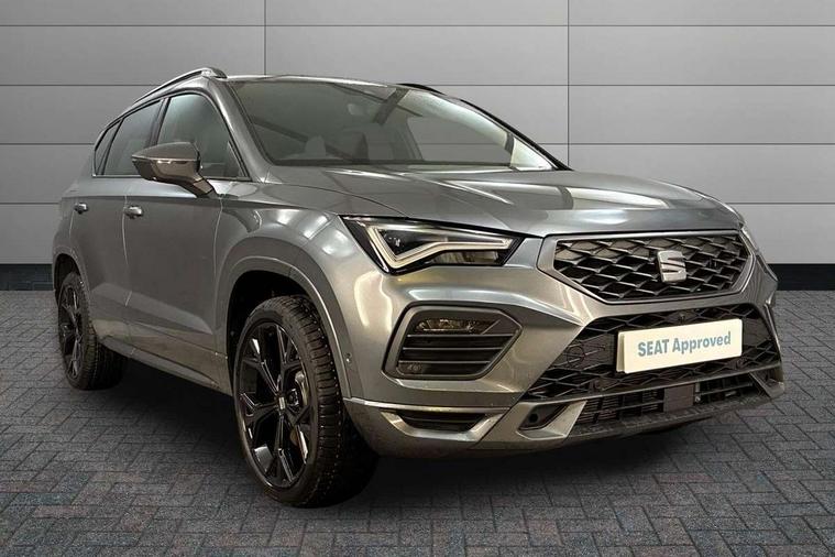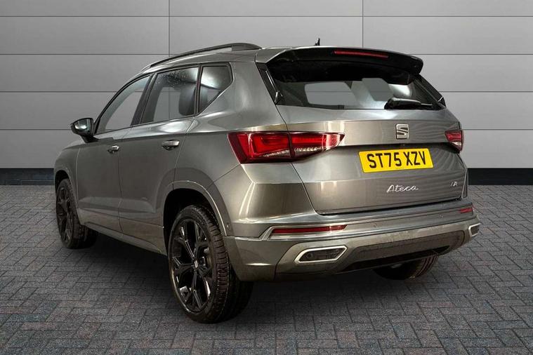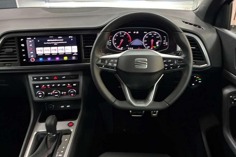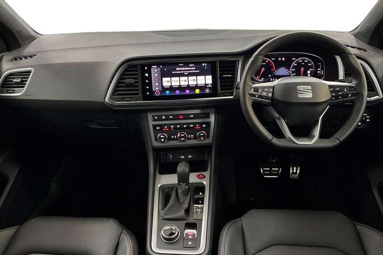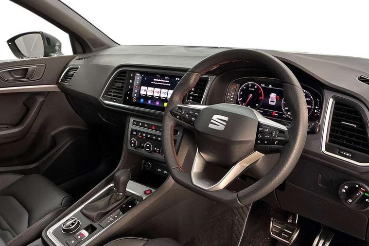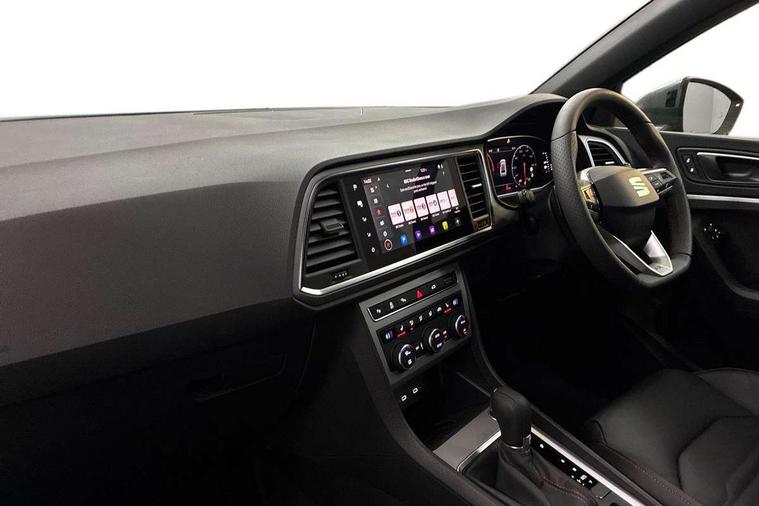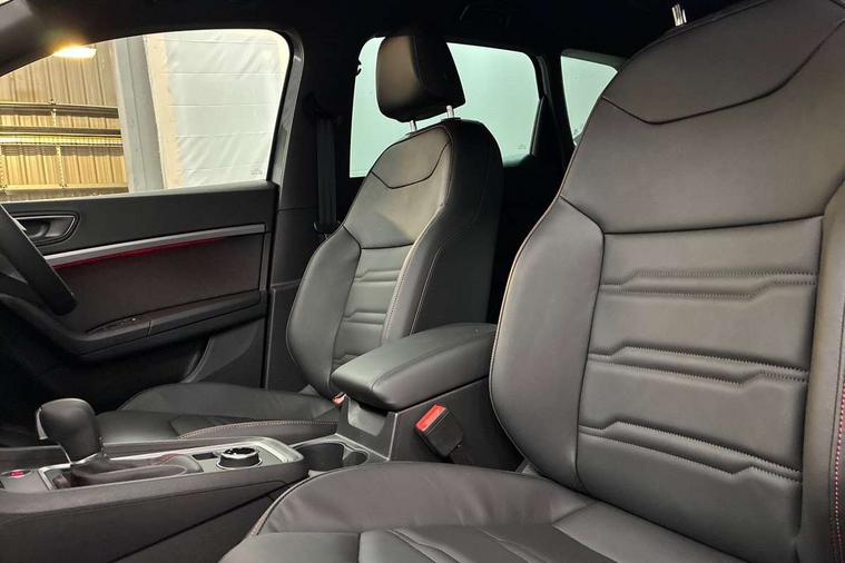 10" Digital cockpit, Bluetooth audio streaming with handsfree system, E-call, Electric tailgate with virtual pedal, Outside temperature gauge, Progressive power assisted steering, SEAT drive profile with driving experience button - Normal, Sport, Eco and Individual mode, gearshift, steering and throttle response, Self parking functionality (includes front and rear parking sensors), Speed limiter, Start/stop system, Top view camera with rear view camera, Trip computer, wired and wireless full link smartphone integration, Wireless phone charger, Steering wheel mounted audio/phone controls, Black roof rails, Black side window trim, Body colour bumpers, Body coloured wheel arch surrounds, Chrome front grille frame, Dark tinted rear windows, Daytime running lights, Door mirrors with welcome light silhouette, Dynamic headlight range control with self adjusting whilst driving, Electric adjustable/heated/folding door mirrors, Front and rear electric windows, Illuminated aluminium front door sill, LED 3rd brake light, LED headlamps with lens and LED front fog lamps with cornering function, LED rear tail lights with dynamic indicators, Rear exhaust tailpipe, Rear fog lights, Rear side wing doors, Rear spoiler, Rear wash/wipe, Variable front intermittent wipers, 12V socket in front, 3 seat bench in 2nd row, 60/40 split folding rear seat, Aluminium pedals, Black greenhouse interior roof, Dual zone climate control, Electric adjustable driver seat with memory function, Front and rear head restraints, Front centre armrest, Front seat back storage pockets, Heated front seats, Height adjustable passenger seats with lumbar adjustment, ISOFIX points in outer rear seats with top tether anchorage points, Leather sports steering wheel and gear knob, Leather upholstery with front comfort seats, Rear armrest and easy back seat release mechanism from boot, Single front passenger seat, Steering wheel mounted gearshift paddles, Convenience pack - Ateca, Interior lighting pack - Ateca, Navigation system pack with DAB - Ateca, Safety and driving pack (L) - Ateca, Safety and driving pack with attention and drowsiness assist - Ateca, 3x3 point rear seatbelts, ABS, Traction control system (TCS), Electronic stability control (ESC) and Electronic differential lock system (XDS), Airbags - Driver and front passenger airbag with deactivation, front side, two curtain and driver's knee airbags, Electric parking brake with auto hold function, Front and rear seatbelt reminder, Hill hold control, Manual rear child locks, Single tone horn, Tyre pressure monitoring system, Alarm, Keyless entry, Locking wheel bolts, Remote central locking, Chrome interior detailing, 19" Exclusive alloy whelels 36/10 in glossy black, Tool kit,
