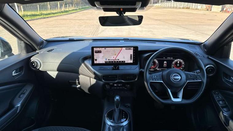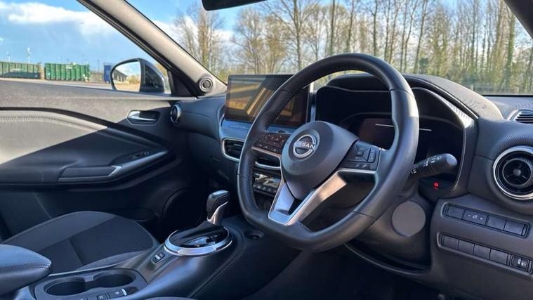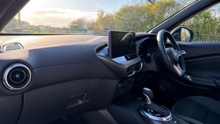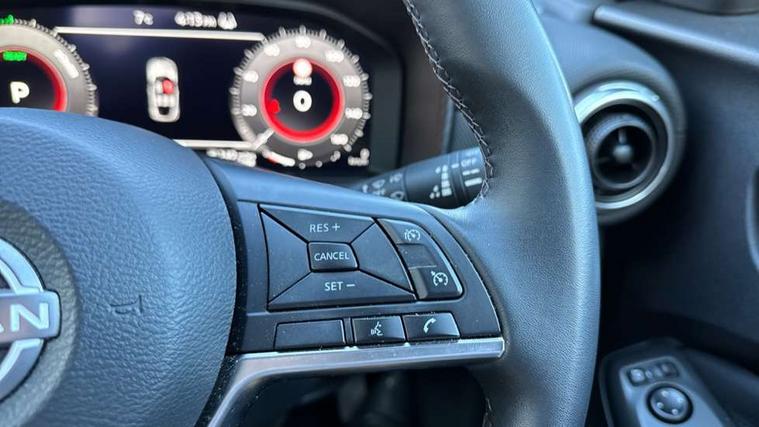 12.3" full colour TFT screen combimeter, Drive modes select (Eco, normal and sport), e-Pedal step, Emergency and breakdown call, EV mode switch, Front parking sensor, Intelligent driver alert system, Intelligent lane intervention, Lane departure warning system, Nissan connect 12.3" touch screen entertainment system, Nissan connect nav with TomTom traffic, Nissan connect services, Outside temperature sensor, Power Steering, Rear parking sensor, Stop/start button, Traffic sign recognition, Trip computer, Voice recognition, WiFi connectivity, Wireless Apple CarPlay and Google Android auto, Wireless Smartphone charger, 2 X Rear console USB port, 6 speakers, Bluetooth system, USB, Aux-in and 12V socket, DAB Digital radio, Auto dimming frameless rear view mirror, Automatic hazard signal with emergency stop signal, Body colour door handles, Electrically adjustable door mirrors with integrated indicators, Follow me home headlights, Front and rear electric window with one touch driver window, Heated and auto folding door mirrors, High beam assist, LED 3rd brake light, LED daytime running lights, LED headlamps, LED rear fog lamp, LED rear lamps, One touch passenger window, Rain sensor windscreen wipers, Rear privacy glass, Rear side wing doors, Rear wiper, Roof spoiler, Shark fin roof antenna in solid Black, Three blink turn signal, 3 height adjustable rear headrests, 3 seat bench in 2nd row, 60/40 split folding rear seat, Automatic climate control, Card holder on driver sunvisor, Cloth/Synthetic leather with melange fabric inserts, Driver side rear coat hanger, Driver/passenger sunvisors and vanity mirrors, Front and rear cabin lights, Front armrest, Front door pockets with bottle holders, Front head restraints, Front/rear passenger grab handles, Height adjustable driver's seat, Internal chrome door handles, Leather gearshift knob, Luggage board, Luggage space lighting, Monoform sporty seats, Multifunction steering wheel, Rear door bottle holders, Single front passenger seat, Smooth synthetic leather steering wheel, Synthetic leather kneepad, Telescopic steering wheel adjustment, Two cupholders in front centre console, Two rear isofix child seat anchorage points with top tether, Welcome light and console tray ambient lighting, ABS with EBD and brake assist, Active ride control, Active Trace Control, Driver and passenger airbags, Driver and passenger side airbags, Electric handbrake with auto hold function, Electronic Stability Programme (ESP), Front and rear curtain airbags, Height adjustable seatbelts, Hill start assist, Intelligent emergency braking with pedestrian and cyclist recognition, Rear door child safety locks, Seatbelt reminder for driver/front passenger and rear seats, Three 3 point rear seatbelts, Traction control, Tyre pressure monitoring system, VDC Dynamic Vehicle Control, Alarm, Immobiliser, Intelligent key and start push button with walk away lock and approach unlock functions, Remote central locking, 17" Alloy wheels, Tyre puncture repair kit,