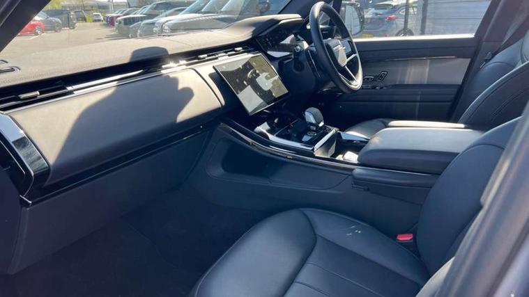 13.1" Touchscreen, 3D 360 degree surround camera with wade sensing, Adaptive cruise control with steering assist, Android Auto, Apple car play, Blind spot assist, Bluetooth connectivity streaming, Driver condition response, Eco mode, Front and rear parking aid, Interactive Driver display instrument cluster, Lane departure warning system, Lane keep assist, Push button start, Rear collision monitor, Rear traffic monitor, Remote, Traffic sign recognition with adaptive speed limiter, Trip computer, Wireless device charging, 8 speed automatic transmission, Adaptive dynamics, All wheel drive system, Automatic access height, Home charging cable, Public charging cable, Terrain Response 2, Twin speed transfer box, DAB Radio (Digital Audio Broadcasting), Incontrol protect - SOS emergency call with automatic collision detection, optimised assistance call and Incontrol remote app essential, Pivi pro connected, USB/aux input socket, Adaptive brake lights, Automatic headlight levelling, Automatic headlights, Centre high mounted stop light, Electric heated/power fold memory door mirrors with approach lights and auto dimming driver side, Electric windows with one touch open/close and anti trap, Flush deployable exterior door handles, Follow me home lighting, Front and rear recovery eyes, Headlight power wash, Heated rear window, Heated washer jets, Heated windscreen, Illuminated aluminium treadplates with Range Rover script, Integrated twin tailpipes, LED tail lights, Metal load space scuff plates, No badges, Rain sensing windscreen wipers, Rear animated directional indicators, Rear fog lights, Rear side wing doors, Rear wash/wipe, Remote window closing, Side repeater indicators in mirror, Trailer stability assist, Winter wiper park position, 3 seat bench in 2nd row, 60:40 seats with power recline and loadthrough, Air quality sensor, Automatic air recirculation system, Bright metal foot pedals, Centre console with armrest, Customer configurable single point entry, Driver's footrest, Easy boot loading, Ebony console door armrests and seatbelts, Electric adjustable steering column, Front and rear cupholders, Front door storage space, Front head restraints, Front map lights, Front seat back map pockets, Front stowage pocket, Front/rear passenger grab handles, Gearshift paddles, Heated steering wheel, Isofix child seat preparation, Loadspace cover, Loadspace Hook, Loadspace light, Loadspace mounting provisions, Lockable glovebox, Luggage tie-downs in loadspace, Multifunction steering wheel, Pollen filter, Power socket, Rear centre armrest, Rear head restraints, Rear ISOFIX, Single front passenger seat, Three 12V accessory power outlets, Upper secondary glovebox, Online pack with data plan - Range Rover Sport, 3 point seatbelts on all seats, Anti-lock braking system (ABS), Brake pre-fill technology, Configurable autolock, Cornering brake control (CBC), DSC - Dynamic Stability Control, EBD - Electronic brakeforce distribution, Electric parking brake, Electronic traction control, Emergency braking, Front seatbelt pretensioners, Front side airbags, Height adjustable front seatbelts, Hill descent control, Hill launch assist, Low traction launch, Occupant protection assist, Passenger seat occupant detector with front airbags, Power operated child locks, Roll stability control, Seatbelt warning, TPMS (Tyre pressure monitoring system), Immobiliser, Intrusion sensor, Keyless entry, Locking wheel nuts, Perimetric and volumetric anti theft alarm, Remote locking,