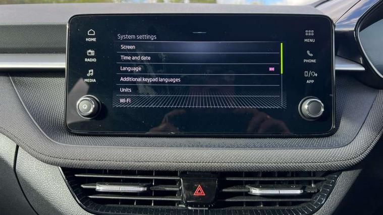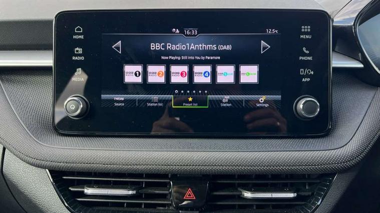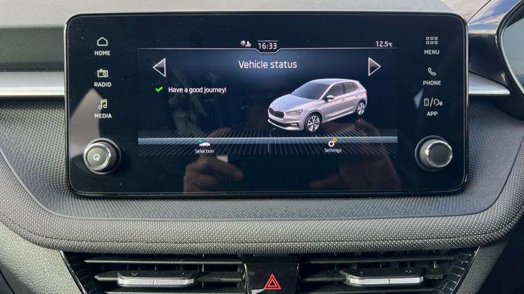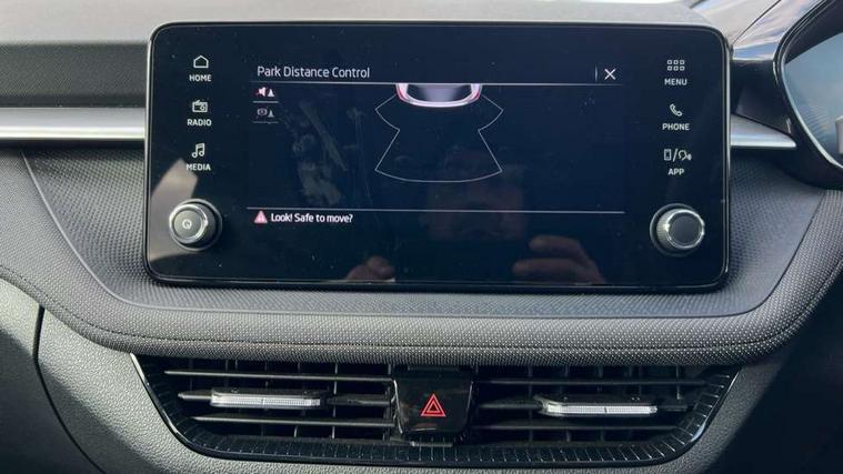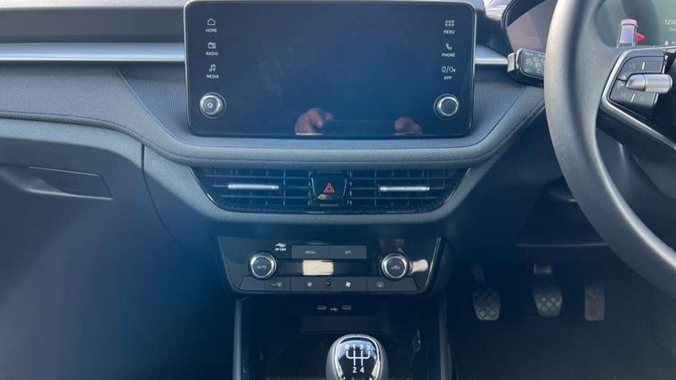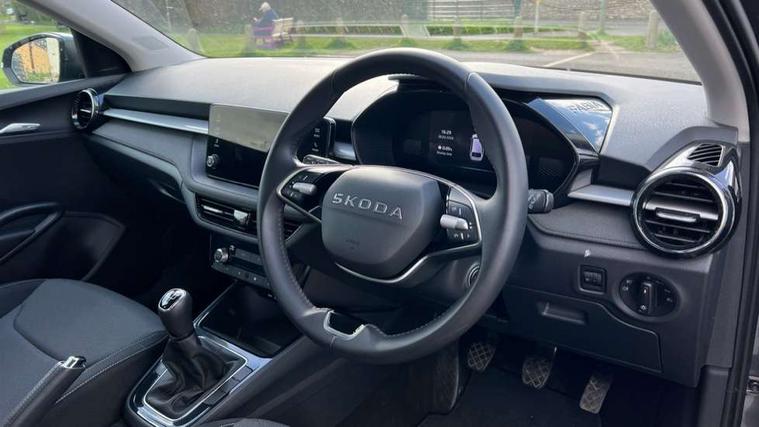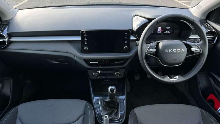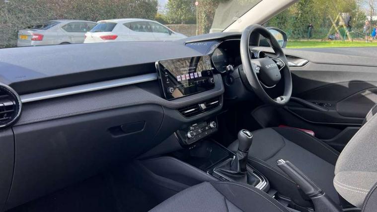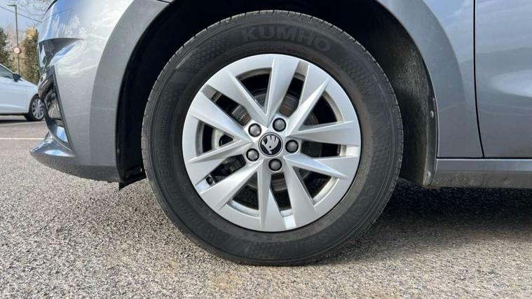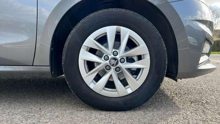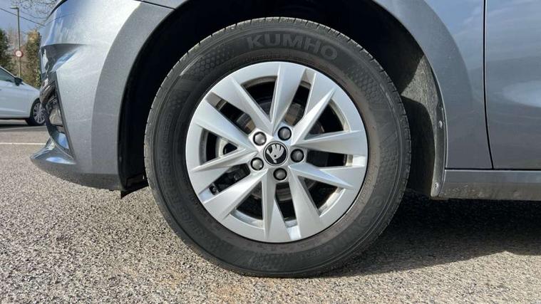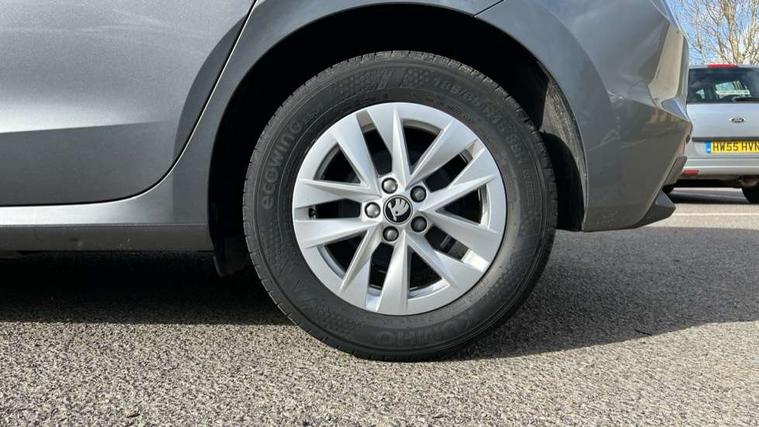 8" Digital instrument display, Advanced driver attention and drowsiness monitor, Bluetooth connection, Electromechanical power steering, Exterior temperature gauge, Service interval indicator, Traffic sign recognition, Wireless SmartLink for Apple CarPlay and Android Auto, 6 Speakers (4 in front and 2 in rear), 8.25" Skoda infotainment touchscreen display, Auxiliary socket for external MP3 player, DAB digital radio reception, Auto dimming rear view mirror, Body colour door mirrors, Body coloured bumpers, Door mirror integrated indicators, Front and rear electric windows, Front window wiper intermittent control, Headlight range control - Automatic, Ice scraper in fuel cap, LED 3rd brake light, LED daytime running lights with coming and leaving home feature, LED rear lights, Rear LED fog light, Rear side wing doors, Rear window wiper with washing nozzles, Roof mounted spoiler, SKODA tailgate lettering in chrome, Unique dark chrome design logo on alloy wheels, 2 reading lights in front and 2 reading lights in rear, 3 rear headrests, Backrest split and folding, Central console with removable cup holder and storage box, Chrome handbrake release button, Dual zone air conditioning with climatronic electronic control, Fabric upholstery, Front centre armrest, Gearshift knob/handle in leather, Grain satin black interior door handles, Hand brake lever handle in leather, Height adjustable front headrests, Height adjustable front seats, Height adjustable steering wheel, ISOFIX and TopTether anchorage points to the outer rear seats, ISOFIX and TopTether on the front passenger seat, Luggage compartment lighting, Manually adjustable lumbar support in front seats, Pollen filter, Rear seat bench unsplit, Single front passenger seat, Skoda lettering on steering wheel, Storm grey headlining, Sun visors with mirror and airbag label on passenger side, Textile floor mats, Ticket holder, Umbrella in drivers door, 3-point height adjustable front seats belts with pretensioner and force limiter, Automatic warning lights in case of crash, Driver and passengers airbag with switch off function, e-Call+, ESC including ABS, MSR, ASR, EDS, HBA and XDS, Front and rear seat belt warning, FRONT ASSIST (AEB City and AEB Inter Urban), Front side airbags, Head airbags, One tone horn, Pedestrian protection, Three rear 3-points safety seat belts with pretensioner and force limiter including stop function for outer rear seat belts, Tyre pressure monitoring system, Anti-theft alarm system including immobiliser, interior monitoring, backup horn, and towing protection, Central locking with radio remote control, interior controls, SAFE function and 2 foldable keys, Black painted air vents, Grain satin black central console cover, Metallic grey upper decorative trim, Satin black door and side trim panel in front, Textile Kota grey lower decorative inserts, Anti-theft wheel bolts protection, Super-low rolling resistance tyres,