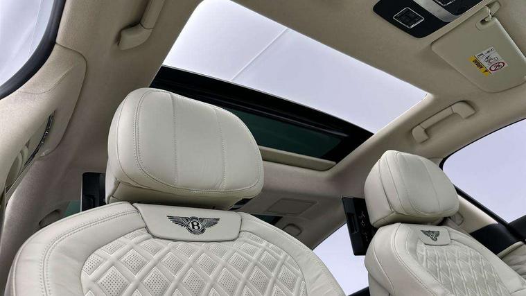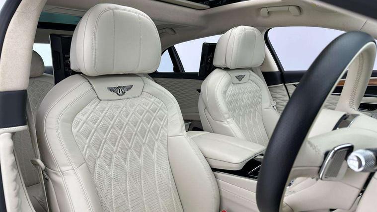 4G LTE telephone module, Adaptive cruise control, Apple car play, Bentley safeguard plus, Blind spot assist, Bluetooth telephone connectivity, Car computer, City assist, Continuous damping control, Emergency services call system, Engine start/stop button, Front/rear park distance control, Hands free boot opening, Head up Display, Inductive phone charger, Infotainment system/satellite navigation, Lane assist, Night vision, Power latching to all doors for easy entry, Rear cross traffic alert, Speed sensitive power steering, Telephone voice dialling, Top view camera, Traffic assist, Traffic sign recognition, Anti roll bar front and rear, Battery charger, Wi-Fi hot spot, 3rd brake light, Acoustic glass, Adaptive brake lights, Auto dimming door mirrors, Automatic headlamps, Azure exterior fender badges, Azure fascia badge, Azure treadplates, Bentley 'jewel' fuel filler cap, Body colour door mirrors, Body coloured bumpers, Bright chromed matrix style grille to radshell and lower bumper apertures, Elec/heat/adj/fold door mirror+memory, Electric front windows, Front fog lights, Full LED Matrix headlamps with high-beam assist, Hidden antennae, LED daytime running lights, Panoramic glass tilt and slide sunroof with twin blinds and vanity mirrors, Rain sensor windscreen wipers, Rear boot, Rear diffuser, Rear electric windows, Rear side wing doors, 14 way Elec adj front seats/memory/lumbar control, 4 seats, Air Ioniser, Azure seat emblems, Bentley keybox, Door lights, Easy entry/electrically adj steering column+memory, Electric rear window sunblinds, Footwell illumination, Front head restraints, Full hide trim upholstery, Full length centre console, Illuminated centre console storage, Isofix attachments on rear seats, Multi-zone automatic climate control, Rear centre armrest with 2 cupholders + storage, Rear headrests, City specification pack - Flying Spur, Colour specification pack - Flying Spur V8, Comfort specification pack - Flying spur, Diamond quilting specification pack, Leather specification with diamond quilting pack - Flying spur, Mood Lighting Specification pack - Flying spur V8, 2 rear seatbelts, ABS/EBD, Child safety lock, Driver/front passenger airbag, Drivers knee airbag, Electronic park brake with move-off assist, Electronic tyre pressure monitoring, ESP, Exit warning, Front and rear curtain airbags, Front and rear thorax airbag system, Front passenger airbag deactivation, HBA (Hydraulic Brake Assist), Motor Slip Regulation (MSR) - Engine Drag Torque Control, Pedestrian warning, Traction control, Anti-theft wheel bolts, Bentley GPS advanced tracking system, Immobiliser, Keyless entry, Keyless ignition, Preparation for vehicle tracking, Remote central locking, Ultrasonic alarm, Tyre inflation kit,