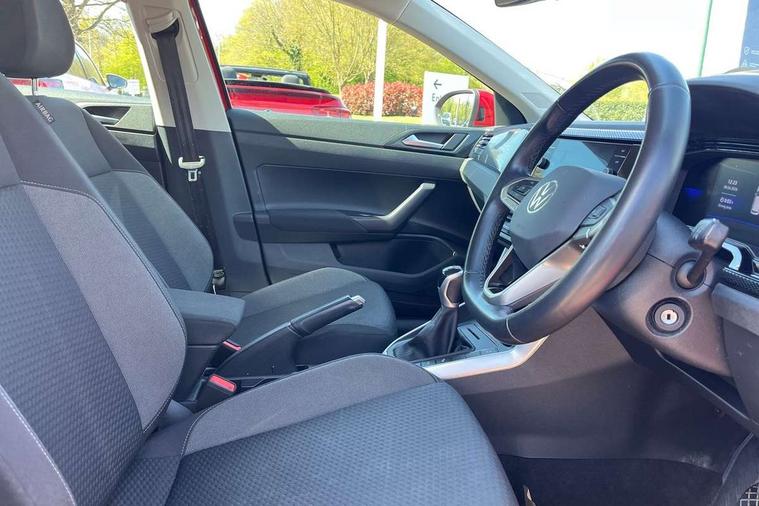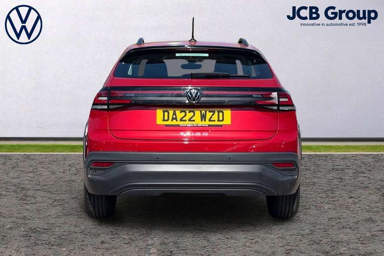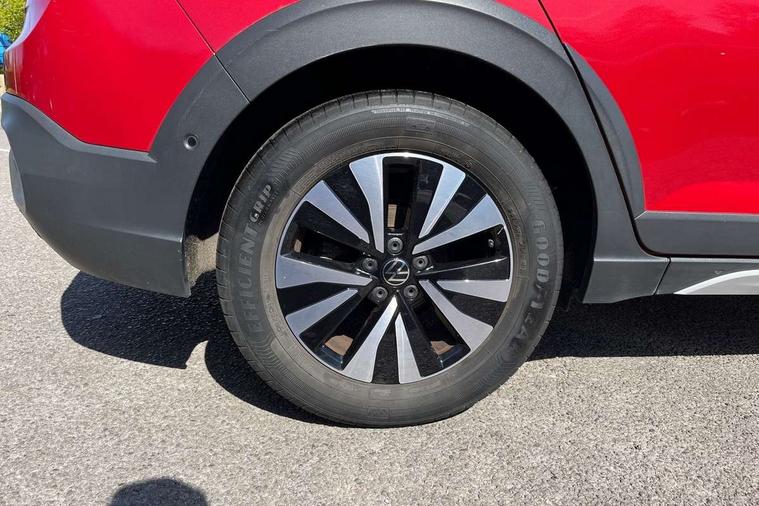 App-Connect including App-Connect Wireless, Driver alert system, e-Call (emergency call), Power Steering, Travel assist including emergency assist, Washer fluid level indicator, Wireless Charging including Bluetooth, Start-stop system with battery regeneration (recuperation - energy recovery during braking), Digital radio reception (DAB+), Diversity antenna for FM reception, WeConnect plus, Ambient lighting with logo projection, Aspherical driver's exterior mirror, Auto headlights, Body coloured bumpers, Body coloured exterior mirror housings and door handles, Electric windows, External USB type C socket and charging sockets, Front fog lamps with cornering function, Headlight range control, Heat insulating glass windscreen, LED headlamps, LED rear combination lamp, LED third brake light, Left convex exterior mirror, Power folding adjustable/heated exterior mirrors and front passenger exterior mirror lowering function, Rear fog light on one side, reversing light on both sides, Rear side wing doors, Rear wash/wipe with intermittent wipe setting, 'Slash/ Austin' Cloth upholstery, 12V socket in centre console, 2 front reading lights, 3 rear head restraints, 3 seat bench in 2nd row, Black carpets, Child seat anchor for child seat system i-Size, 2x top tether and child seat anchor in front on front passenger side, Door and side trim panels in titan black, Driver and front passenger seat height adjustment, Front centre armrest, Handbrake lever handle in leather, Height and reach adjustable steering wheel, Leather trimmed gear knob, Leather wrapped multifunction steering wheel, Luggage compartment floor, Luggage compartment light, Lumbar support for driver's and front passengers seat, Seat covers in titanium black, Single front passenger seat, Split folding backrest with centre armrest and unsplit rear seat bench, Storage compartment under front seats, Sun visors with illuminated vanity mirrors, Chrome Package - Taigo, Drivers assistance pack - Taigo, Light and Sight pack including High beam assist - Taigo, 2 x 3-point seatbelts/outer rear seats with ECE label, 3-point seat belts in front with pretensioner and height adjustment, 3-point seatbelt for centre rear seat, Driver and front passenger airbags with front passenger airbag de-activation, front side and curtain airbags, Driver and front passenger safety-optimised head restraints, Electronic stability control, Extended and predictive pedestrian/ cyclist protection, Front and rear disc brakes, Front curtain and side airbags with center airbag, Hill start assist, Manual rear child locks, Single tone horn, Tyre pressure loss indicator, Anti-theft alarm system with interior monitoring, backup horn, and towing protection, Anti-theft wheel bolts, Lava stone black gloss/matt decorative inserts in dash and front door panels, Low rolling resistance tyres,