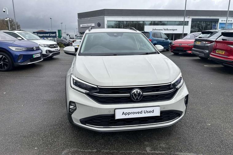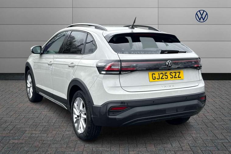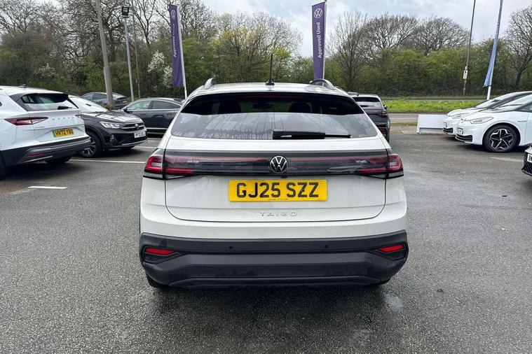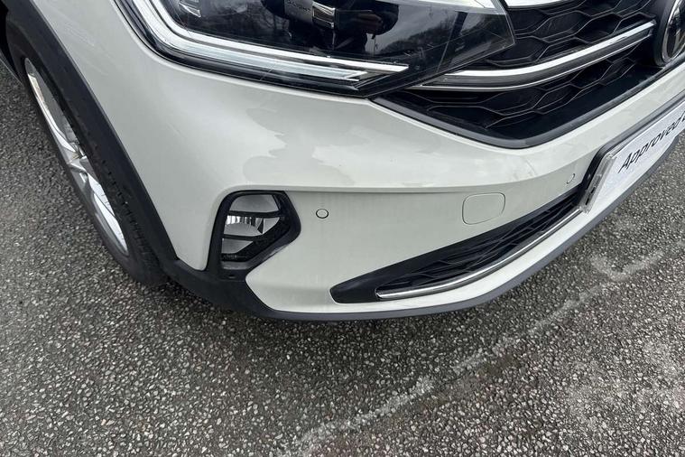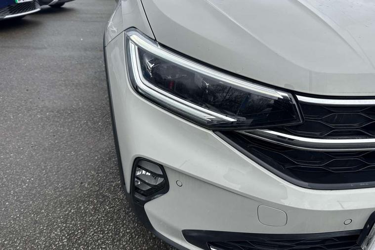 Advanced driver attention and drowsiness monitor, Dynamic road sign display, e-Call (emergency call), Power Steering, Predictive adaptive cruise control, Rear view camera, Travel assist including emergency assist, Washer fluid level indicator, Wireless Charging including Bluetooth, Start-stop system with battery regeneration (recuperation - energy recovery during braking), WeConnect plus, Ambient lighting with logo projection, Aspherical driver's exterior mirror, Body coloured bumpers, Body coloured exterior mirror housings and door handles, Electric windows, External USB type C socket and charging sockets, Heat insulating glass windscreen, LED rear combination lamp, LED third brake light, Left convex exterior mirror, Power folding adjustable/heated exterior mirrors and front passenger exterior mirror lowering function, Rear fog light on one side, reversing light on both sides, Rear side wing doors, Rear wash/wipe with intermittent wipe setting, Side windows in heat-insulating glass, from B-pillar and rear window dark tinted, 'Slash/ Austin' Cloth upholstery, 12V socket in centre console, 2 front reading lights, 3 rear head restraints, 3 seat bench in 2nd row, Black carpets, Ceramique headliner, Child seat anchor for child seat system i-Size, 2x top tether and child seat anchor in front on front passenger side, Door and side trim panels in titan black, Driver and front passenger seat height adjustment, Front centre armrest, Handbrake lever handle in leather, Height and reach adjustable steering wheel, Leather trimmed gear knob, Leather wrapped multifunction steering wheel, Luggage compartment floor, Luggage compartment light, Lumbar support for driver's and front passengers seat, Seat covers in titanium black, Single front passenger seat, Split folding backrest with centre armrest and unsplit rear seat bench, Storage compartment under front seats, Sun visors with illuminated vanity mirrors, Titanium black instrument panel, Chrome Package - Taigo, Drivers assistance package - Taigo, Light and sight pack - Taigo, 2 x 3-point seatbelts/outer rear seats with ECE label, 3-point seat belts in front with pretensioner and height adjustment, 3-point seatbelt for centre rear seat, Driver and front passenger airbag with front passenger airbag deactivation, Driver and front passenger safety-optimised head restraints, Electronic stability control, Extended and predictive pedestrian/ cyclist protection, Front and rear disc brakes, Front curtain and side airbags with center airbag, Hill start assist, Manual rear child locks, Single tone horn, Tyre pressure loss indicator, Anti-theft alarm system with interior monitoring, backup horn, and towing protection, Keyless locking and starting system keyless access with safelock, Black (slush) Dashboard, Lava stone black gloss/matt decorative inserts in dash and front door panels, Low rolling resistance tyres,