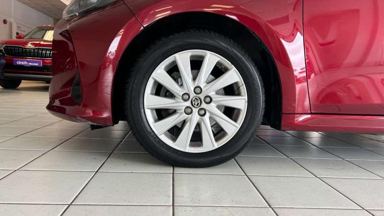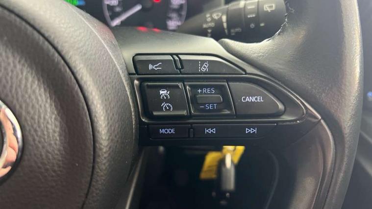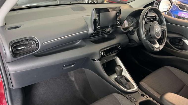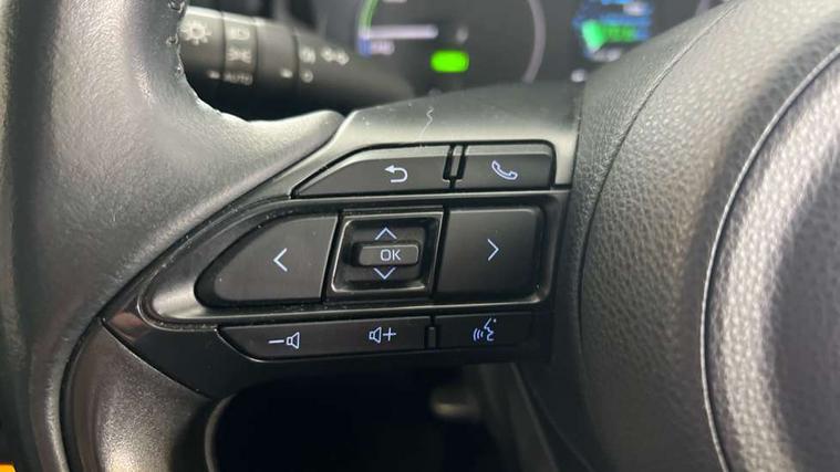 4.2" coloured LED TFT multi information display with analogue speedometer, Adaptive cruise control, Adjustable speed limit with speed warning, Bluetooth connectivity, E-call, Electric power steering, Hybrid energy display, Multi information display switches on steering wheel, Reversing camera, Smartphone integration with Apple CarPlay and Android auto, Vehicle Stability Control (VSC), 4 speakers, 7" Multimedia display touch screen, Toyota Touch 2 with DAB, USB connection, Acoustic windscreen glass, Auto windscreen wipers, Automatic headlights, Body coloured door mirrors, Electric adjustable heated door mirrors, Follow me home headlights, Front auto power windows with anti jam protection, Halogen projector headlights, LED daytime running lights, LED High mounted stop lamp, Rear spoiler, Shark fin antenna, Turning signal integrated indicators in door mirrors, 3 adjustable rear headrests, 3 spoke leather steering wheel, 60/40 split folding rear seat, Active headrests, Adjustable boot height, Auto air conditioning, Coat hooks in rear grab handles, Cup holders (2 front & door), Data Communication Module (DCM) connected services, Fabric upholstery, Front armrest, Glovebox, Height adjustable driver's seat, Isofix seat fixing, Leather gearshift, Pollen filter, Shopping bag hooks, Tilt/telescopic steering column, 3 point seatbelts on all rear seats, ABS+EBD+Brake assist, Electronic parking brake, Emergency brake light system (EBS), Front passenger airbag on/off switch, Front seatbelt reminder, Hill start assist control (HAC), Rear child proof door locks, Rear seat belt reminder, Supplemental Restraint System (SRS) 8 airbags: Driver & passenger's airbags, dual side curtain airbags, side impact airbags, front centre airbag, Toyota Safety Sense 2, Precollison + Night time Pedestrian & Cyclist Detection, Lane Trace Assist, Auto High Beam, Intelligent ACC & Road Sign Assist, Tyre pressure warning system, Alarm/immobiliser, Remote powered central double locking doors, Soft touch instrument panel, 16" Silver alloy wheels, Space saver spare wheel,