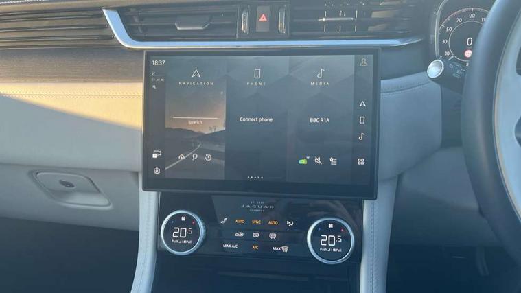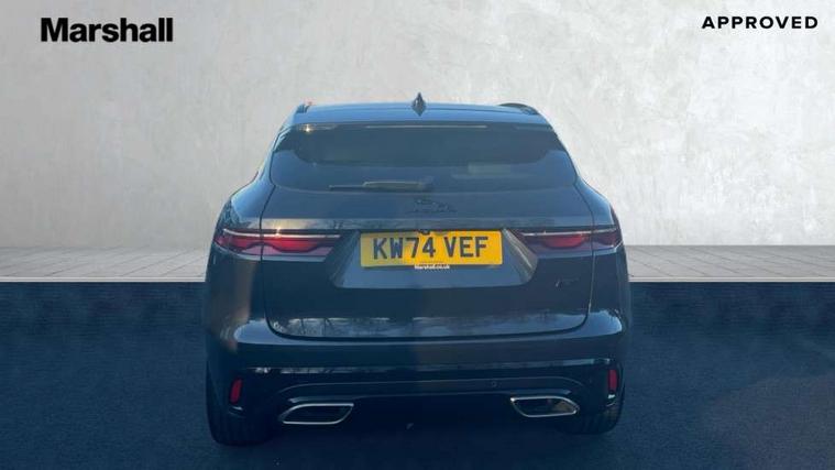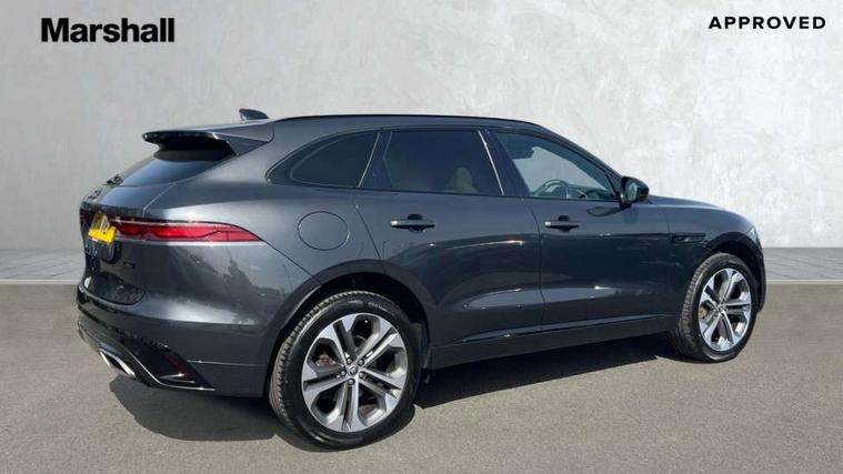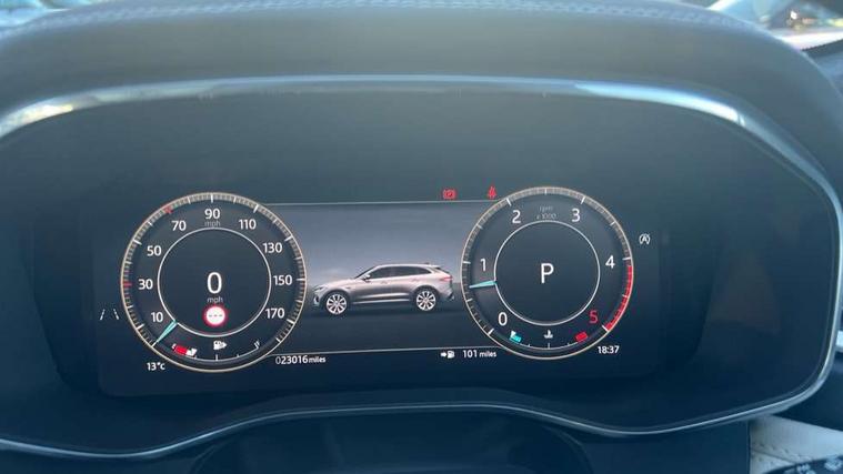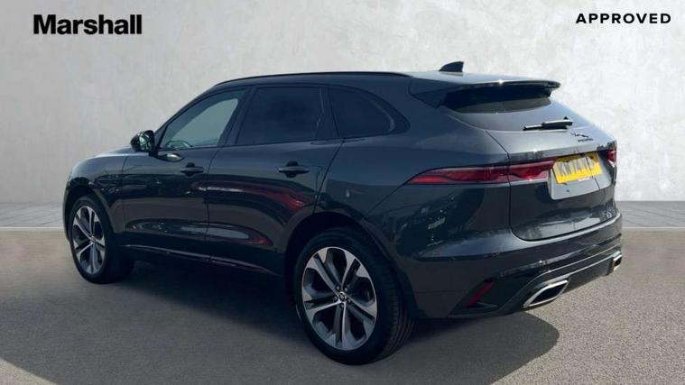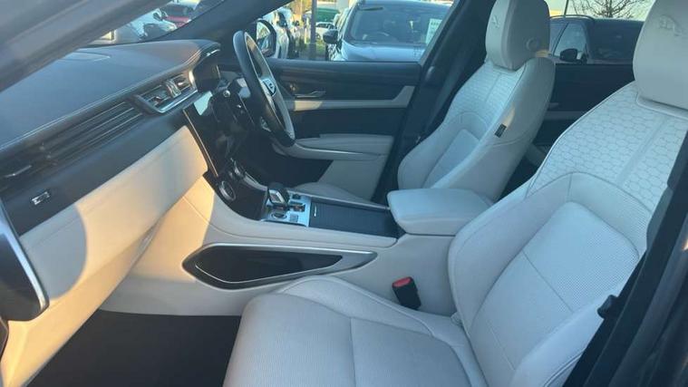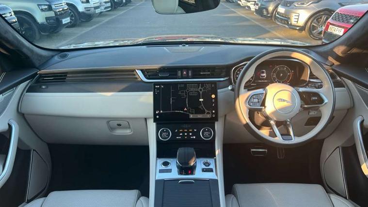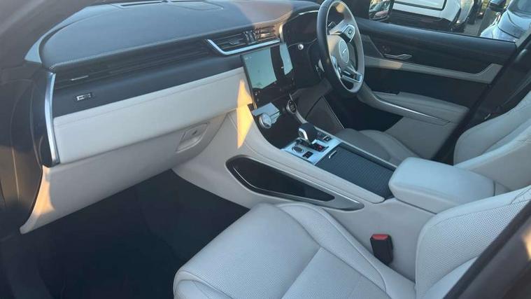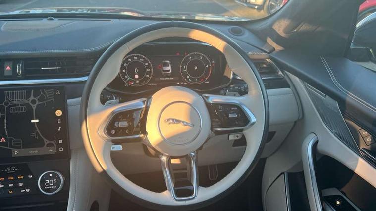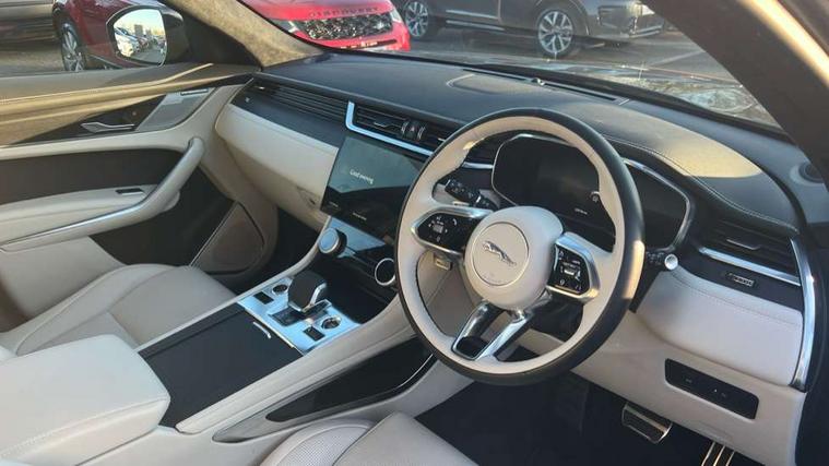 11.4" touchscreen, Adaptive cruise control with steering assist, Android Auto, Apple car play, Blind spot assist, Bluetooth connectivity, Clear exit monitor, Driver alert system, Driver condition monitor, eCall emergency call system, Eco driving style assistant, Electric power assisted steering, InControl remote, Interactive driver display digital with 12" TFT display, Jaguar Toggle shift selector, Lane departure warning system, Lane keep assist, Outside temperature gauge, Personalisation profile management, Pivi pro connected navigation system with app interface and media storage, Pro services and wifi hotspot, Push button starter, Rear collision monitor, Rear traffic monitor, Service interval indicator, Speed proportional steering, Start up sequence with movement in dials and lighting, Traffic sign recognition with adaptive speed limiter, Trip computer, Voice control system, Wireless device charging, 8 speed automatic transmission, Adaptive dynamics, All terrain progress control, All Wheel Drive (AWD), Configurable dynamics, Open differential with torque vectoring by braking, AM/FM radio, Bluetooth streaming, DAB Radio (Digital Audio Broadcasting), Dynamic volume control, InControl apps, InControl protect, iPod integration, 3 flash lane change indicators, 90th Anniversary Edition Badge, AHBA and animated directional indicators, Approach Illumination, Auto dimming rear view mirror, Automatic headlights, Electric heated/power fold memory door mirrors with approach lights and auto dimming driver side, Electric windows with one touch open/close and anti trap, F-Pace and R Dynamic badge, Green tinted glass, Heated front windscreen + heated washer jets, Heated rear window with timer, Illuminated metal tread plates with Jaguar script, Jaguar script and leaper, LED High level third brake light, LED tail lights, Metal load space scuff plates, Non acoustic front windscreen, Privacy glass (rear side windows and rear screen), R Dynamic badge on side door, Rain sensor windscreen wipers, Rear fog lights, Rear metal tread plates, Rear side wing doors, Rear wiper, Trailer stability assist, Variable front intermittent wipers, 12V power point front, 3 rear headrests, 3 seat bench in 2nd row, Additional power sockets - Two additional USB sockets in rear centre console and one 12V socket in trunk, Air distribution speed, Bright metal foot pedals, Centre armrest console, Centre console with side storage, Configurable cabin lighting, Deletion loadspace storage rails, Door sill tread plates, Ebony suede cloth headlining, Electrically adjustable steering column, Fold flat front seats, Front centre armrest with storage compartment, Front door storage space, Glovebox finisher with jaguar script, Heated steering wheel, Hooks in loadspace, Illuminated glovebox, Interior front door handles with separate locking switches, ISOFIX on outer rear seats, Jaguar sense, Leather steering wheel, Luggage tie downs in loadspace, Mist sensing, Multifunction steering wheel, Overhead lighting console, Overhead stowage for sunglasses, Passive front head restraints, Premium carpet mats, Rear air vents, Rear armrest with twin cupholders, Rear centre headrest, Rear door storage space, Reversible boot floor, Satin chrome gearshift paddles, Shopping bag hook, Single front passenger seat, Sunvisors with illuminated vanity mirrors, Twin front cupholders with cover, Online Pack with data plan - F-Pace, 380mm front brakes and 325mm rear brakes, 3x3 point rear seatbelts, ABS, All surface progress control (ASPC), Brake pad warning light, DSC - Dynamic Stability Control, Electric parking brake (EPB), Emergency brake assist, Front airbags with passenger seat occupant detector, Front and rear seatbelt reminder, Front side airbags, Full length side window curtain airbag, Hill launch assist, Power operated child locks, Traction control, Tyre pressure monitoring system, Immobiliser, Keyless entry, Keyless start, Locking wheel nuts, Perimeter alarm, Remote central locking, Valet mode,