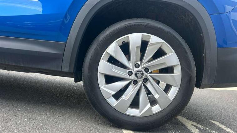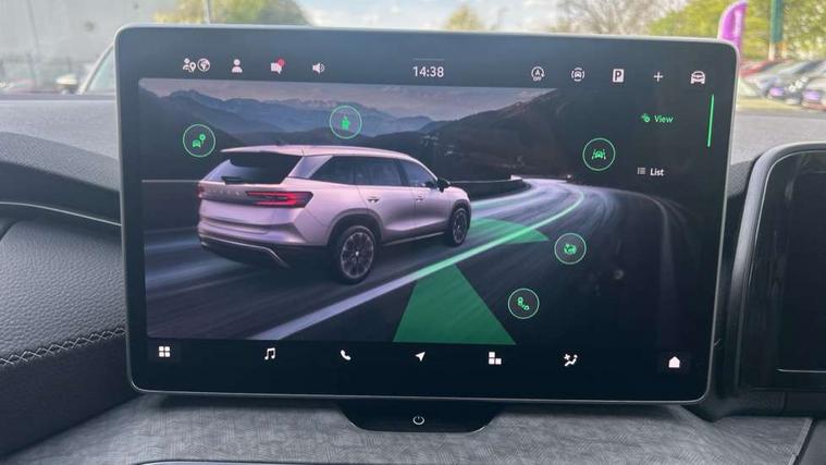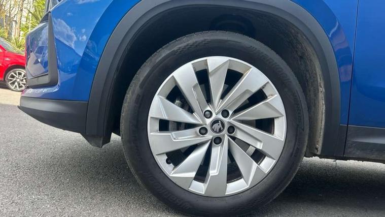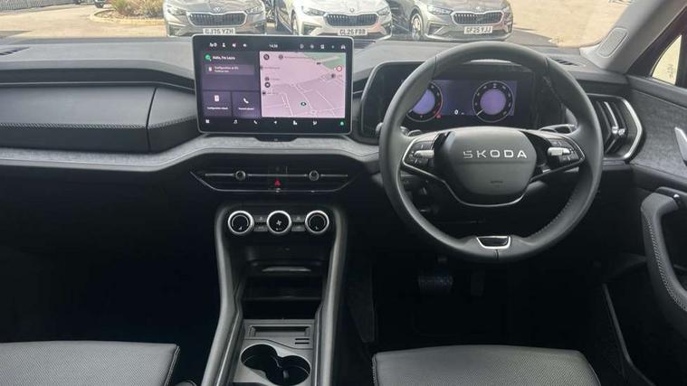 13" satellite navigation touchscreen display, Blind spot detection with door exit warning, Bluetooth system, ChatGPT functionality, Driver alert - Fatigue and drowsiness monitor, Dry display cleaner, Emergency call, Front and rear parking sensors, Front cross traffic assist, Lane assist, PAS, Rear traffic assist, Tailgate unlocking from outside, Traffic sign recognition, USB C Port x 2 in front centre console, Virtual Cockpit - 10.25" digital display, Voice control system, Wireless charging for two smartphones (15W) with cooling function, Wireless SmartLink for Apple CarPlay and Android Auto, Stop/start function, 2x USB-C in the rear, DAB Digital radio, Aero front windscreen wipers with intermittent function, Auto dimming rear view mirror, AWL (all weather lighting) and all weather light with cornering function, Black wheel arch surrounds, Body colour bumpers, Body colour door mirrors and handles, Cornering light and poor weather light, Electric folding /adjustable/separted heated/folding door mirrors, auto dimming with boarding sports and memory function, Electric front and rear windows, Exterior black decorative trims, Heat insulating glass in windshield, Heated rear window, Ice scraper in fuel tank cap, Invisible tailpipe, LED daytime running lights, LED third brake light in rear spoiler, Light assistant with automatic headlight control and coming home feature, Logo projection in door mirrors, Privacy glass, Rear roof spoiler, Rear side wing doors, Rear window wiper, Red decorative strip between rear LED lights, Safety reflectors on front and rear doors, Unique dark chrome design logo on alloy wheels, Window control switches with black trim, Windscreen wipers with rain sensor, Without engine designation, 1.5l bottle holder points in all door, 1x centre rear reading light, 2 seat bench in 3rd row, 3 configurable smart dials with 32mm coloured display, 3 seat bench in 2nd row, 4 foldable roof handles with rear coat hooks, Ambient interior lighting - Dashboard, front-door stowage compartments, front and rear door panels and footwell lighting, Automatic gear selector on steering column, Chrome interior door handles, Driver/front passenger reading lights, Fabric headlining, Fixed bench 40:60:40 split folding backrests, Front and rear floor mats, Front centre armrest with jumbo box storage compartment, cup holder and 12V socket, Height adjustable front headrests, Isofix child seat fittings in outer middle row rear seats and front passenger with top tether, Manually adjustable steering column, Pollen filter, Rear centre armrest with cupholders, Rear seat boot backrest release, Single front passenger seat, Skoda lettering on steering wheel, Storage pocket including mobile phone pockets on the backs of the front seats, Sunvisors with illuminated vanity mirrors, Three rear height adjustable headrests, Ticket holder on A Pillar, Tri zone climate control, Umbrella in door panel x1 made from sustainable materials, Upper and lower glovebox with card holder and coin compartment, USB C port by rear view mirror for charging only (15W), Exterior styling pack - Kodiaq, Auto door release and activation of warning lights in the event of an accident, Driver and front passenger airbag with knee airbag and front passenger airbag deactivation, Electric child locks, Electronic parking brake, ESC (incl. ABS+EMD+MSR+ASR+EDL+HBA+DSR+RBS+ESBS+MCB+TSA+XDS), Front assist with braking reaction to vehicles, pedestrians and cyclists, Front disc brakes, Fuel cut off safety device, Height adjustable front 3 point seatbelts + pretensioners, Hill hold assist, Junction assist with automatic emergency braking, Rear disc brakes, Safety vest holder in door, Seat belt reminder for all seats, Three point rear seat belts, Two tone horn, Tyre pressure monitor, Anti-theft wheel bolts, Immobiliser, Remote central locking with 2 keys,