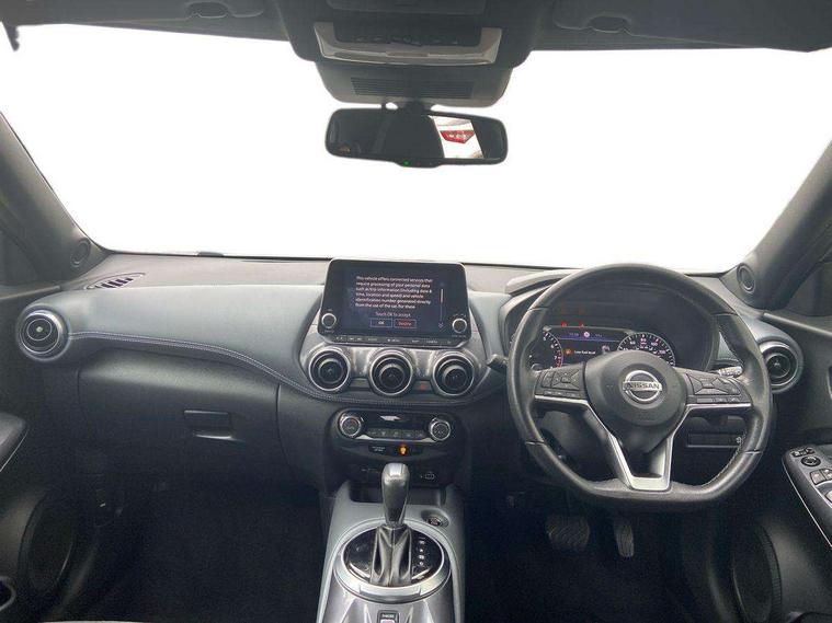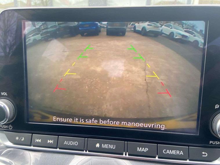 7" full colour TFT screen combimeter, Apple CarPlay and Google Android auto, Drive modes select (Eco, normal and sport), Emergency and breakdown call, Front parking sensor, Idle start/stop system, Intelligent lane intervention, Lane departure warning system, Nissan connect 8" touch screen entertainment system, Nissan connect nav with TomTom traffic, Nissan connect services and Wifi connection, Outside temperature sensor, Power Steering, Rear parking sensor, Traffic sign recognition, Trip computer, Voice recognition, Gasoline particulate filter, 6 speakers, Bluetooth system, USB, Aux-in and 12V socket, DAB Digital radio, Rear console USB port, Auto dimming interior rear view mirror, Auto headlights, Automatic hazard signal with emergency stop signal, Body colour bumpers, Body colour door handles, Electrically adjustable door mirrors with integrated indicators, Follow me home headlights, Front and rear electric window with one touch driver window, Heated and auto folding door mirrors, High beam assist, LED daytime running lights, LED headlamps, LED rear fog lamp, LED rear lamps, Rain sensor windscreen wipers, Rear privacy glass, Rear side wing doors, Rear wiper, Three blink turn signal, 3 height adjustable rear headrests, 3 seat bench in 2nd row, 60/40 split folding rear seat, Automatic climate control, Card holder on driver sunvisor, Cloth upholstery with black and metallic grey syntech leather inserts, Driver and passenger sliding and reclining seats, Driver side rear coat hanger, Driver/passenger sunvisors and vanity mirrors, Front and rear cabin lights, Front armrest, Front door pockets with bottle holders, Front head restraints, Front/rear passenger grab handles, Grey synthetic leather kneepad, Height adjustable driver's seat, Internal chrome door handles, Leather gearshift knob, Leather steering wheel, Luggage board, Luggage space lighting, Monoform sporty seats, Multifunction steering wheel, Rear door bottle holders, Single front passenger seat, Steering wheel mounted gearshift paddles, Telescopic steering wheel adjustment, Two cupholders in front centre console, Two rear isofix child seat anchorage points with top tether, Welcome light and console tray ambient lighting, ABS with EBD and brake assist, Active ride control, Active Trace Control, Driver and passenger airbags, Driver and passenger side airbags, Electric handbrake with auto hold function, Electronic Stability Programme (ESP), Front and rear curtain airbags, Height adjustable seatbelts, Hill start assist, Intelligent emergency braking with pedestrian and cyclist recognition, Rear door child safety locks, Seatbelt reminder for driver/front passenger and rear seats, Single tone horn, Three 3 point rear seatbelts, Traction control, Tyre pressure monitoring system, VDC Dynamic Vehicle Control, Ventilated rear brake discs, Alarm, Immobiliser, Intelligent key and start push button with walk away lock and approach unlock functions, Remote central locking,