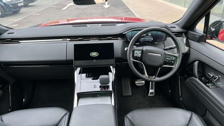 13.1" Touchscreen, 3D 360 degree surround camera with wade sensing, Adaptive cruise control with steering assist, Android Auto, Apple car play, Blind spot assist, Bluetooth connectivity streaming, Driver condition response, Eco mode, Front and rear parking aid, Interactive Driver display instrument cluster, Lane departure warning system, Lane keep assist, Push button start, Rear collision monitor, Rear traffic monitor, Remote, Traffic sign recognition with adaptive speed limiter, Trip computer, Wireless device charging, 8 speed automatic transmission, Adaptive dynamics, All wheel drive system, Automatic access height, Home charging cable, Public charging cable, Terrain Response 2, Twin speed transfer box, DAB Radio (Digital Audio Broadcasting), Incontrol protect - SOS emergency call with automatic collision detection, optimised assistance call and Incontrol remote app essential, Pivi pro connected, USB/aux input socket, Adaptive brake lights, Automatic headlight levelling, Automatic headlights, Centre high mounted stop light, Electric heated/power fold memory door mirrors with approach lights and auto dimming driver side, Electric windows with one touch open/close and anti trap, Flush deployable exterior door handles, Follow me home lighting, Front and rear recovery eyes, Headlight power wash, Heated rear window, Heated washer jets, Heated windscreen, Illuminated aluminium treadplates with Range Rover script, Integrated twin tailpipes, LED tail lights, Metal load space scuff plates, No badges, Rain sensing windscreen wipers, Rear animated directional indicators, Rear fog lights, Rear side wing doors, Rear wash/wipe, Remote window closing, Side repeater indicators in mirror, Trailer stability assist, Winter wiper park position, 3 seat bench in 2nd row, 60:40 seats with power recline and loadthrough, Air quality sensor, Automatic air recirculation system, Bright metal foot pedals, Centre console with armrest, Customer configurable single point entry, Driver's footrest, Easy boot loading, Ebony console door armrests and seatbelts, Electric adjustable steering column, Front and rear cupholders, Front door storage space, Front head restraints, Front map lights, Front seat back map pockets, Front stowage pocket, Front/rear passenger grab handles, Gearshift paddles, Heated steering wheel, Isofix child seat preparation, Loadspace cover, Loadspace Hook, Loadspace light, Loadspace mounting provisions, Lockable glovebox, Luggage tie-downs in loadspace, Multifunction steering wheel, Pollen filter, Power socket, Rear centre armrest, Rear head restraints, Rear ISOFIX, Single front passenger seat, Three 12V accessory power outlets, Upper secondary glovebox, Online pack with data plan - Range Rover Sport, 3 point seatbelts on all seats, Anti-lock braking system (ABS), Brake pre-fill technology, Configurable autolock, Cornering brake control (CBC), DSC - Dynamic Stability Control, EBD - Electronic brakeforce distribution, Electric parking brake, Electronic traction control, Emergency braking, Front seatbelt pretensioners, Front side airbags, Height adjustable front seatbelts, Hill descent control, Hill launch assist, Low traction launch, Occupant protection assist, Passenger seat occupant detector with front airbags, Power operated child locks, Roll stability control, Seatbelt warning, TPMS (Tyre pressure monitoring system), Immobiliser, Intrusion sensor, Keyless entry, Locking wheel nuts, Perimetric and volumetric anti theft alarm, Remote locking,