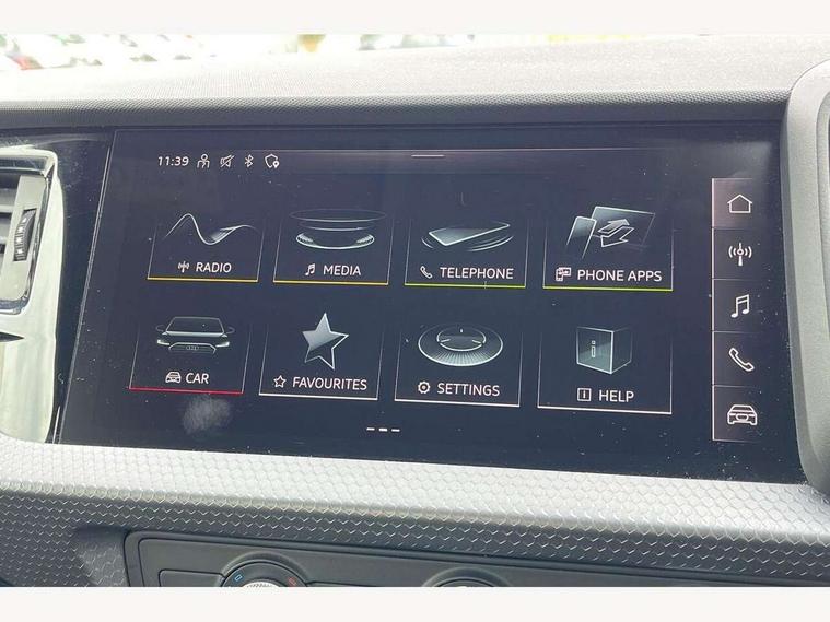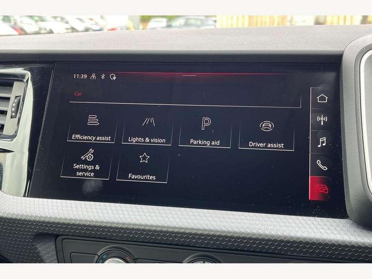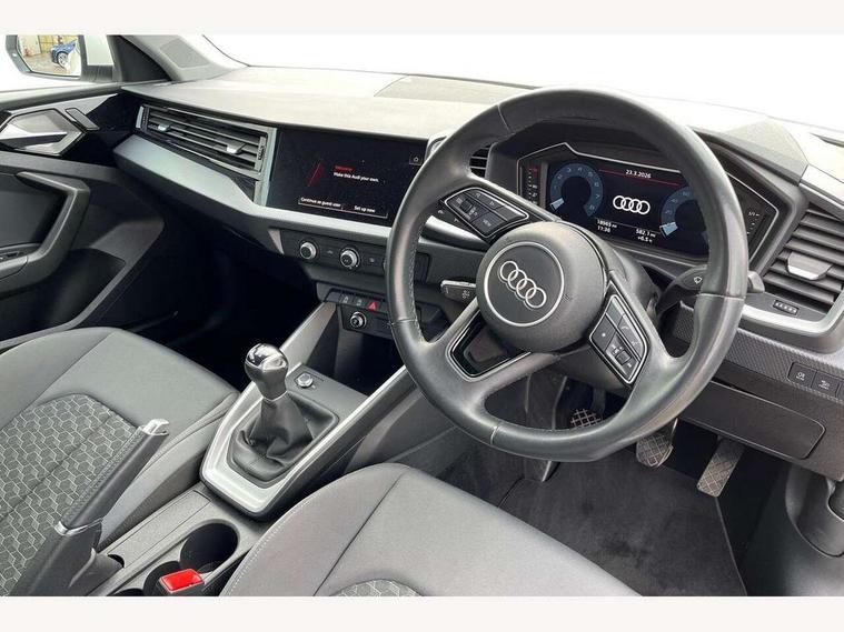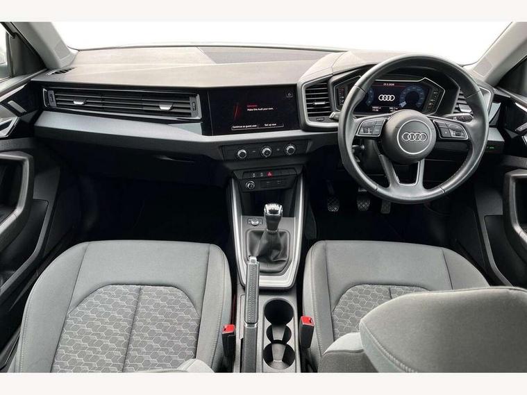 10.25" Digital instrument cluster display classis style instrument dials + speed, odometer, time, outside temperature, telephone menu + fuel level warning, Audi smartphone interface with connect compatible smartphone via USB directly MMI display + Nav, music, third party apps controlled via MMI controller, Automatic start/stop system, Bluetooth interface, Cruise control, Driver's information system, Electromechanical power steering, Emergency e-call, Lane departure warning system, Rear parking sensor, Service interval indicator, Speed limiter, Voice control system, Washer fluid level indicator, Dynamic suspension, 2 x USB type C connection points, 6 passive loudspeakers, DAB Digital radio, MMI radio plus with 10.1" colour MMI display screen and MMI touch, Auto dimming rear view mirror, Body coloured bumpers, Body coloured door mirrors, Electric front and rear windows, Electrically adjustable, heated, folding door mirrors with integrated LED side indicator, Front side air inlets in grained matt black and C frame in anthracite black, Heat insulating glass windscreen and side windows, Heated rear windscreen, High level LED brake light, LED headlights with LED rear lights + dynamic rear indicators + headlight adjustment and high beam, turning light + LED daytime running lights, Radiator grille and rear diffuser in matt anthracite black, Radiator protective grille frame in matt aluminium silver, Rain and light sensors, Rear fog lights, Rear side wing doors, Rear wiper, Side front spoiler lips in grained matt black, 12V socket in centre console with two cup holders, 3 rear seats with headrests, 3 seat bench in 2nd row, 3 spoke leather multifunction plus steering wheel, 40:60 Split folding rear seat or folded fully, Black front and rear floor mats, Door sill trims with aluminium inlay, Driver and passenger seat with manual height adjust with forward and backwards adjustment, Front head restraints, Front passenger seat, Grey cloth headlining, Height and reach adjustable steering wheel, ISOFIX child seat mounting for front passenger and outer rear seats including top tether attachment point of outer rear seats, Leather gear knob with aluminium trim, Leather handbrake grip, Luggage compartment light with front and rear reading lights, Manual air conditioning, Manually adjustable lumbar support in front seats, Novum cloth upholstery with front sport seats, Luggage compartment pack - A1, 3x3 point rear seatbelts, Audi pre-sense front with pedestrain and cyclist recognition, Brake assist function, Driver and front passenger airbag with front side and head airbags, Electronic Stability Control including ABS, EBD, ASR and EDL, Front passenger airbag deactivation switch, Hill hold assist, Manual rear child locks, Seatbelt height adjustment for front seats, Seatbelt monitoring, Tyre pressure warning light, Warning triangle and first aid kit, Anti theft alarm, Anti theft wheel bolts and loose wheel warning, Immobiliser, Remote central locking with 2 foldaway keys, Aluminium trim for control switches, air vents and digital instrument cluster, Black dashboard, Silver grey accent areas including air vents, door handle recesses and centre console in diamond paint finish, Slate grey inlays polygon structure in fine paint finish,