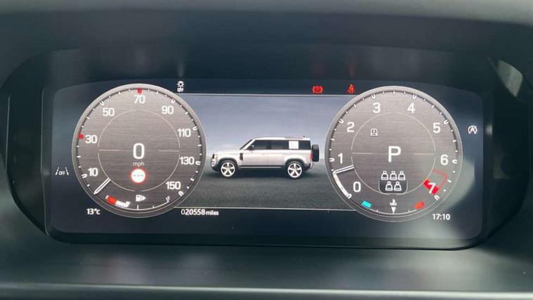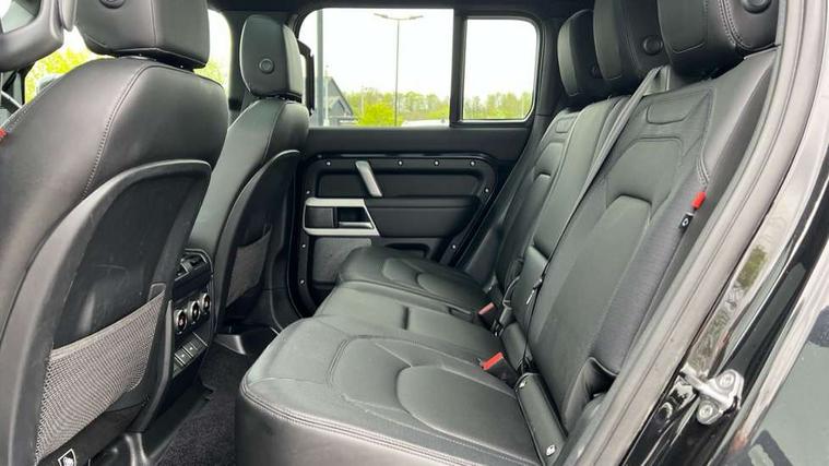 360 degree parking aid, 3D Surround Camera with 360 View, 180 Rear View, Front Traffic Detection, Forward Vehicle Guidance, Tow Hitch Assist and clear sight Ground View, Adaptive cruise control, Android Auto, Apple CarPlay, Assisted tailgate with soft close, Blind spot assist, Bluetooth system, Brake pad wear indicator, Clear exit monitor, Click and go integrated base unit, Connected navigation pro, Driver condition monitor, Electric power assisted steering (EPAS), Interactive driver display, Lane keep assist, Push button start, Rear traffic monitor, Traffic sign recognition with adaptive speed limiter, Trip computer, Wade Sensing, Adaptive dynamics, DAB Radio (Digital Audio Broadcasting), Meridian 400w sound audio system with 11 speakers and subwoofer, Pivi pro connected, Automatic headlight levelling, Automatic headlights, Black exposed rear recovery eyes, Centre high mounted stop light, Electric heated/power fold door mirrors with approach lights and auto dimming driver side, Electric windows with one touch open/close and anti-trap, Follow me home lighting, Heated rear window with timer, Heated windscreen, LED tail lights, Privacy glass, Puddle lights, Rain sensing windscreen wipers, Rear fog lights, Rear side wing doors, Rear wiper, Trailer stability assist, X-Dynamic badge, 12V power socket in loadspace, 2 seat bench in 3rd row, 3 seat bench in 2nd row, Carpet mats, Configurable cabin lighting, Durable rubber cabin flooring, Durable rubber loadspace flooring, Electric reach + rake adjustable steering column, Footwell lights, Front passenger isofix child seat attachment, Loadspace cover, Loadspace Hook, Multifunction steering wheel, Overhead stowage for sunglasses, Premium cabin lighting, Rear headrests, Rear ISOFIX, Rear reading lights, Single front passenger seat, Storage glovebox, Sunvisors with illuminated vanity mirrors, Online pack with data plan - Defender, X-Dynamic exterior pack - Defender, 7 three point seatbelts, ABS, Brake hold function, Cornering brake control (CBC), Customer configurable autolock, Driver and passenger airbags, DSC - Dynamic Stability Control, EBD - Electronic brakeforce distribution, Electric parking brake (EPB), Emergency brake assist, Emergency braking, ESP + traction control, Front airbags with passenger seat occupant detector, HDC - Hill descent control, Hill launch assist, Low traction launch, Power operated child locks, Remote for (e-Call, Optimised assistance call, InControl app, Climate, beep and flash and door), RSC - Roll stability control, Seat belt reminder, TPMS (Tyre pressure monitoring system), Alarm, Immobiliser, Intrusion sensor, Keyless entry, Locking wheel nuts,