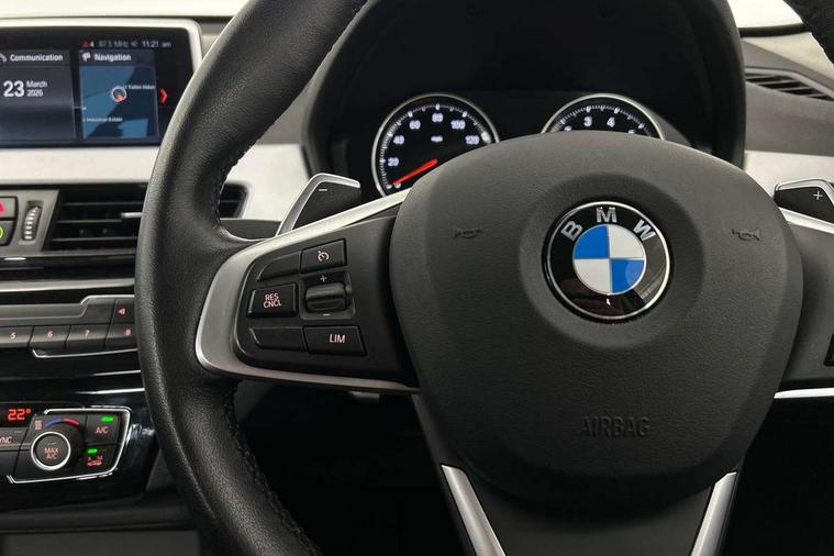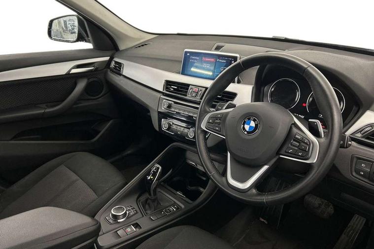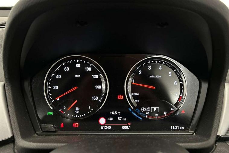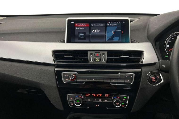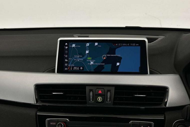 Ambient temperature display, Apple CarPlay, Arrow pointers, north up, direction of travel and perspective map displays, Attentiveness assist, Automatic tailgate opening, BMW ConnectedDrive, BMW Online services, BMW remote services, BMW Teleservices, Brake pad wear indicator in front and rear, Characteristic map controlled oil pump system, Front axle single joint with specific axle kinematics to minimise drive influences on steering + provide increased rigidity agile driving behaviour, Front/rear park distance control (PDC), Instrument cluster with Black optic display featuring superimposed dials and 5.7" colour display, Instrument cluster with speedometer with miles per hour read out, tachometer and fuel gauge, Integrated hard drive with map data updates via USB interface, Lights on warning by audio warning signal when ignition is switched off, On board computer, Operation by iDrive with direct selection buttons and 8 programmable buttons, Optimum shift indicator, Outside temperature gauge, Park assist system, Personal Profile - automatic lock when driving away selectable, Real time traffic information, Rigidly mounted rear subframe - Multi link construction with separate spring / damper configuration and excellent driving characteristics, Service interval indicator, Servotronic PAS, Tyre puncture warning system, 12V compressor with integrated sealant injection bottle and hose, 51 Litre fuel tank, Aluminium lightweight construction including crankcase, Anti-roll bars, Balancer shaft, Double VANOS, Drive performance control with ECO PRO comfort + sport mode, Electronic differential lock control (EDLC), High precision injection, Performance Control, Seven speed sport dual clutch automatic transmission (DCT), Standard suspension, Stop/start function, Turbocharger with Valvetronic, Twin tube gas filled shock absorbers with degressive characteristic curve, DAB Digital radio, Adjustable headlights, Aero curtain, Automatically dimming rear view mirror, Black roof rails, BMW Icon design LED daytime driving lights, Body colour bumpers, Body colour door handles, Body colour door mirrors, Direction indicator side lights integrated exterior mirrors, Dynamic brake lights, Electric windows - front and rear, with open/close fingertip control, anti-trap facility and comfort closing, Electrically adjustable door mirrors with aspheric on driver side, convex on passenger side with integrated indicators, Follow me home headlights, Front air guide finished in black silver, Front and rear bumper system, Green tinted heat protection glazing glass, Headlight beam throw control, Heated door mirrors, Heated windscreen washer jets, High level third brake light, Kidney grille with 14 chrome black vertical bars, LED direction indicator lights in headlight eyebrow, LED front fog lights, Lightweight engineering, Model designation, Rain sensor including auto headlights activation, Rear fog lights, Rear window aerial, Rear window wash/wipe, Reversing light in rear light cluster, Roof mouldings in matt black, Shark fin antenna, Sill cover finished matt black, Twin chrome exhaust tailpipes x2, Two eye face design on light, Visible VIN plate, Welcome lighting, 12v power point in centre console, 2 cup holders in front, 3 rear headrests, 3 spoke sport leather steering wheel, 40:20:40 split folding rear bench seat, Black door sill finishers with BMW designation, Boot light, Centre armrest in 20 degree part rear seat backrest, Child seat ISOFIX attachment for two outer rear seats and front passenger seat with anchorage points, Conditioned based service, Driver/front passenger seat backrest back with luggage net, Dual zone automatic air conditioning, Four grab handles integrated in roof linings, Front and rear side armrests integrated into door trim, Front centre armrest/sliding cover, Front centre interior light over interior mirror and rear centre automatic interior light when door is opened/ignition switched off or via remote key, Front standard seats, Front/rear adjustable head restraints, Illuminated glovebox, Leather gearknob/gaiter/handbrake grip, Luggage area underfloor compartment, Luggage compartment access via recessed handle below tailgate, Luggage compartment lighting, Manually adjustment steering wheel column, Multifunction steering wheel, Rear coded belt buckles, Standing free front adjustable armrest and fixed in different positions, Steering wheel gearshift paddles, Velour floor carpets, Extended storage package - X1, ABS/EBD, Audio/visual collision warning system, Automatic Stability Control (ASC), Battery safety cut-off, BMW emergency call, Brake drying, Brake energy regeneration, Braking readiness, Cornering brake control (CBC), Crash Sensor - activates hazard/interior lighting + unlocks doors, Driver/Front Passenger airbags, Driver/front passenger side airbags, Dynamic brake control, Dynamic stability control + (DSC+), Dynamic Traction Control - DTC, Electronic parking brake, Front and rear head airbags, Front passenger airbag deactivation, Front seatbelt force limiters, Front ventilated disc brakes, Hill start assist, Pyrotechnically pre-tensioned front seatbelts, Rear disc brakes, Rear door child safety locks, Seatbelt security check for driver and front passenger, Side impact protection, Three point seat belts in all seats, Twin horns, Tyre pressure monitor, Warning triangle and first aid kit, Central locking switch for all doors, fuel filler cap and luggage compartment, Check control system for monitoring of lights and door/luggage compartment open warning, Engine immobiliser, Locking wheel bolts, Remote control Thatcham category 1 alarm, Remote control with integrated two key, Start/stop button with comfort go keyless engine start and auto start stop deactivation button, Contrast stitching on instrument panel, Oxide Silver interior trim with high gloss black finisher, Low rolling resistance tyres,