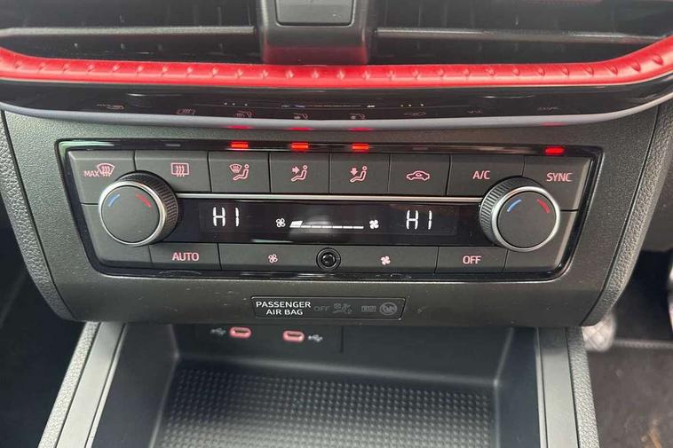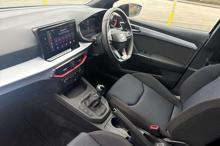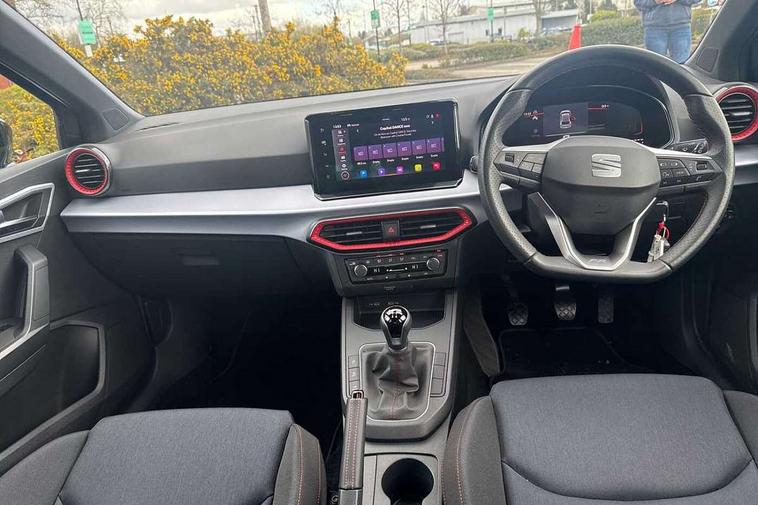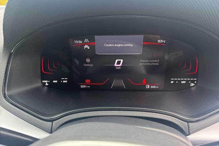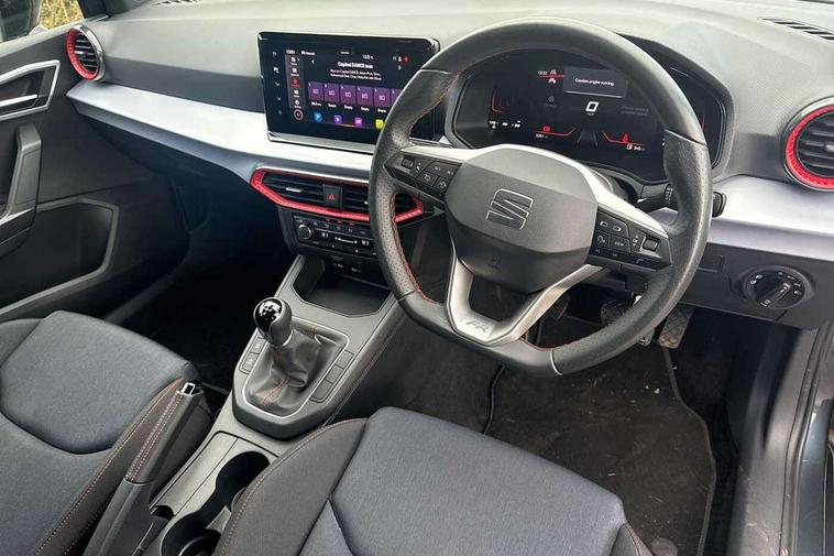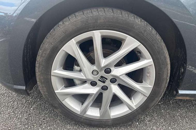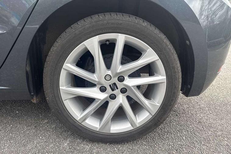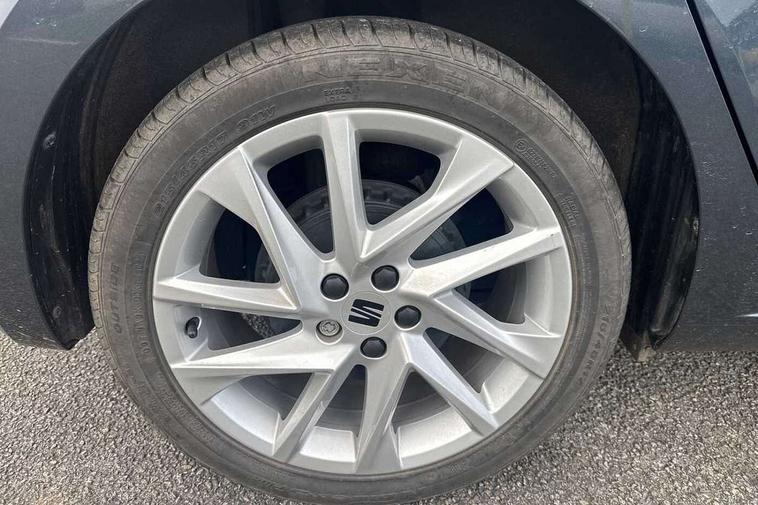 'Lights On' Reminder warning buzzer, 8" Digital cockpit, 9.2" touchscreen navigation system with type C USB socket, Voice control and DAB/AM/FM radio, Auto start and stop system, Bluetooth audio streaming with handsfree system, Digital clock, E-call, Full link smartphone integration with mirror link, wireless apple carplay, Google android auto + USB Type C cable for apple and android devices, Lane assist, Low fuel warning light, Outside temperature gauge, Power Steering, Seat connect with safety, service, remote and online, SEAT drive profiles and ECO function, SEAT logo boot release, Speed limiter, Trip computer, Sports suspension, Auxiliary input socket, Radio/MP3 player, SD card slot, Steering wheel mounted controls, Anti theft roof antenna, Auto dimming rear view mirror, Automatic rain sensing wipers, Black door mirrors, Body colour bumpers, Body colour door handles, Brilliant black window surrounds, Dark tinted rear windows, Electric adjustable/heated/folding door mirrors, Electric front windows, Electric headlight adjustment, Electric rear windows, Front/rear fog lights, FULL LED automatic headlights with dynamic headlight range control, coming and leaving home, LED daytime running lights, LED tail lights, Rear roof spoiler with FR twin exhausts, Rear side wing doors, Rear wiper, Third brake light, 3 seat bench in 2nd row, 60/40 split folding rear seat, Ambient interior lighting, Chrome detailing and black headlining, Cloth upholstery, Dual zone climate control with combination filter, Front courtesy lights, Front cupholders x 2, Front reading lights, Gear shift indicator, Glovebox, Height adjustable front and rear headrests (five), Height adjustable front seats, Height/reach adjust steering wheel, Illuminated air vent surrounds, Illuminated boot, Instrument lighting with brightness control, Isofix, Leather multifunction flat bottomed sports steering wheel, Passenger sunvisor, Single front passenger seat, Sports seats, Sunvisors with mirror and driver side card holder, 3 point seatbelts on all 3 rear seats, ABS, Active front headrests, Child locks on rear doors, Electronic stability control, Energy recovery system, Front assist forward collision warning and autonomous emergency braking, Front driver and passenger side airbags with curtain airbag and front passenger airbag deactivation, Hill hold control, Multi-Collision braking, Seat belt reminder for front and rear seats, Tiredness recognition system, Tyre pressure monitoring system, Electronic engine immobiliser, Locking wheel bolts, Perimeter alarm and interior monitoring with backup horn and tow away protection, Remote central locking + deadlocks, 17" Alloy wheels in Brilliant silver,
