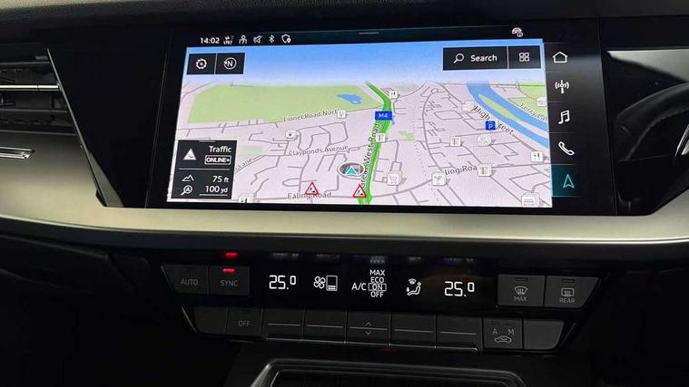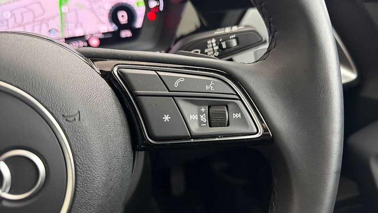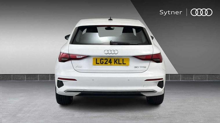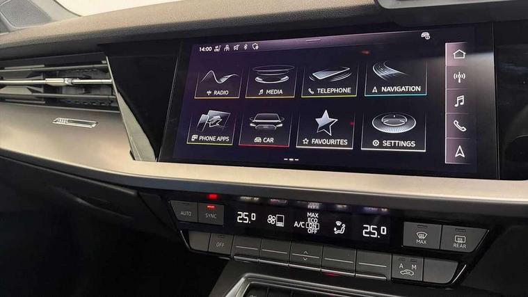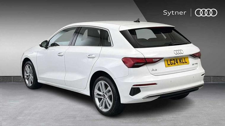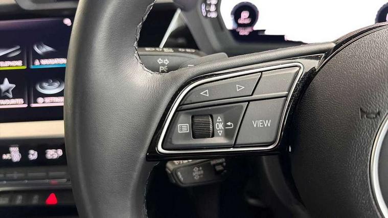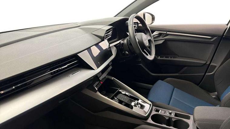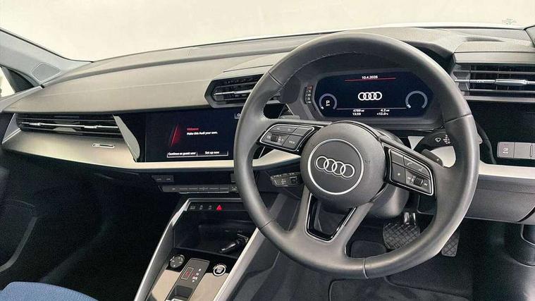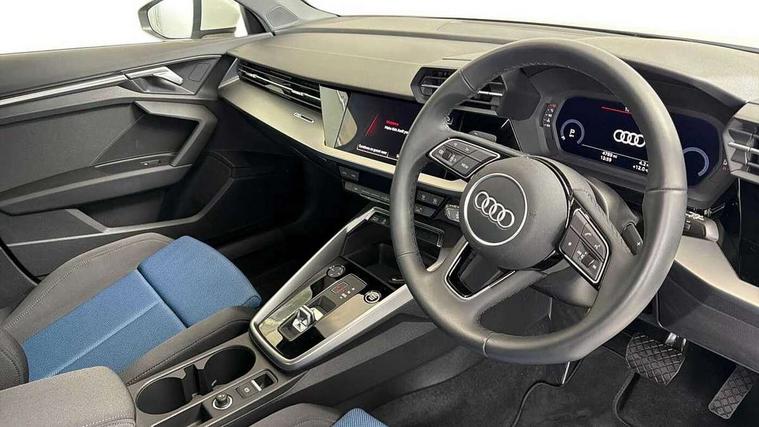 Audi drive select (Auto, Comfort, Dynamic and Individual), Audi smartphone interface, Audi Virtual Cockpit - 10.25" digital and colour instrument cluster, Automatic start/stop system with recuperation, Bluetooth interface, Camera based traffic sign recognition, Collision avoidance assistant, e-Call (emergency call), Electromechanical power speed sensitive steering, Lane departure warning system, MMI Navigation Plus with high resolution 10.1" colour touch screen display, Service indicator, Trip computer, Voice control system with natural language interaction, Standard suspension, 2xUSB-C connection with data and charging functions, 6 passive loudspeakers, DAB Digital radio, 3rd brake light, Acoustic glass windscreen, Aluminium window trim, Auto dimming frameless rear view mirror, Body colour exterior mirrors, Body colour roof spoiler, Electrically adjustable/heated/folding/auto dimming door mirrors with integrated LED indications + kerb view function for passenger side, Front electric windows, LED daytime running lights, LED headlights and halogen rear lights, Light and rain sensors, Rear electric windows, Rear side wing doors, Rear window, rear door windows and rear side windows in clear glass, Rear wiper, 12V socket and storage compartment in front centre console, 3 seat bench in 2nd row, 3 spoke leather multifunction steering wheel with paddle shift, 4 way electrically adjustable lumbar support for driver and front passenger, 60/40 split folding rear seat bench, Dual zone electronic climate control, Front and rear headrests, Front centre armrest, Front door sill trims with aluminium inlay, Front/rear floor mats, Height and reach adjustable steering wheel, Interior lighting - Front and rear roof module including reading lights, glove compartment light and right hand side, Interior lighting - glove compartment light and right hand side, Luggage compartment floor covering, Manual boot compartment lid, Manually adjustable front seats, Routine cloth upholstery with front sports seats, Seat side bolsters, Single front passenger seat, Steel grey cloth headlining, Aluminium interior elements pack - A3 Sportback, LED interior lighting pack - A3 Sportback, Sport styling pack - A3 Sportback, 3x3 point rear seat belts, Driver and front passenger airbag with passenger airbag deactivation, Electronic Stabilisation Control (ESC) including ABS, ASR and EDL, First aid kit with warning triangle and 2 safety vests, Front side airbags with head airbags and interaction airbag, Pre-sense front with pedestrian and cyclist detection, Seatbelt monitoring, Tyre pressure loss indicator, Anti theft alarm, Anti-theft wheel bolts, Electronically operated child locks, Immobiliser, Remote control central locking, Inlays with silk effect paint in platinum grey,