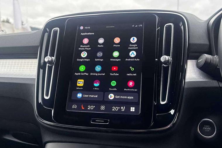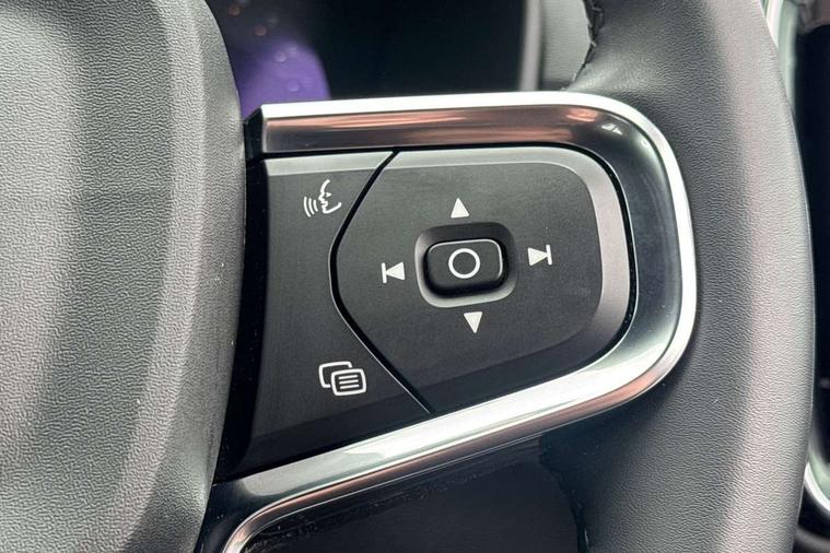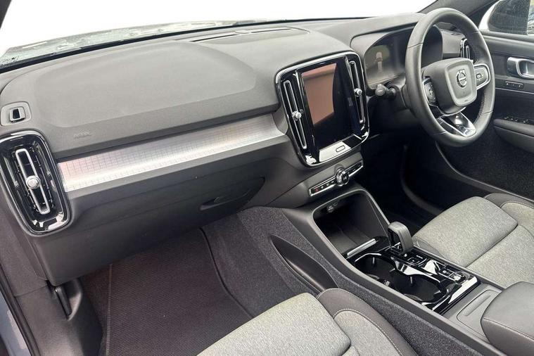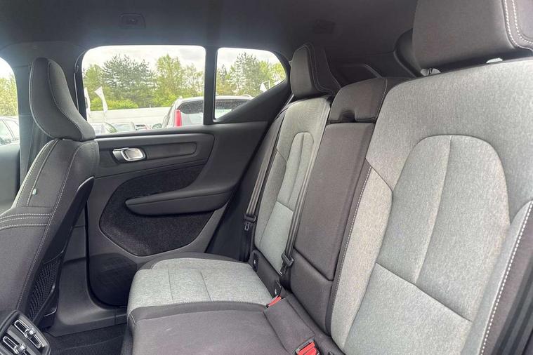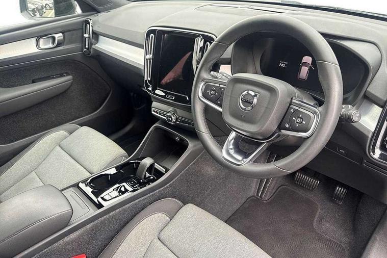 12.3" Progressive Driver Display, 360 degree surround view parking camera with side proximity sensors, 9" centre console portrait touch screen, Adjustable steering wheel force, Bluetooth hands free telephone kit, Cruise control, E-call, Front park assist, Google automatic services - Nav with google maps, apple carplay/android auto, voice recognition with google assistant, Hands free power tailgate, Lane keep assist with driver alert control, Oncoming Lane Mitigation, Rear park assist, Speed limiter, Speed sensitive steering, Wireless/Inductive Mobile Phone Charging, Dynamic chassis, DAB Digital radio, High performance sound, 8 speakers/250W, front USB and 2 rear type C USB, Steering wheel mounted remote controls, Adaptive brake lights with high level LED brake lights, Auto dimming feature for exterior door mirrors, Auto dimming interior mirror, Automatic headlamp levelling, Automatic LED Headlights + Active high beam incorporating daytime running lights, Front aluminium tread plates, Front and rear electric windows, High gloss black front and rear skid plate, High gloss black mesh front grille with high gloss black surround, High gloss black window trim, Home safe and approach lighting, Integrated roof rails in high gloss black, LED front fog lights, Puddle lights, Rain sensor with automatic windscreen wiper activation, Rear side wing doors, Rear wiper, Roof antenna, Roof spoiler, Visible VIN plate, 12V socket in front tunnel console and luggage compartment, 2-Zone electronic climate control with CleanZone air quality system and pollen filter, 3 seat bench in 2nd row, 3 Spoke tailored steering wheel with chrome trim, 60/40 versatile split folding rear seat, A-pillar parking ticket holder, Centre console cupholders and storage, Flexible load floor and grocery bag holder, Floor mats, Front door pocket, front cupholder, ambient front door, rear reading, rear courtesy, instrument panel and tailgate lighting, Front footwell illumination, Front headrests, Front reading light and theatre lighting, Front seat cushion extensions, Front tunnel pocket, Glovebox bag hook, Heated front seats, Height adjustable passenger seat, Height/reach adjustable steering column, High gloss centre tunnel deco, Illuminated glovebox, Illuminated luggage compartment, Illuminated vanity mirrors, Integrated waste bin, Isofix attachments on outer rear seats, Load protection net, Multi directional lumbar support, Power driver seat with memory + exterior mirrors memory, Rear armrest / integral cup holders / storage tray, Rear headrests, Single front passenger seat, Underfloor cargo storage, Climate pack without heated front seats - XC40, 3x3 point rear seatbelts, City safety with steering support with Pedestrian + cyclist + front collision warning with full auto brake and rear auto brake, Drivers knee airbag, Dual stage driver/passenger airbags, Electronic parking brake with auto hold, First aid kit, Front and outer rear seatbelt reminder and pretensioners, Front seats SIPS airbags, Hill descent control, Hill start assist, Inflatable curtain, Passenger airbag cut-off device, Power child locks on rear doors, Road sign information display, Run off Road Mitigation, Run off Road Protection, SIPS (Side Impact Protection System), Slippery road and hazard light alert, Stability and Traction Control with Spin control, Engine Drag Control and Corner Traction Control, Tyre pressure monitoring system, Vehicle deceleration control with Anti-lock Brake System, Electronic Brake Distribution and Emergency Brake Assist, Warning triangle, WHIPS whiplash protection system - front, Anti-theft alarm including immobiliser/volume sensor + level sensor, Key integrated remote control central locking + fuel flap with deadlocking system and auto open/close power windows, Keyless drive includes keyless entry and keyless start, Locking wheel nuts,