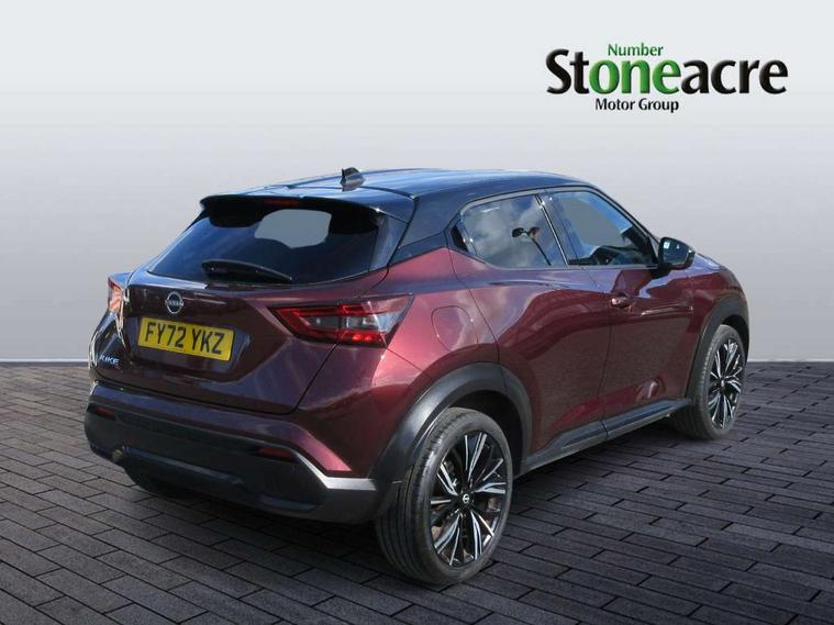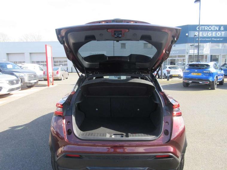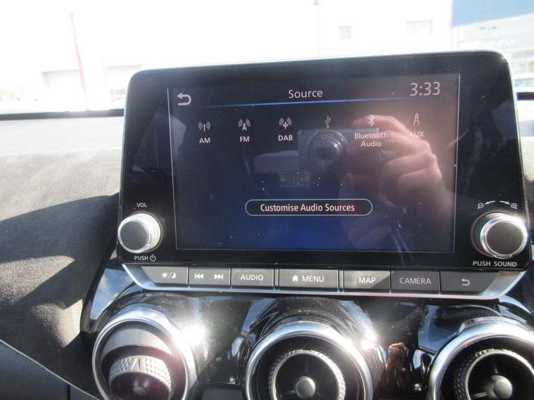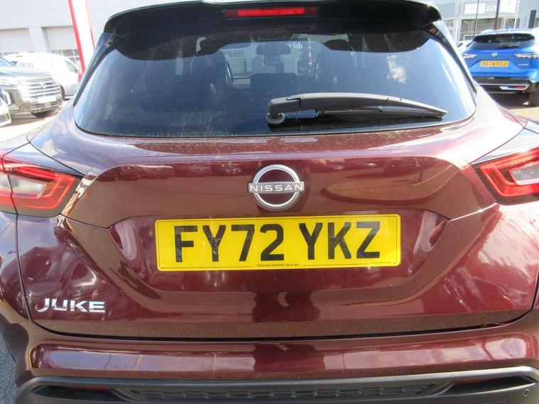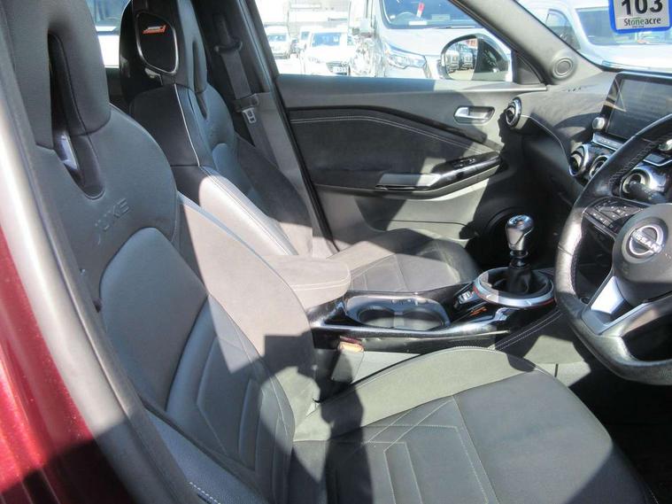 7" full colour TFT screen combimeter, Apple CarPlay and Google Android auto, Drive modes select (Eco, normal and sport), Emergency and breakdown call, Front parking sensor, Idle start/stop system, Intelligent lane intervention, Lane departure warning system, Nissan connect 8" touch screen entertainment system, Nissan connect nav with TomTom traffic, Nissan connect services and Wifi connection, Outside temperature sensor, Power Steering, Rear parking sensor, Traffic sign recognition, Trip computer, Voice recognition, Gasoline particulate filter, 10 Bose speakers 6 speakers and 2 headrest speakers for driver/passenger seats, Bluetooth system, USB, Aux-in and 12V socket, Bose personal sound stage control, DAB Digital radio, Rear console USB port, Auto dimming interior rear view mirror, Auto headlights, Automatic hazard signal with emergency stop signal, Body colour bumpers, Body colour door handles, Electrically adjustable door mirrors with integrated indicators, Follow me home headlights, Front and rear electric window with one touch driver window, Heated and auto folding door mirrors, High beam assist, LED daytime running lights, LED front fog lights, LED headlamps, LED rear fog lamp, LED rear lamps, Rain sensor windscreen wipers, Rear privacy glass, Rear side wing doors, Rear wiper, Satin silver front bumper finisher, Thermaclear heated windscreen, Three blink turn signal, 3 height adjustable rear headrests, 3 seat bench in 2nd row, 60/40 split folding rear seat, Automatic climate control, Card holder on driver sunvisor, Door ambient lighting, Driver and passenger sliding and reclining seats, Driver seat back pocket, Driver side rear coat hanger, Driver/passenger sunvisors and vanity mirrors, Front and rear cabin lights, Front armrest, Front door pockets with bottle holders, Front head restraints, Front passenger isofix child seat anchorage point, Front/rear passenger grab handles, Gear console ambient circle lighting, Grey synthetic leather kneepad, Heated front seats, Height adjustable driver's seat, Height adjustable passenger seat, Internal chrome door handles, Leather gearshift knob, Leather steering wheel, Luggage board, Luggage space lighting, Monoform sporty seats, Multifunction steering wheel, Passenger seat back pocket, Rear door bottle holders, Single front passenger seat, Telescopic steering wheel adjustment, Two cupholders in front centre console, Two rear isofix child seat anchorage points with top tether, Welcome light and console tray ambient lighting, Advanced safety shield pack - Juke, ABS with EBD and brake assist, Active ride control, Active Trace Control, Driver and passenger airbags, Driver and passenger side airbags, Electric handbrake with auto hold function, Electronic Stability Programme (ESP), Front and rear curtain airbags, Height adjustable seatbelts, Hill start assist, Intelligent emergency braking with pedestrian and cyclist recognition, Rear door child safety locks, Seatbelt reminder for driver/front passenger and rear seats, Single tone horn, Three 3 point rear seatbelts, Traction control, Tyre pressure monitoring system, VDC Dynamic Vehicle Control, Ventilated rear brake discs, Alarm, Immobiliser, Intelligent key and start push button with walk away lock and approach unlock functions, Remote central locking, 19" Akari alloy wheels,