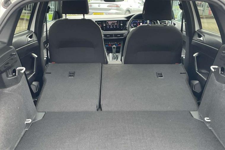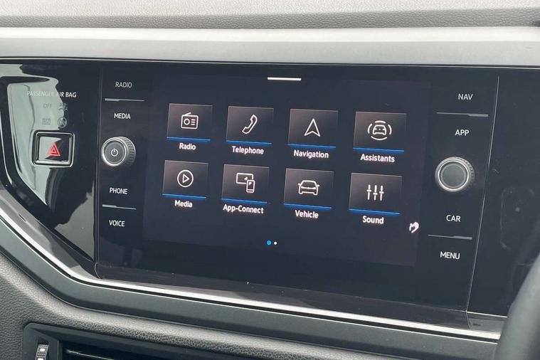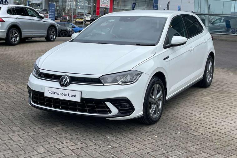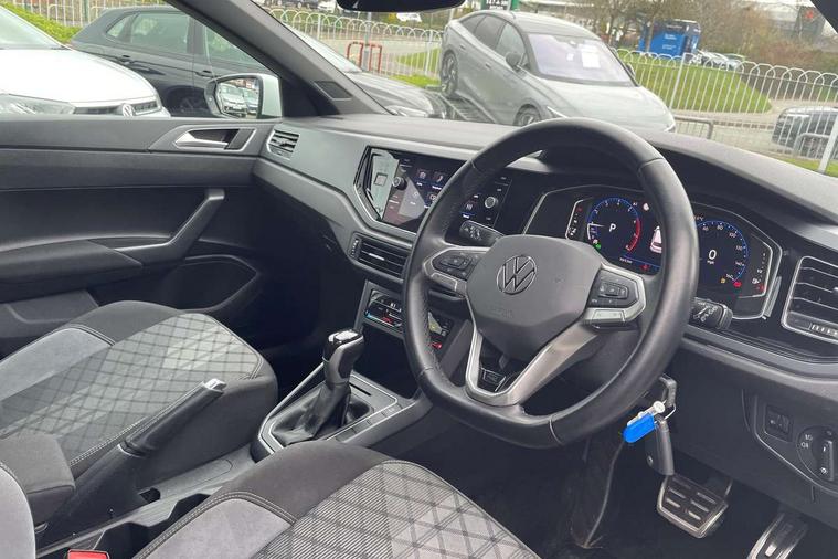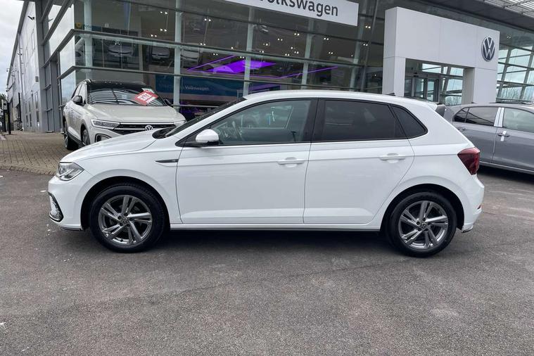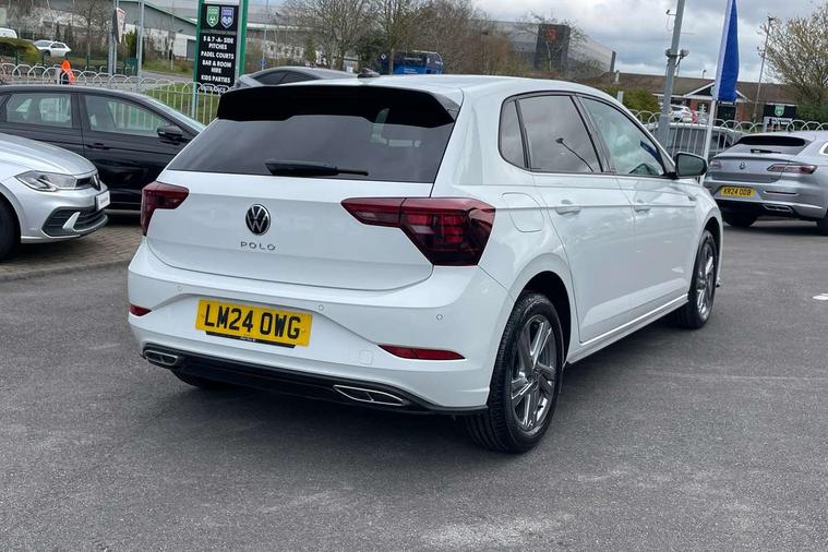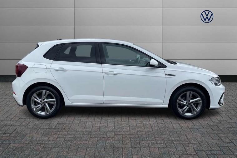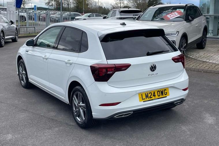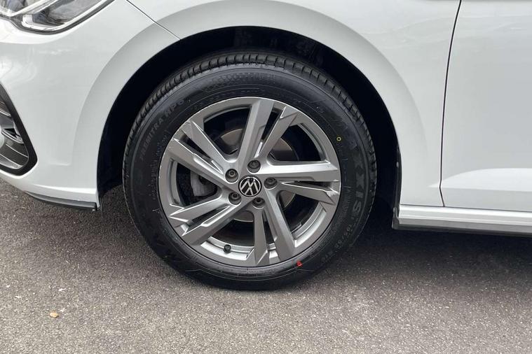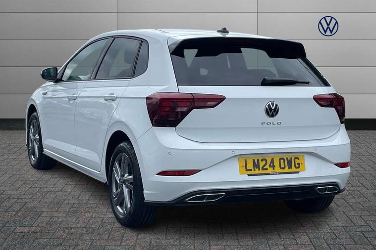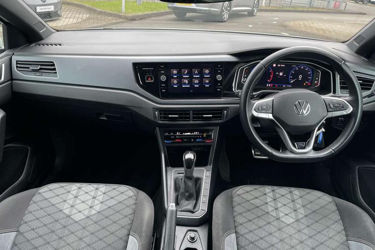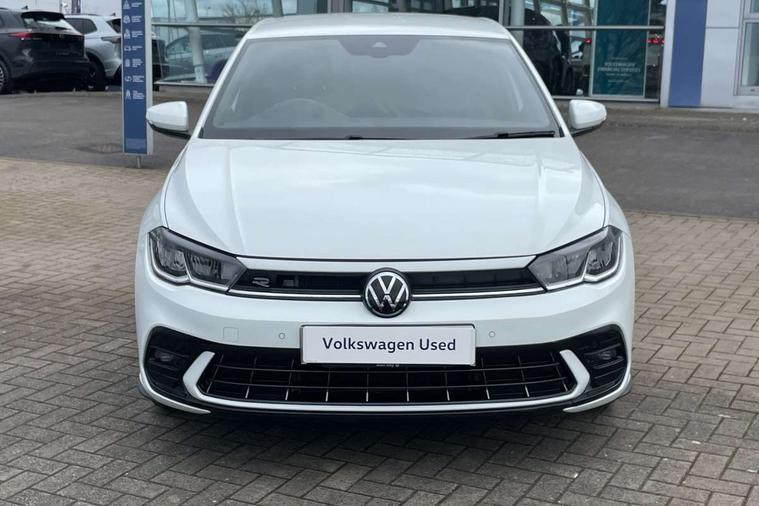 Adaptive cruise control with follow-to-stop and speed limiter, Advanced driver attention and drowsiness monitor, Bluetooth mobile phone interface, Digital Cockpit Pro with 10.25" Display, Dynamic road sign display, Emergency call service, Power assisted speed sensitive steering, Preparation for We connect and We connect plus, Speedo and rev counter, electronic odometer, trip, service interval display and fuel gauge, Standard rear axle, Travel Assist - Lane keeping system and traffic jam assist, Travel assist including emergency assist, Trip computer, Warning signal and warning light for front and rear seatbelts not fastened, Washer fluid level indicator, Wireless app connect, Front wheel drive, Rear shock absorpion, Start-stop system with battery regeneration (recuperation - energy recovery during braking), DAB Digital radio, Diversity antenna for FM reception, Body colour bumpers, Body colour door handles, Electric front windows, Front scuff plates with R-Line logo, Heat insulating darkened glass in side and rear windows, Heat insulating glass windscreen, Power folding adjustable/heated exterior mirrors and front passenger exterior mirror lowering function, Rear electric windows, Rear fog light, Rear side wing doors, Rear windscreen washer and wiper with interval delay, Third brake light, 12V power socket in centre console, 2 USB-C ports in the front, 2 USB-C charging sockets on the center console in the rear, 3 rear head restraints, 60/40 split folding rear seat and rear seat bench not split, Air care climatronic air conditoning system with active combination filter and 2-zone temperature control, Black roof lining, Chrome plated radiator grille inserts, air vent surrounds and light switch surrounds, Door and side trim panel, Driver and front passenger seat height adjustment, Driver/passenger sunvisors with illuminated vanity mirrors, Front + rear carpet mats in recycled material, Front centre armrest, Front footwell illumination, Front seat backrest storage pockets, Front sports comfort seats, Handbrake lever handle in leather, Headliner in recycled material, Isofix child seat preparation easy-fit (for two outer rear seats, and front passenger seat) compatible with I-size, Karoso artvelours cloth upholstery, Leather trimmed gear knob, LED interior light with switch off delay and dimmer, 2 reading lights front and rear, Luggage compartment cover, Luggage compartment floor, Luggage compartment lighting, Lumbar adjustment for front seats, Single front passenger seat, Stainless steel pedals, Standard pedal cluster, Three spoke leather wrapped multifunction steering wheel with shifting paddles, Light and sight pack - Polo R-Line/Black Edition, 3 point height adj front seatbelts + pretensioners, 3x3 point rear seatbelts, ABS, Driver and front passenger airbag with front passenger airbag deactivation, Drivers and front passengers safety optimised head restraints, ESC (Electronic stability control) + EDL (Electronic Differntial lock) and ASR (Traction control), Extended and predictive pedestrian/ cyclist protection, Front curtain and side airbags with center airbag, Hill hold control, Manual child lock in rear doors, Single tone horn, Tyre pressure loss indicator, Alarm with interior protection, Anti-theft alarm system with interior monitoring, backup horn, and towing protection, Anti-theft wheel bolts, Electronic engine immobiliser, Chrome applications on rotary light, mirror adjustment, window regulator switches, outlet with frame in black, Dark grey anodised matt decorative inserts in dash and front door panels, Low rolling resistance tyres,