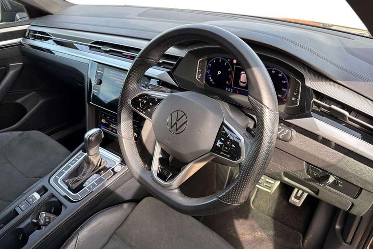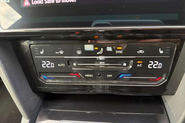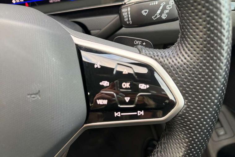 Adaptive cruise control (ACC) with speed limiter, front assist (reacting vehicles pedestrian and cyclists) and follow to stop, App connect including wireless Apple CarPlay, Camera for warning system, Digital cockpit with 10.25" high resolution TFT display screen with customisable menus and information, Driver alert system with fatigue detection, Driver profile selection including ECO function, Dynamic road sign display, eCall - Emergency call service for SOS calls to emergency response, Emergency assist, Hands free boot opening, Press and drive key, Progressive steering, Speedo and rev counter, electronic odometer, trip, service interval display and exterior temperature gauge, Travel assist - Lane keeping assist and traffic jam assist, Voice activation for telephone and navigation, Start/stop function with battery regeneration, Premium USB cable in choice of either Apple or Android smartphone compatibility, Auto dimming interior rear view mirror, Automatic headlights, Body colour door handles, Body colour side skirt, Body coloured top and matt black lower door mirrors with integrated indicators, Chrome plated radiator grille inserts and light switch surrounds, Chrome side window surrounds, Dynamic headlight range control, Electric folding door mirror, adjustable, heated with front passenger exterior mirror lowering function, Front and rear electric windows, Front and rear stainless steel door sill protection, Front windscreen washers and wipers with 4x interval delay, Heat insulating side and rear windows, Heated rear windscreen, Heated windscreen washer jets, High level 3rd brake light, LED rear combination lamp with dynamic indicators, LED rear number plate lights, Panoramic sunroof with tilting and sliding including integrated roller blind, R Line design body coloured bumpers, Rain sensor, Rear fog lamp on one side and reversing lamp on both sides, Rear side wing doors, Rear tinted glass from B pillar backwards, approx 65% tinted, Rear windscreen washer and wiper with interval delay, Tailpipes behind rear bumper, 12V socket in front centre console, 12V socket on rear of front centre armrest, 3 rear head restraints, 3 seat bench in 2nd row, 30 colours options interior ambient lighting, 60:40 split folding rear seat backrests with centre armrest, Air care climatronic 3 Zone electronic air conditioning with automatic air recirculation, Black roof lining, Chrome trim on upper and lower air vents extending across cockpit, Driver and front passenger sunvisor with vanity mirror, Front + rear carpet mats, Front cupholders x 2, Front footwell illumination, Front sports comfort seats, Glovebox, Heated front seats, Height/reach adjust steering wheel, Isofix child seat preparation easy fit for two outer rear seats, Luggage compartment lighting, Removable luggage compartment cover, Single front passenger seat, Split folding front seat backrest with front centre armrest, Stainless steel pedals, Two LED front reading light, 3 rear three point seatbelts, ABS+EBD+Brake assist, Child locks on rear doors, Driver airbag and front passenger airbags with deactivation switch including driver knee airbags, Electronic parking brake, Electronic stability control (ESC) and Electromechanical brake booster, Front disc brakes, Front side airbags with curtain airbags, Hill start assist, Pro active occupant protection to detect critical situations with elevated accident potential from the front, Rear disc brakes, Three point height adjust front seatbelts + pretensioners, Two tone horn, Tyre pressure loss indicator, Warning buzzer for seatbelts if unfastened, Warning triangle, Alarm with interior protection with deactivation via infotainment system, Electronic engine immobiliser, Keyless entry system including start/stop button on centre console, Aluminium decorative inserts, Chrome trim on lower doors in front and rear, Leatherette insert on door and side trim panel in foam film, Piano black decorative inserts in centre console,
