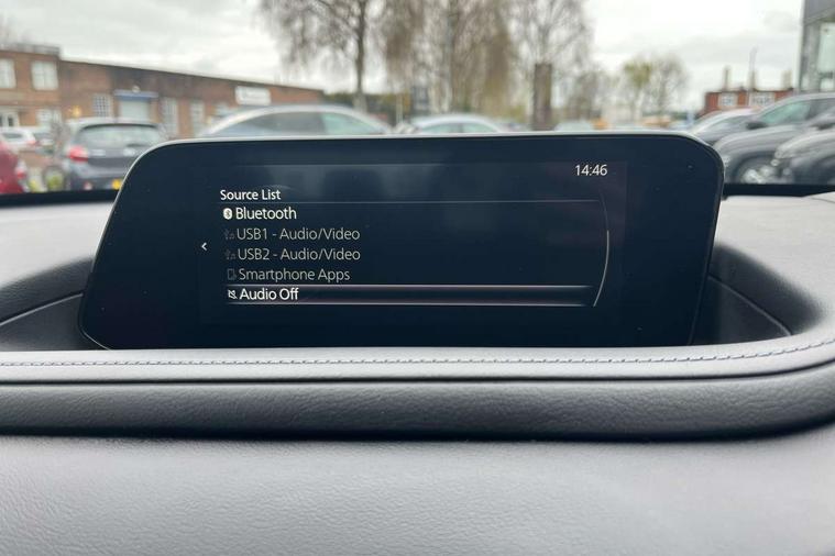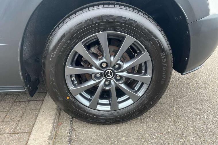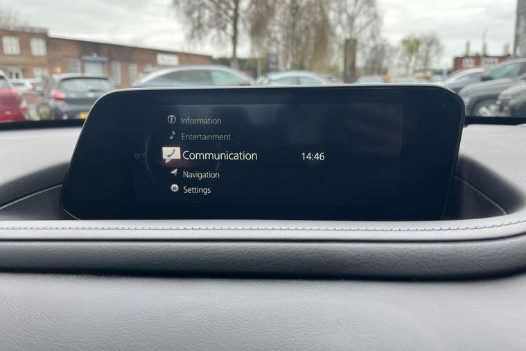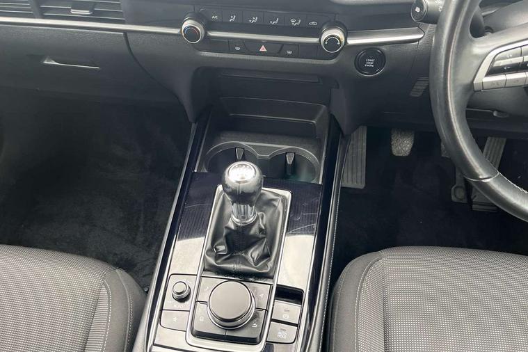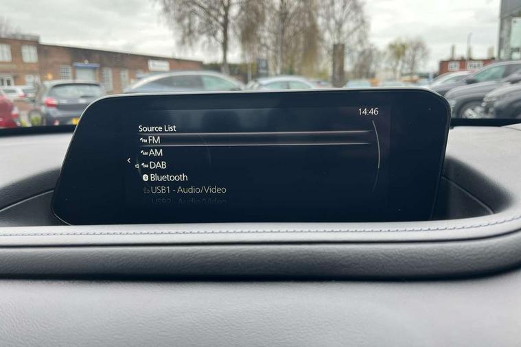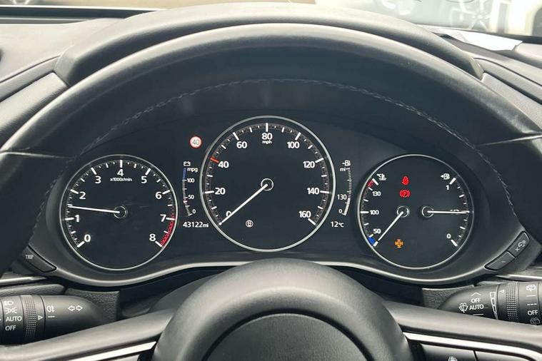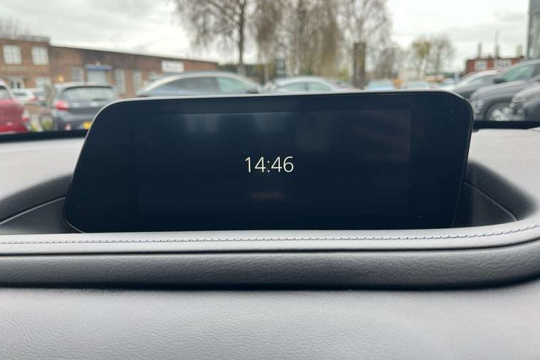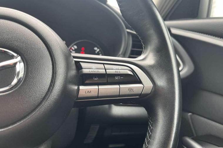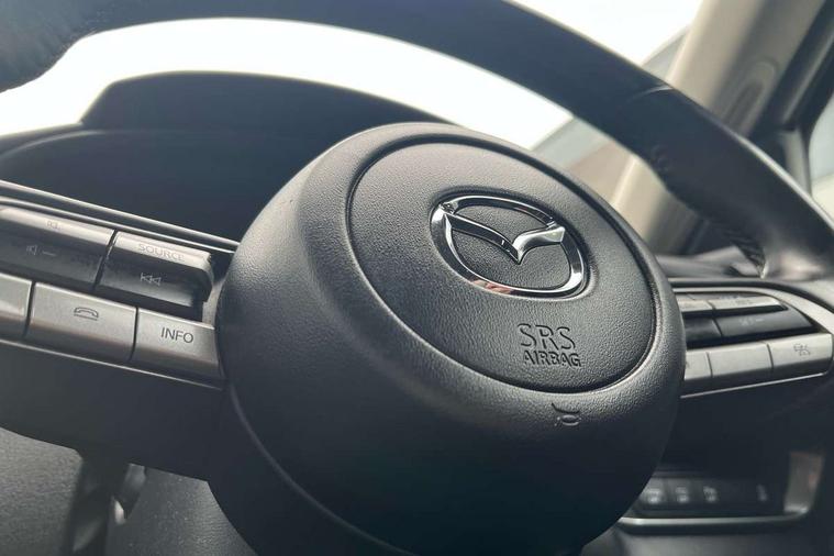 7" TFT Colour driver instrument panel display, 8.8" Colour centre touch screen display with Mazda Connect infotainment, Adaptive cruise control (Mazda radar cruise control), Apple car play/Android Auto, Blind spot monitoring with rear cross traffic alert, Driver attention alert system, E-call with GPS, Emergency stop signalling system, Engine start/stop button, Integrated bluetooth, Integrated Mazda navigation system, Intelligent speed assist, Lane keep assist system (LAS) with Lane departure warning system (LDWS), Mazda connected services, PAS, Rear parking sensor, Service indicator, Traffic sign recognition, Trip computer, Cylinder Deactivation, i-stop, 2 USB charging ports in front inner central armrest, AM / FM / DAB radio with 8 speakers, Multimedia Commander including separate volume dial, Steering wheel mounted audio/bluetooth controls, B-pillar and C-pillar garnishes in satin black finish, Auto headlight levelling, Body coloured, electrically adjustable, heated auto power folding door mirrors with integrated indicators, Chrome finish signature wing in front grille, Coming/leaving home lighting function, Dual chrome exhaust, Dusk sensing headlights, Electric front/rear windows with one touch auto up/down, Front kodo turn signal, Gloss black rear roof spoiler, LED headlights with halogen daytime running lights and high beam control, LED rear combination lights, Rain sensing front wipers with adjustable speed and intermittent wipe, Rear fog lights, Rear side wing doors, Rear wiper, Satin black front grille, Third brake light, 12V power outlet in centre console, 3 seat bench in 2nd row, 60/40 split fold down rear seats, Cloth upholstery with interior accents, Dark cloth door panel inserts, Dashboard, door cards and front centre armrest in black cloth, Driver and front passenger visors with covered vanity mirror and driver ticket holder, Driver seat manual slide, recline, height and seat tilt adjust, Driver, front passenger and two rear door storage, Driver, Front passenger and two rear grab handles with coathooks, Folding rear centre armrest with two cup holders, Front and rear (x3) head restraints, Front and rear LED lighting, Front armrest, Front centre storage with two cupholders, Front passenger seatback pockets, Front passengers seat manual slide, recline and height adjustment, Gear shift indicator, Glovebox illumination, ISOFIX child seat anchorage points attached on outer rear seats, Leather wrapped gear shift knob, Leather wrapped steering wheel with telescopic and tilt adjustment, LED luggage compartment lighting, Light roof headlining and pillars, Manual air conditioning, Roof mounted sunglasses holder, Single front passenger seat, 3 point ELR front seat belts x2 with pretensioners, 3 point ELR rear seat belts, Anti-lock braking system (ABS), Drivers knee airbag, DSC - Dynamic Stability Control, Electronic parking brake with auto disengage function and auto hold function, Front and rear curtain airbags, Front dual stage driver and single stage front passenger airbags, Front passenger airbag cut-off switch, Front side airbags, Front smart city brake support, G-Vectoring control plus, Hill launch assist, Manual child lock in rear doors, Mild Hybrid system with regenerative braking, Seatbelt reminder for driver/front passenger and rear seats, Traction control system (TCS), Tyre pressure monitoring system (TPMS), Remote central locking with deadlocking and automatic door lock when driving, Thatcham accredited alarm and immobiliser, 16" Grey alloy wheels, Emergency tyre repair kit,