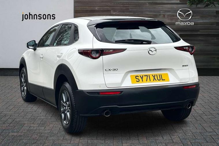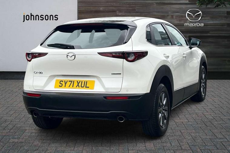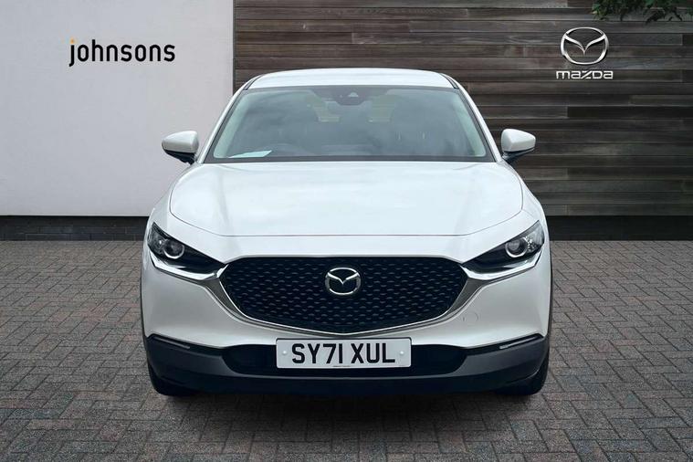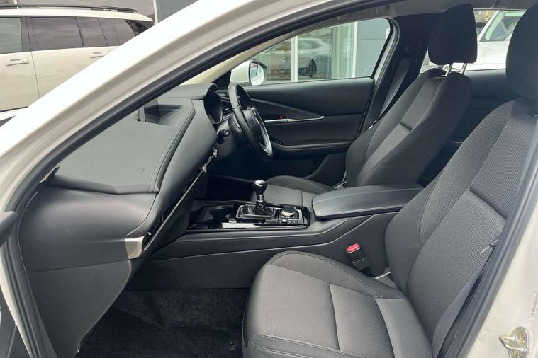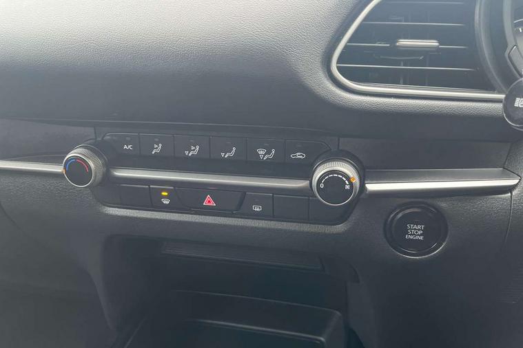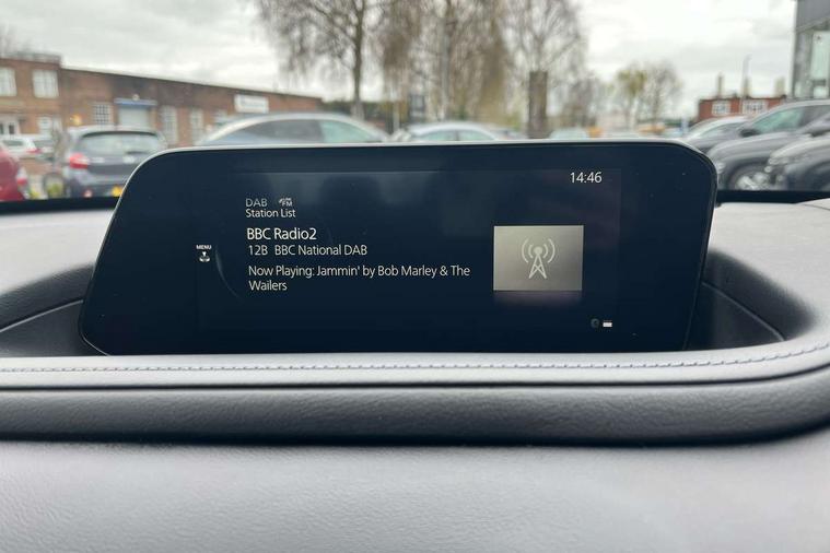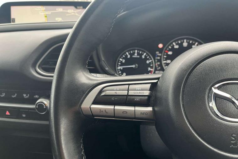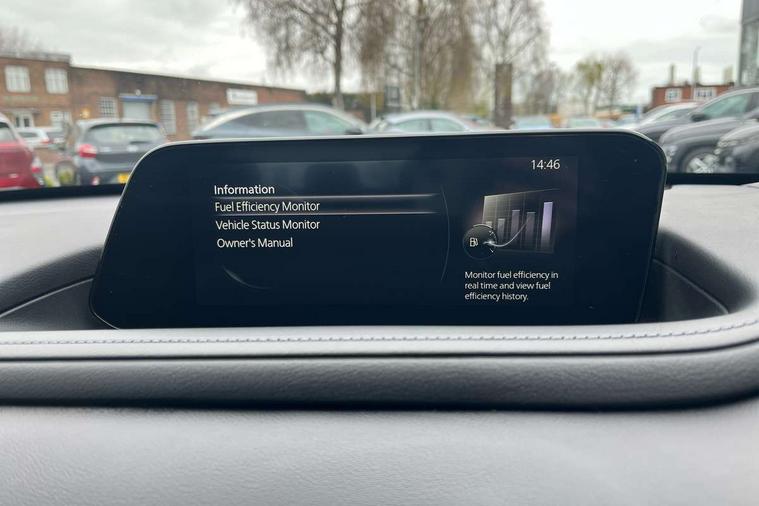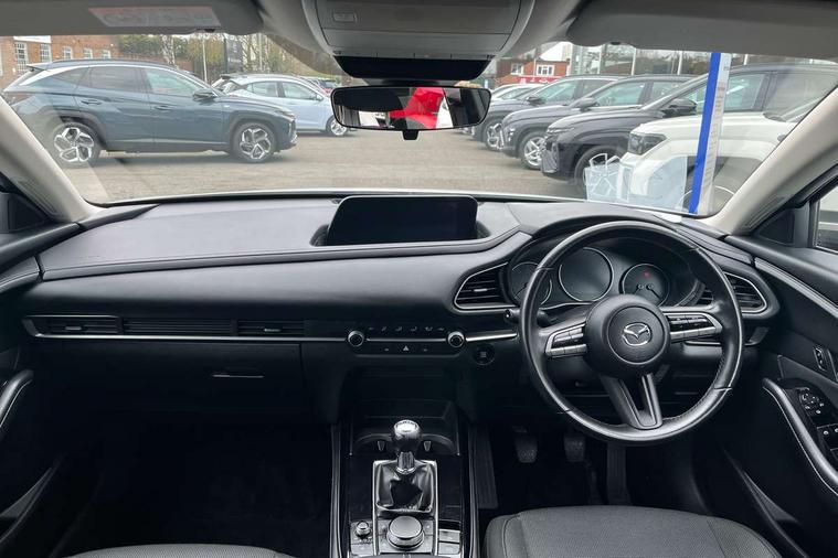 7" TFT Colour driver instrument panel display, 8.8" Colour centre touch screen display with Mazda Connect infotainment, Adaptive cruise control (Mazda radar cruise control), Apple car play/Android Auto, Blind spot monitoring with rear cross traffic alert, Driver attention alert system, E-call with GPS, Emergency stop signalling system, Engine start/stop button, Integrated bluetooth, Integrated Mazda navigation system, Intelligent speed assist, Lane keep assist system (LAS) with Lane departure warning system (LDWS), Mazda connected services, PAS, Rear parking sensor, Service indicator, Traffic sign recognition, Trip computer, Cylinder Deactivation, i-stop, 2 USB charging ports in front inner central armrest, AM / FM / DAB radio with 8 speakers, Multimedia Commander including separate volume dial, Steering wheel mounted audio/bluetooth controls, B-pillar and C-pillar garnishes in satin black finish, Auto headlight levelling, Body coloured, electrically adjustable, heated auto power folding door mirrors with integrated indicators, Chrome finish signature wing in front grille, Coming/leaving home lighting function, Dual chrome exhaust, Dusk sensing headlights, Electric front/rear windows with one touch auto up/down, Front kodo turn signal, Gloss black rear roof spoiler, LED headlights with halogen daytime running lights and high beam control, LED rear combination lights, Rain sensing front wipers with adjustable speed and intermittent wipe, Rear fog lights, Rear side wing doors, Rear wiper, Satin black front grille, Third brake light, 12V power outlet in centre console, 3 seat bench in 2nd row, 60/40 split fold down rear seats, Cloth upholstery with interior accents, Dark cloth door panel inserts, Dashboard, door cards and front centre armrest in black cloth, Driver and front passenger visors with covered vanity mirror and driver ticket holder, Driver seat manual slide, recline, height and seat tilt adjust, Driver, front passenger and two rear door storage, Driver, Front passenger and two rear grab handles with coathooks, Folding rear centre armrest with two cup holders, Front and rear (x3) head restraints, Front and rear LED lighting, Front armrest, Front centre storage with two cupholders, Front passenger seatback pockets, Front passengers seat manual slide, recline and height adjustment, Gear shift indicator, Glovebox illumination, ISOFIX child seat anchorage points attached on outer rear seats, Leather wrapped gear shift knob, Leather wrapped steering wheel with telescopic and tilt adjustment, LED luggage compartment lighting, Light roof headlining and pillars, Manual air conditioning, Roof mounted sunglasses holder, Single front passenger seat, 3 point ELR front seat belts x2 with pretensioners, 3 point ELR rear seat belts, Anti-lock braking system (ABS), Drivers knee airbag, DSC - Dynamic Stability Control, Electronic parking brake with auto disengage function and auto hold function, Front and rear curtain airbags, Front dual stage driver and single stage front passenger airbags, Front passenger airbag cut-off switch, Front side airbags, Front smart city brake support, G-Vectoring control plus, Hill launch assist, Manual child lock in rear doors, Mild Hybrid system with regenerative braking, Seatbelt reminder for driver/front passenger and rear seats, Traction control system (TCS), Tyre pressure monitoring system (TPMS), Remote central locking with deadlocking and automatic door lock when driving, Thatcham accredited alarm and immobiliser, 16" Grey alloy wheels, Emergency tyre repair kit,