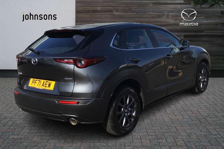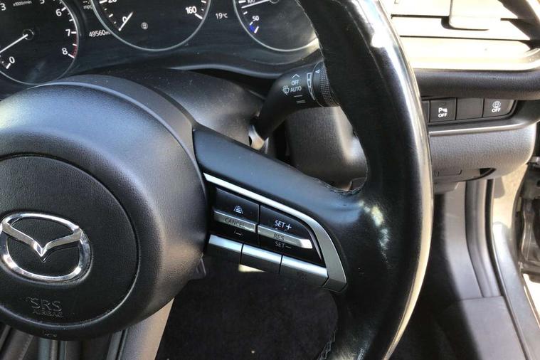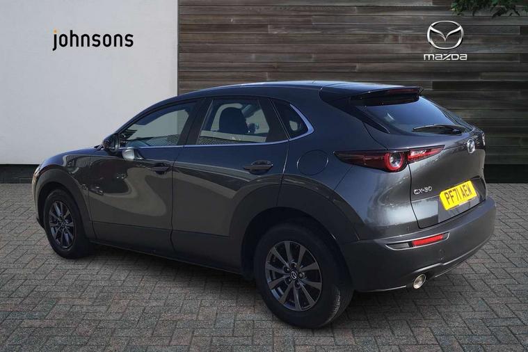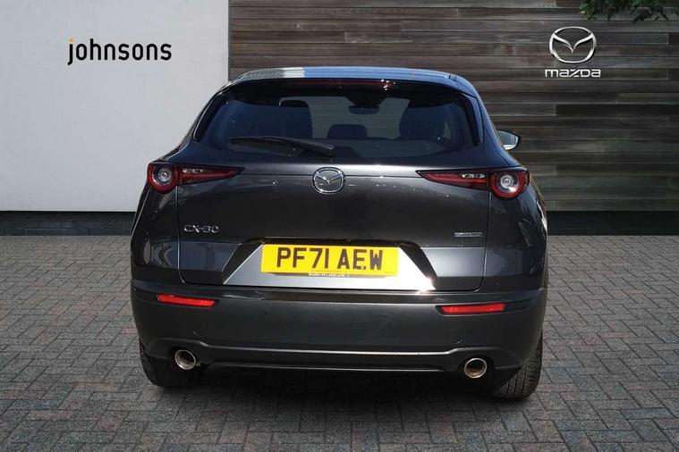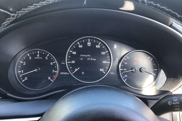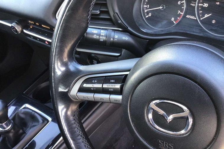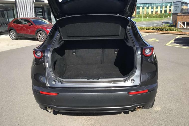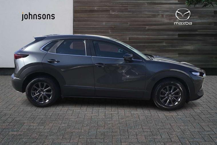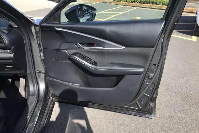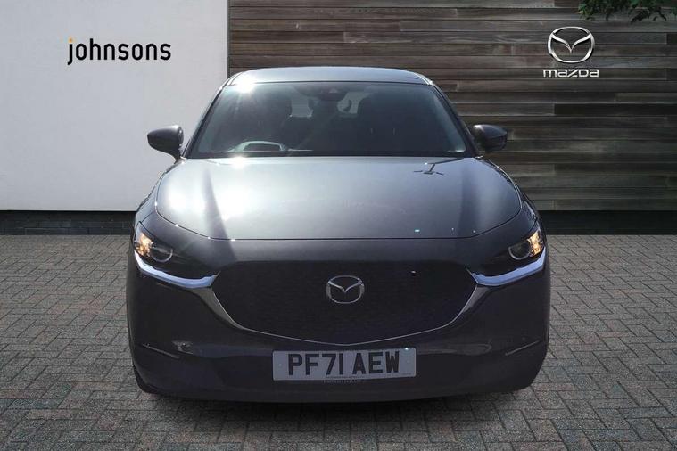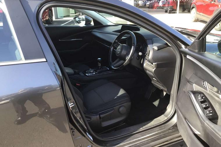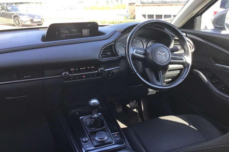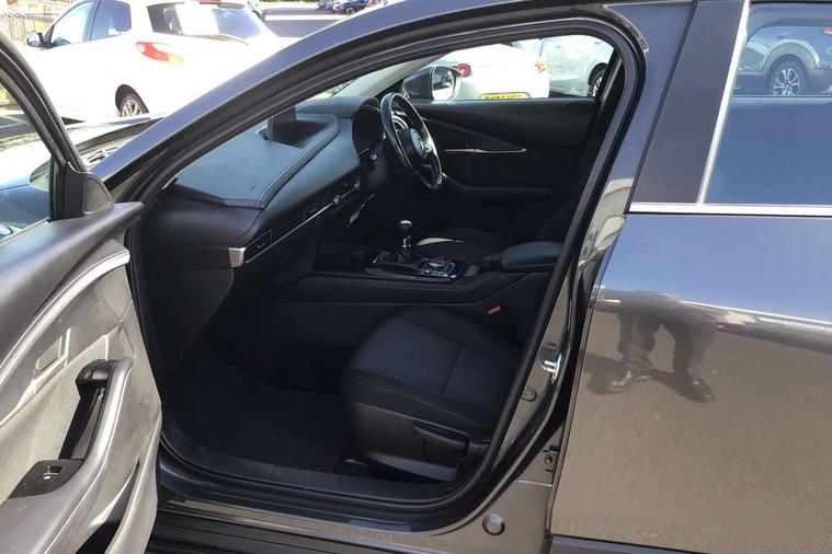7" TFT Colour driver instrument panel display, 8.8" Colour centre touch screen display with Mazda Connect infotainment, Adaptive cruise control (Mazda radar cruise control), Apple car play/Android Auto, Blind spot monitoring with rear cross traffic alert, Driver attention alert system, E-call with GPS, Emergency stop signalling system, Engine start/stop button, Front and rear parking sensors, Integrated bluetooth, Integrated Mazda navigation system, Intelligent speed assist, Lane keep assist system (LAS) with Lane departure warning system (LDWS), Mazda connected services, PAS, Reversing camera, Service indicator, Traffic sign recognition, Trip computer, i-stop, 2 USB charging ports in front inner central armrest, AM / FM / DAB radio with 8 speakers, Multimedia Commander including separate volume dial, Steering wheel mounted audio/bluetooth controls, B-pillar and C-pillar garnishes in satin black finish, Auto dimming driver's door mirror, Auto dimming rear view mirror, Auto headlight levelling, Body coloured, electrically adjustable, heated auto power folding door mirrors with integrated indicators, Chrome finish signature wing in front grille, Coming/leaving home lighting function, Dual chrome exhaust, Dusk sensing headlights, Electric front/rear windows with one touch auto up/down, Front kodo turn signal, Gloss black rear roof spoiler, LED headlights with halogen daytime running lights and high beam control, LED rear combination lights, Rain sensing front wipers with adjustable speed and intermittent wipe, Rear fog lights, Rear side wing doors, Rear wiper, Satin black front grille, Third brake light, 12V power outlet in centre console, 3 seat bench in 2nd row, 60/40 split fold down rear seats, Cloth upholstery with interior accents, Dark cloth door panel inserts, Dashboard, door cards and front centre armrest in black cloth, Driver and front passenger visors with covered vanity mirror and driver ticket holder, Driver seat manual slide, recline, height and seat tilt adjust, Driver, front passenger and two rear door storage, Driver, Front passenger and two rear grab handles with coathooks, Dual zone climate control air conditioning with rear air vents, Folding rear centre armrest with two cup holders, Front and rear (x3) head restraints, Front and rear LED lighting, Front armrest, Front centre storage with two cupholders, Front passenger seatback pockets, Front passengers seat manual slide, recline and height adjustment, Gear shift indicator, Glovebox illumination, Heated front seats with 3 stage setting, ISOFIX child seat anchorage points attached on outer rear seats, Leather wrapped gear shift knob, Leather wrapped steering wheel with telescopic and tilt adjustment, LED luggage compartment lighting, Light roof headlining and pillars, Roof mounted sunglasses holder, Single front passenger seat, 3 point ELR front seat belts x2 with pretensioners, 3 point ELR rear seat belts, Anti-lock braking system (ABS), Drivers knee airbag, DSC - Dynamic Stability Control, Electronic parking brake with auto disengage function and auto hold function, Front and rear curtain airbags, Front dual stage driver and single stage front passenger airbags, Front passenger airbag cut-off switch, Front side airbags, Front smart city brake support, G-Vectoring control plus, Hill launch assist, Manual child lock in rear doors, Mild Hybrid system with regenerative braking, Seatbelt reminder for driver/front passenger and rear seats, Traction control system (TCS), Tyre pressure monitoring system (TPMS), Remote central locking with deadlocking and automatic door lock when driving, Smart keyless entry, Thatcham accredited alarm and immobiliser, 16" Grey alloy wheels, Emergency tyre repair kit,
